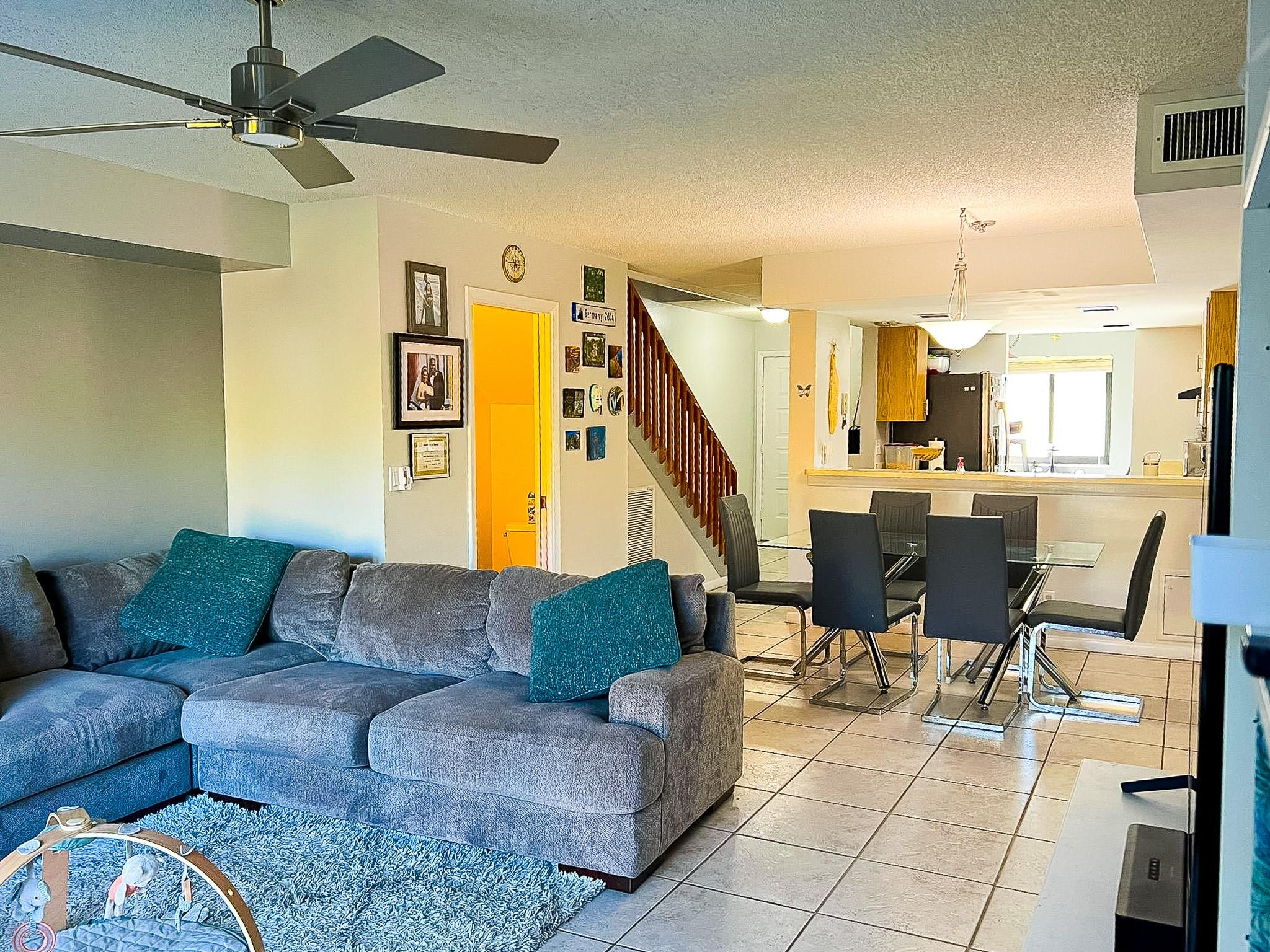 Experience the charm of this 2-bedroom, 2.5-bathroom townhome in the heart of Davie, Florida. Offering approximately 1,200 square feet, this well-maintained home features high ceilings, hardwood stairs, waterproof vinyl plank flooring, and 18×18 tile. Enjoy the luxury of a rain shower, soft-close closets, and additional office space.