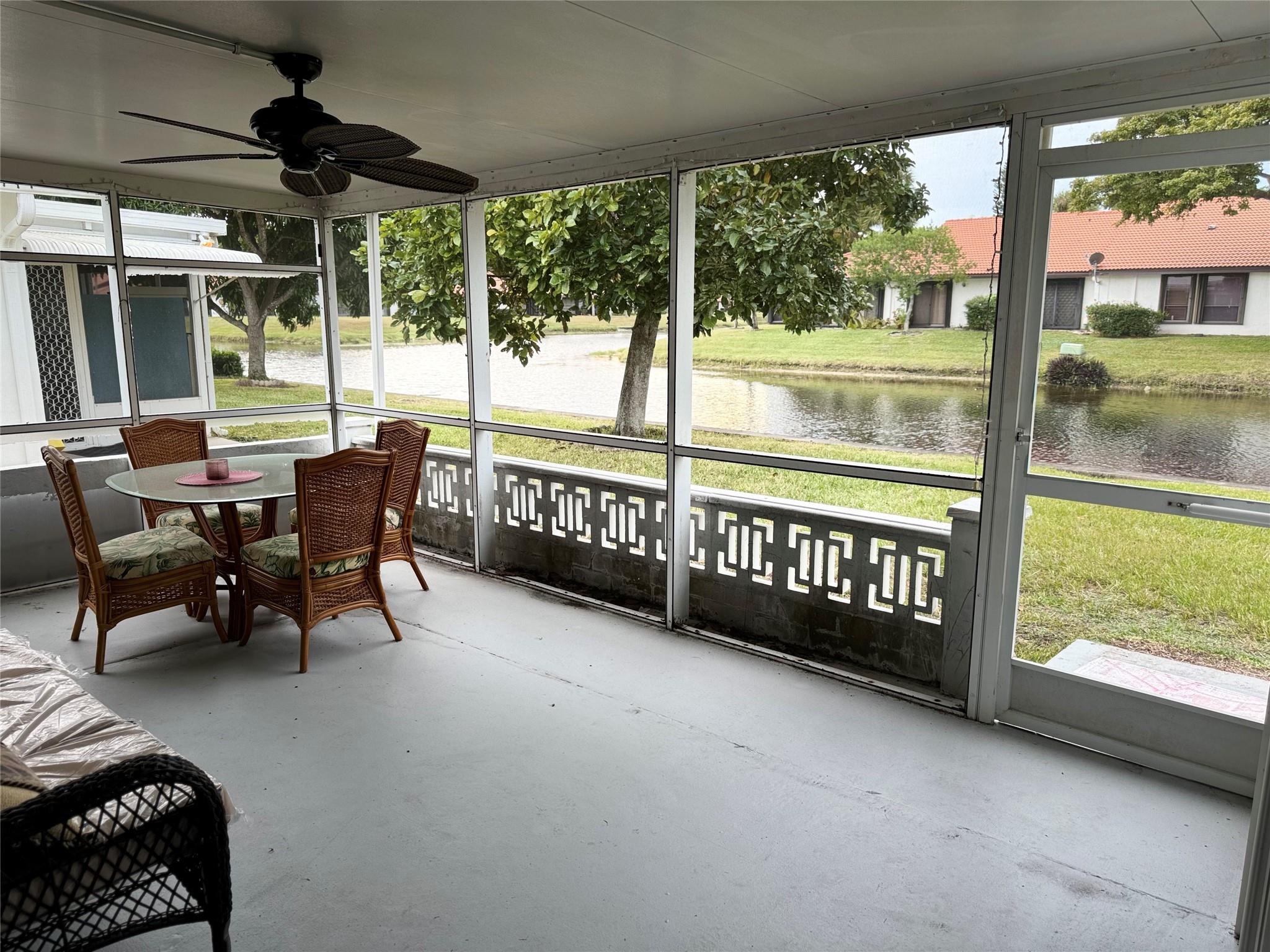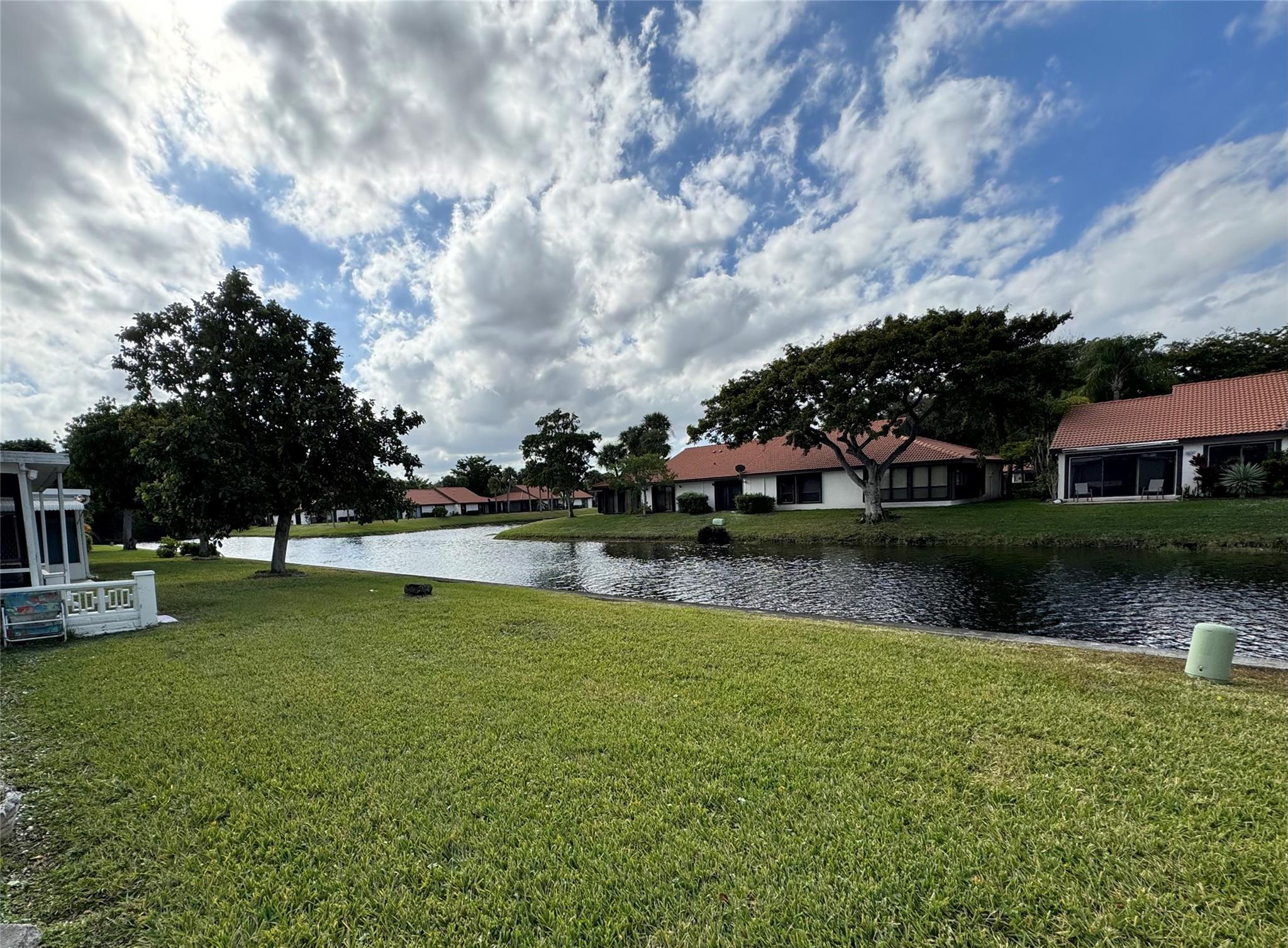 What a great deal! This beautiful single family home in Mainlands is one of the larger 2 bedroom models, giving you almost 1700 sf under air, plus a 1 car garage. Enjoy the serene water view and Florida sunsets from the oversized screened patio. Inside you will find porcelain tile floors throughout, granite countertops, stainless steel appliances, large walk-in closet in the primary bedroom and room for an office/den. This is a 55+ community with a low monthly maintenance fee that covers lawn maintenance, trash and amenities.