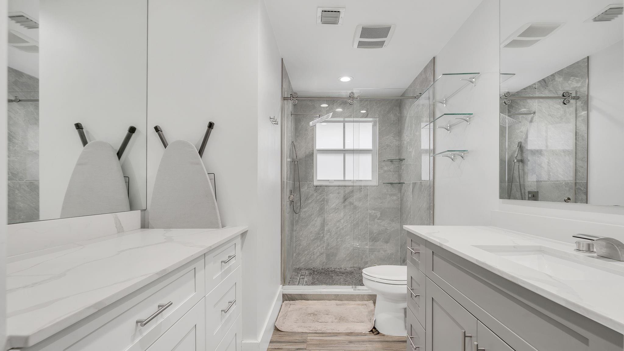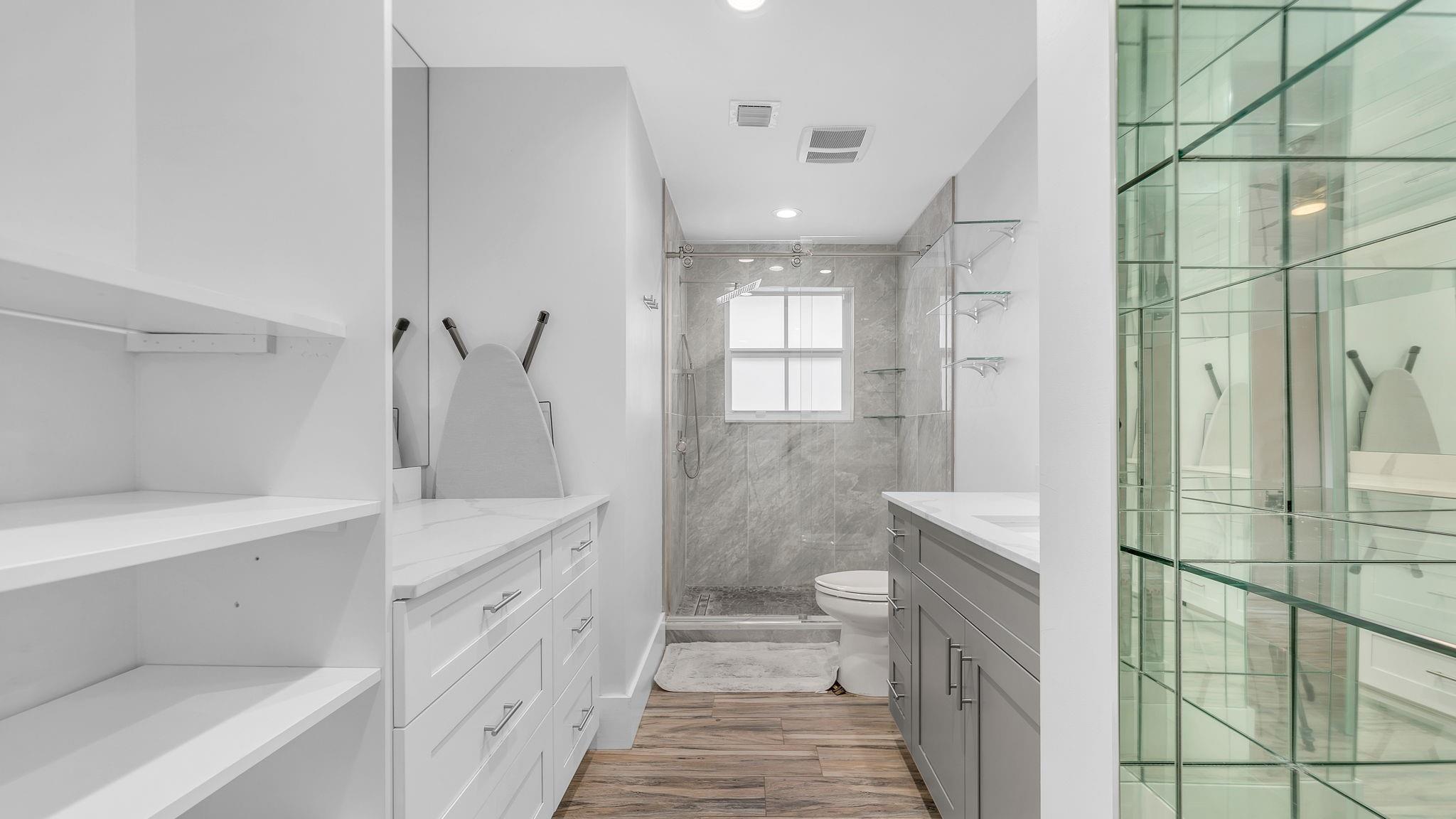 Interior Features : Built In Features, Closet Cabinetry, First Floor Entry, Custom Mirrors, Kitchen Island, Upper Level Primary, Eat In Kitchen, Walk In Closets, Living Dining Room, Kitchen Dining Combo
