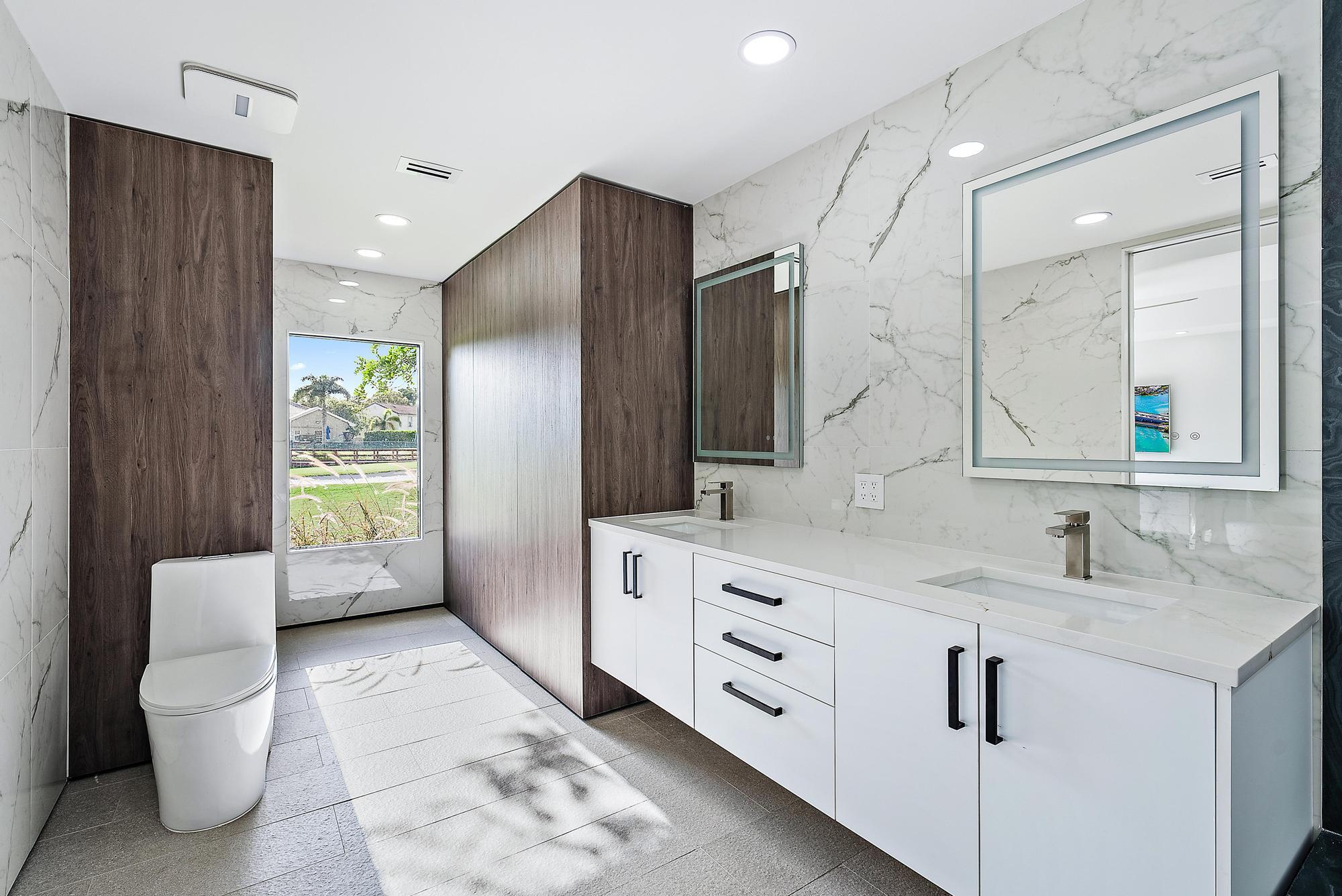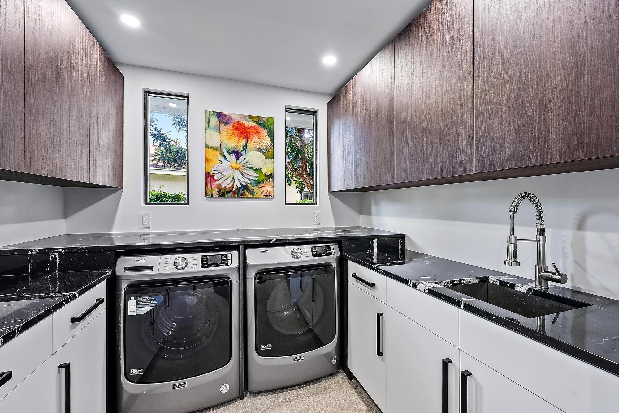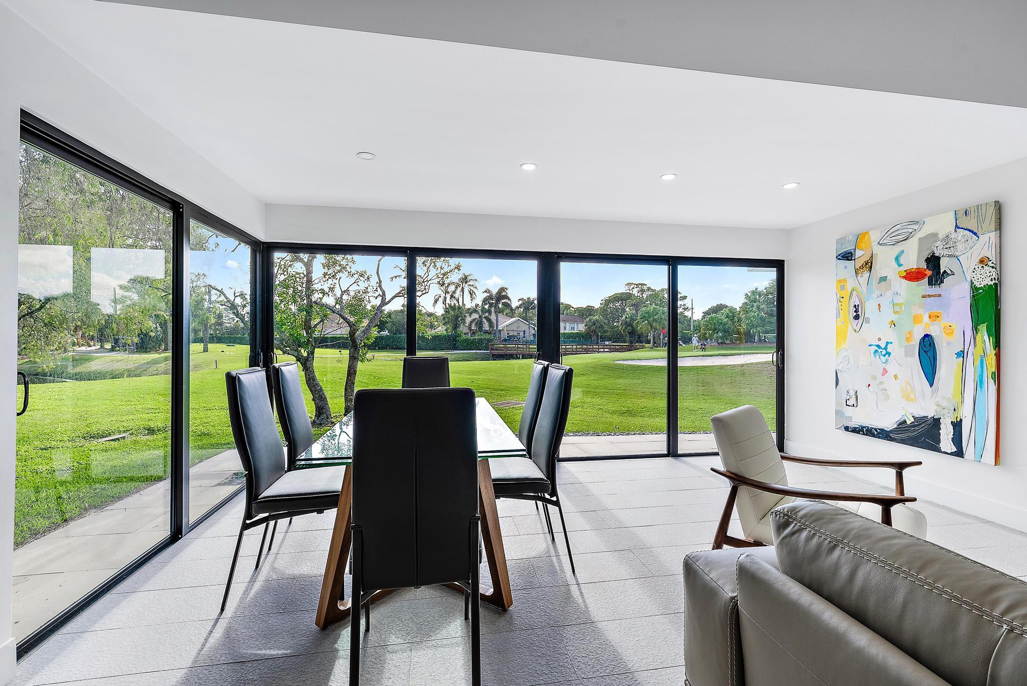 Fully Remodeled Home. Key features include:-Brand New 2022 Roof-Brand New 2023 Hurricane Impact Windows & Doors-Views of the 7th green on the west golf course-Backlit Translucent Stone Walls at entry-NEW 2023 Italian porcelain floors throughout-NEW 2023 high-end European cabinetry-Modern, Open Concept Interior-Tiled and finished Garage-Gorgeous Walk in Laundry Room with black marble countertops and abundant storage-$5,000 Seller Credit towards window treatments at closing