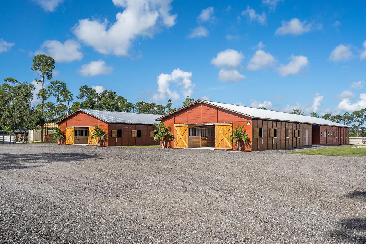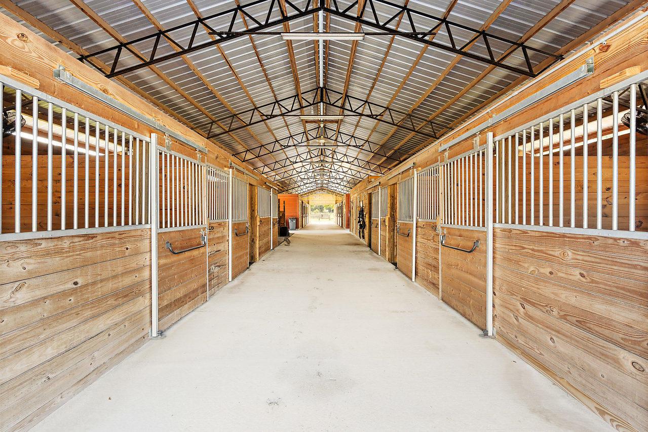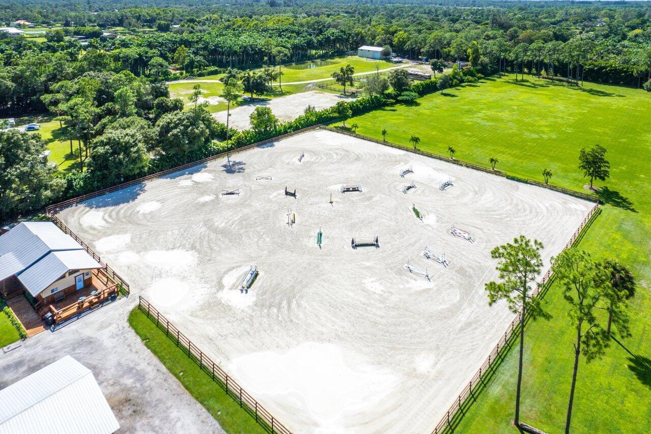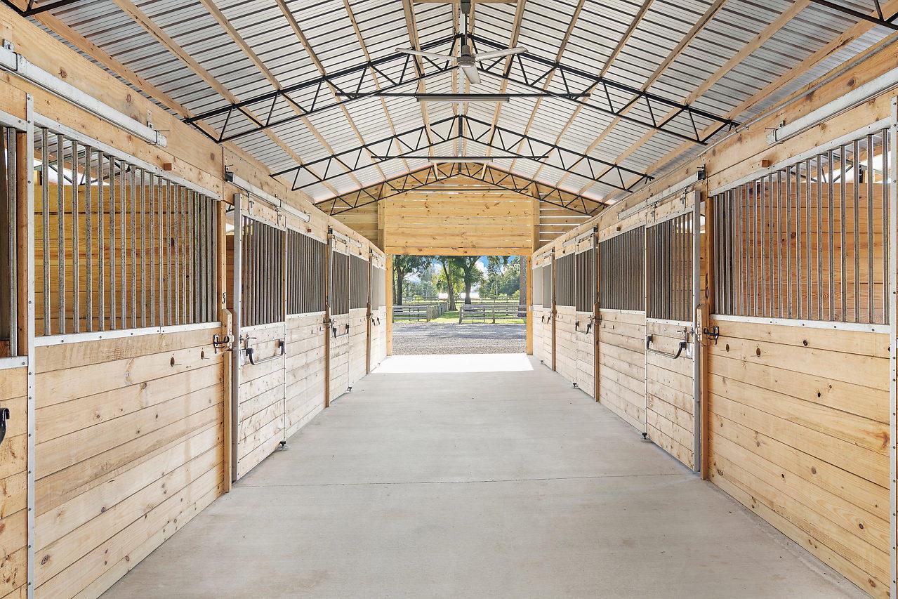 This is it! Private oasis with limitless opportunities for the serious equestrian! Welcome to your fully hedged tranquil 10 acre farm of which 4.5 acres is a grass derby field with ”hill” for working that hind end! 2 barns mirror each other with 14 stalls in the first and 12 stalls plus a grooms apt. in second. Each have 2 tack rooms, feed room, supply room, bathroom, plus 3 tack up stalls. 4 wash stalls (2 covered) are situated between barns. The farm also boasts a 250 x 250 irrigated arena, 80′ irrigated round pen, 12 shaded 80×80 irrigated paddocks, Equipment shed includes 1 bed/1 bath apt., and an owners lounge including 2 beds/2 baths. The entire property is completely fenced with an electric entrance gate and generator to run property as well as 2 RV spots and a 220v outlet for a