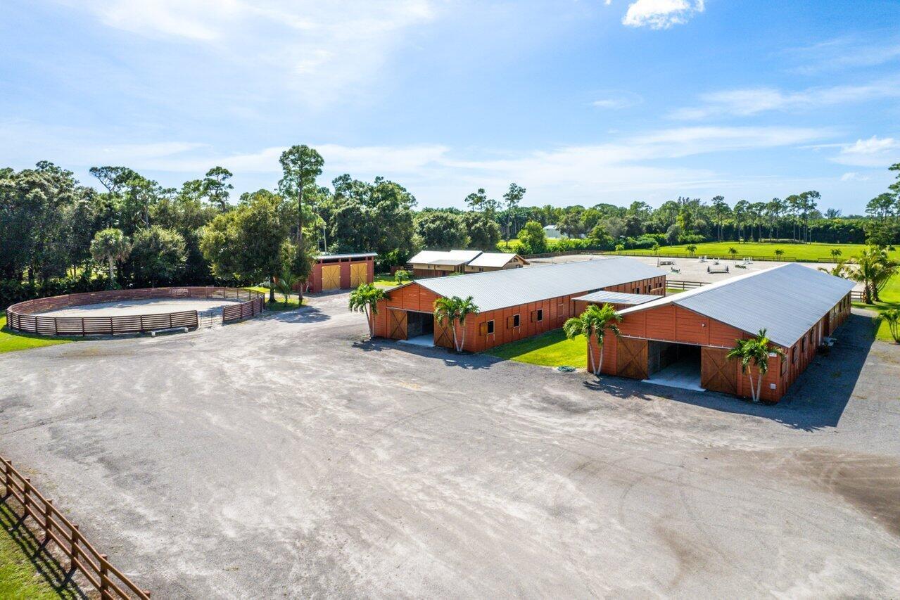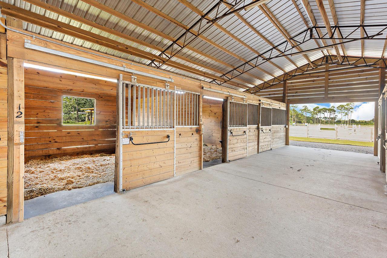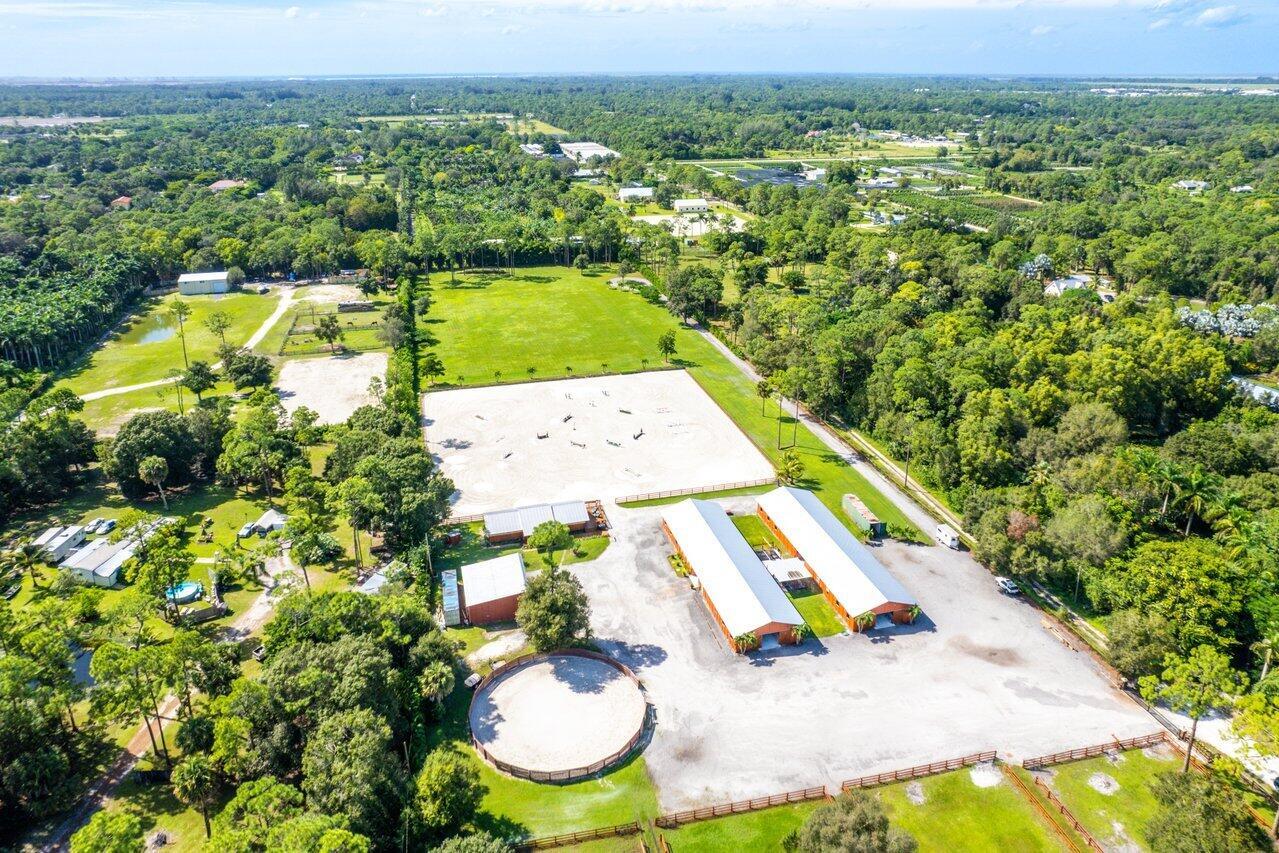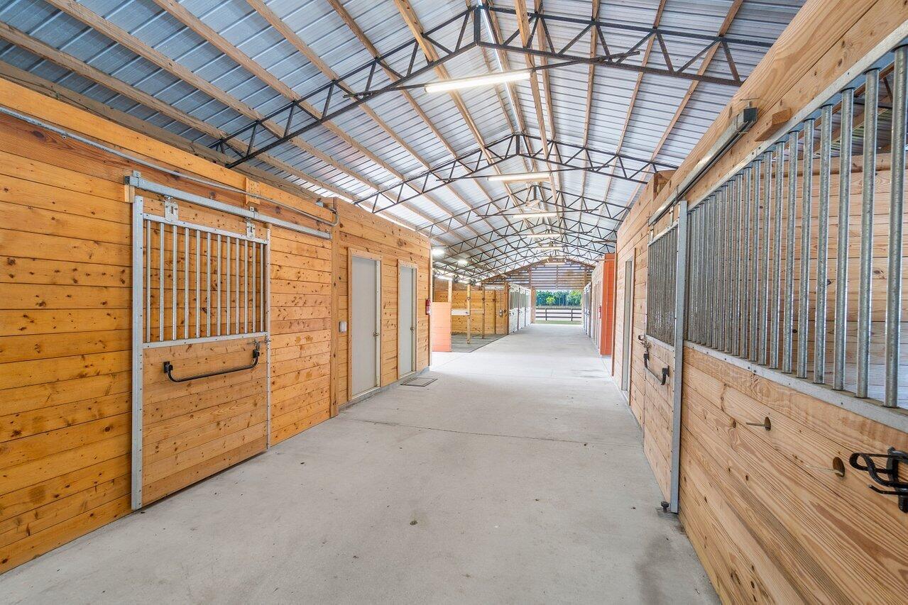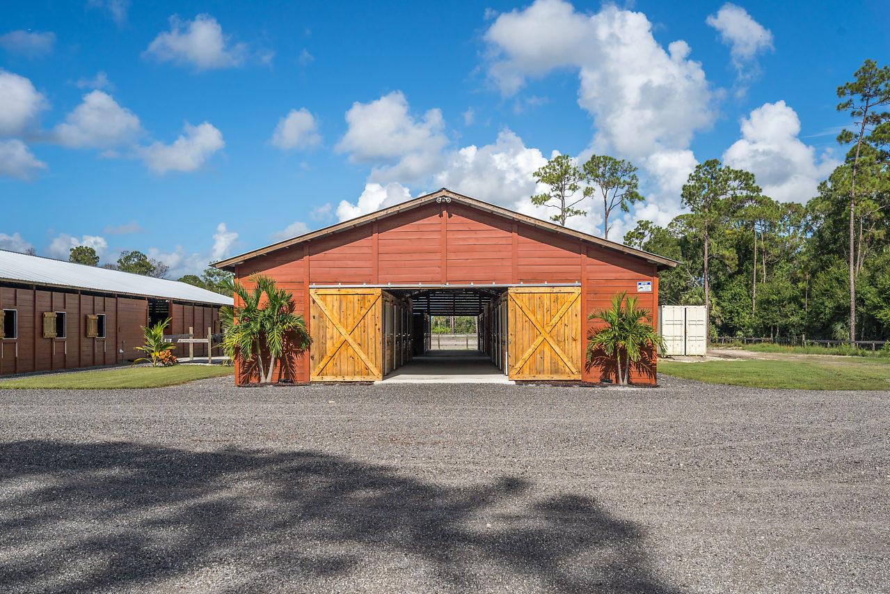 This is it! Private oasis with limitless opportunities for the serious equestrian! Welcome to your fully hedged tranquil 10 acre farm of which 4.5 acres is a grass derby field with ”hill” for working that hind end! 2 barns mirror each other with 14 stalls in the first and 12 stalls plus a grooms apt. in second. Each have 2 tack rooms, feed room, supply room, bathroom, plus 3 tack up stalls. 4 wash stalls (2 covered) are situated between barns. The farm also boasts a 250 x 250 irrigated arena, 80′ irrigated round pen, 12 shaded 80×80 irrigated paddocks, Equipment shed includes 1 bed/1 bath apt., and an owners lounge including 2 beds/2 baths. The entire property is completely fenced with an electric entrance gate and generator to run property as well as 2 RV spots and a 220v outlet for a
