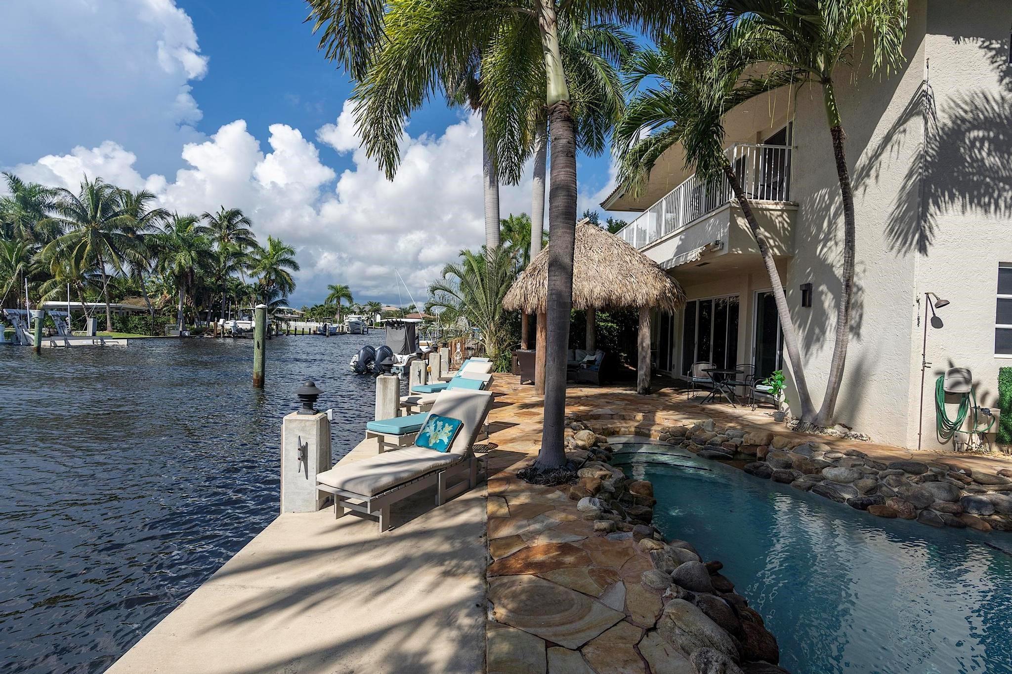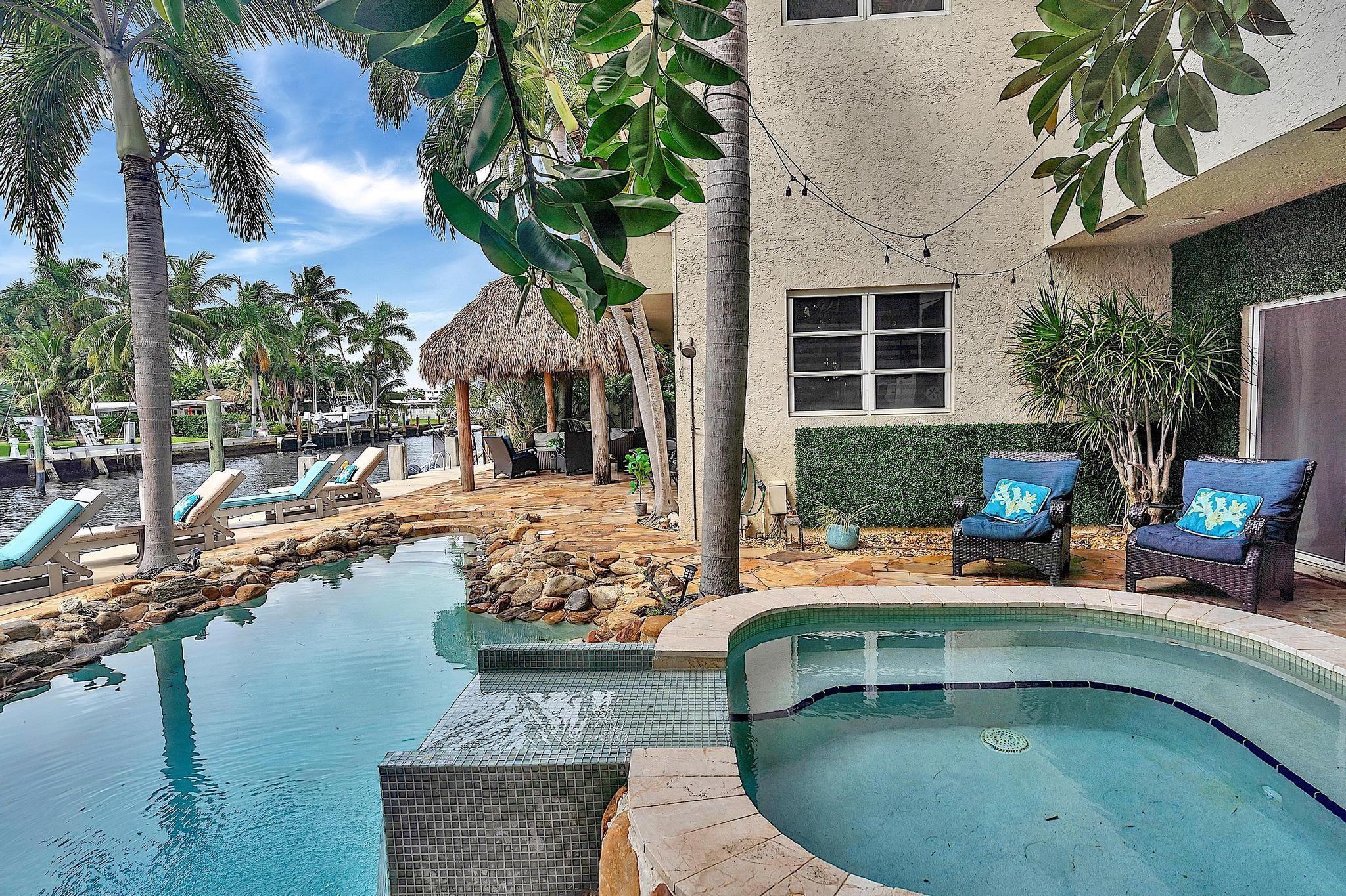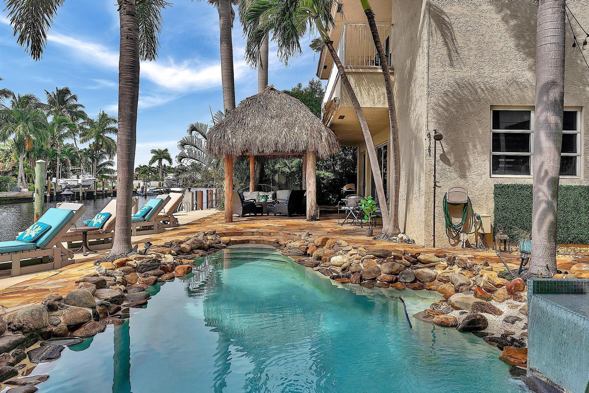 Terra Mar Island in Lauderdale By The Sea, a quiet & private gated beach community w/ beach access rights. Spacious home on 75ft deep water access just four lots from the Intracaostal & a short walk to the beach. The exclusive private deeded beach access less than 800 feet away, which includes a picnic area, BBQ, and private parking. Enjoy the outdoor space w/ new concrete dock, tikihut, heated pool w/ hottub section & waterfall feature. Grand entry into open floorplan of kitchen, living/dining and wetbar & entertainment area w/ windows overlooking the canal & poolarea. 2BR/2BT on main level & master suite & 4th BR on second floor. Master BR offers a wraparound balcony overlooking the water, His, open flow to bathroom w/ tub & shower. Rooftop terrace. The house will need some TLC.