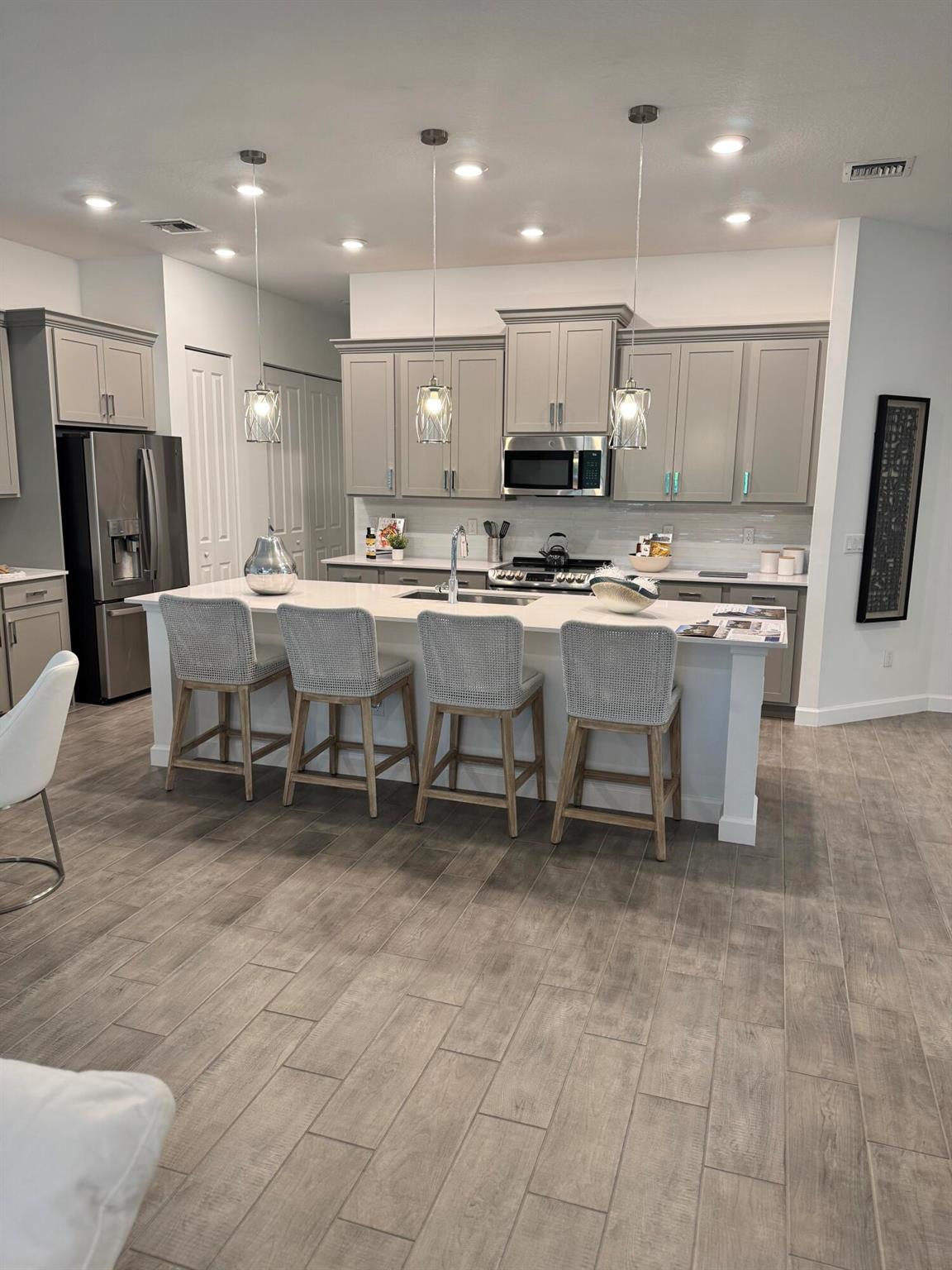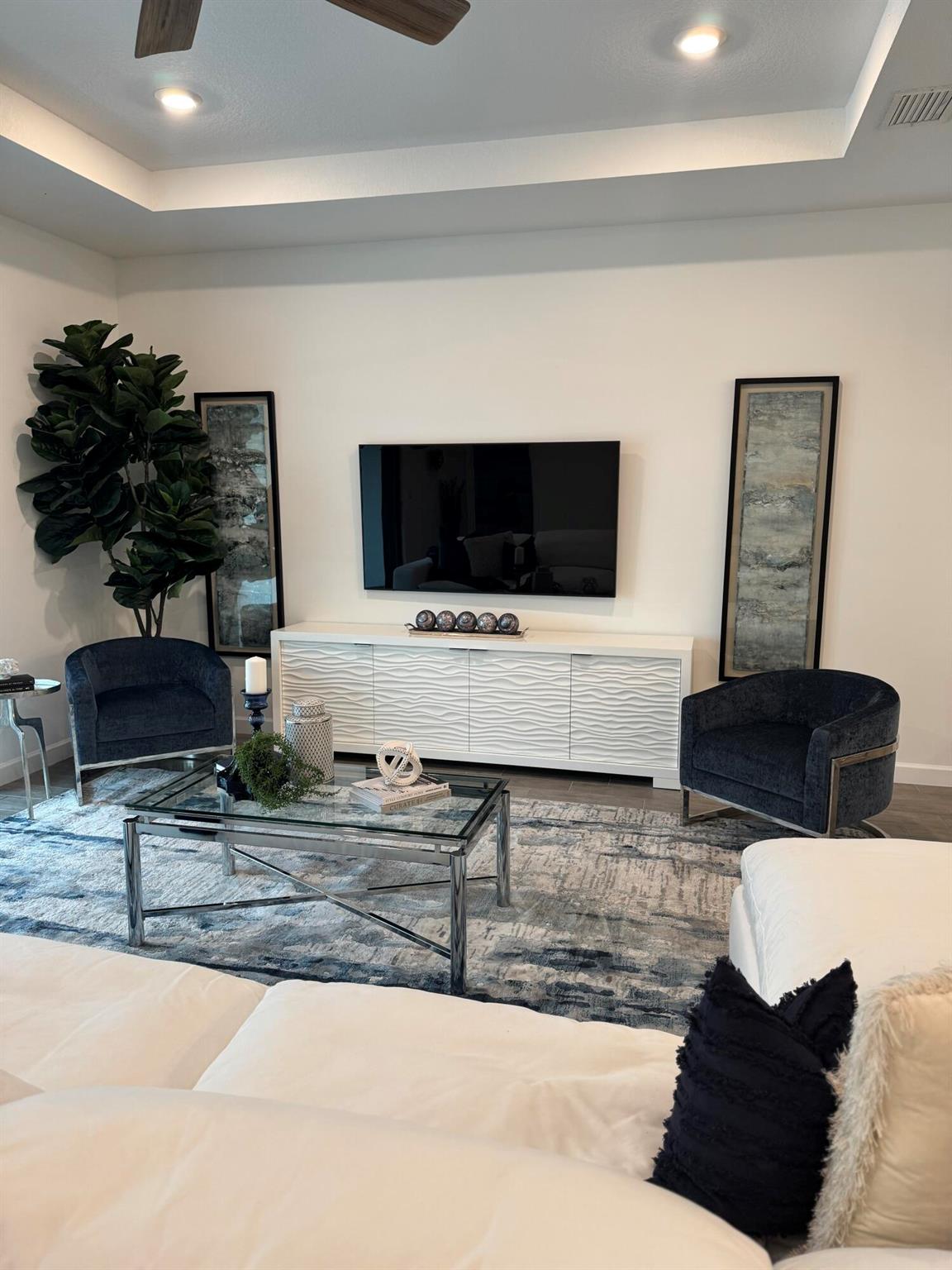 Welcome to your dream home in BellaSera–a stunning pool home that perfectly combines comfort, luxury, and tech-savvy elegance. Nestled in a single-story design, this residence offers 3 bedrooms, 2.5 bathrooms, and all the modern conveniences you desire. With 2,911 square feet of living space (2,253 under air), this spacious home features 12 foot ceilings, wood-look tile in the main areas and luxury vinyl plank flooring in the bedrooms for a gorgeous, cohesive look. Stay effortlessly connected in this WiFi smart home, equipped with the Ruckus System for unparalleled connectivity. The flexible layout includes a formal dining room, which doubles perfectly as an office or den, and a cozy breakfast area just right for casual or elegant meals.