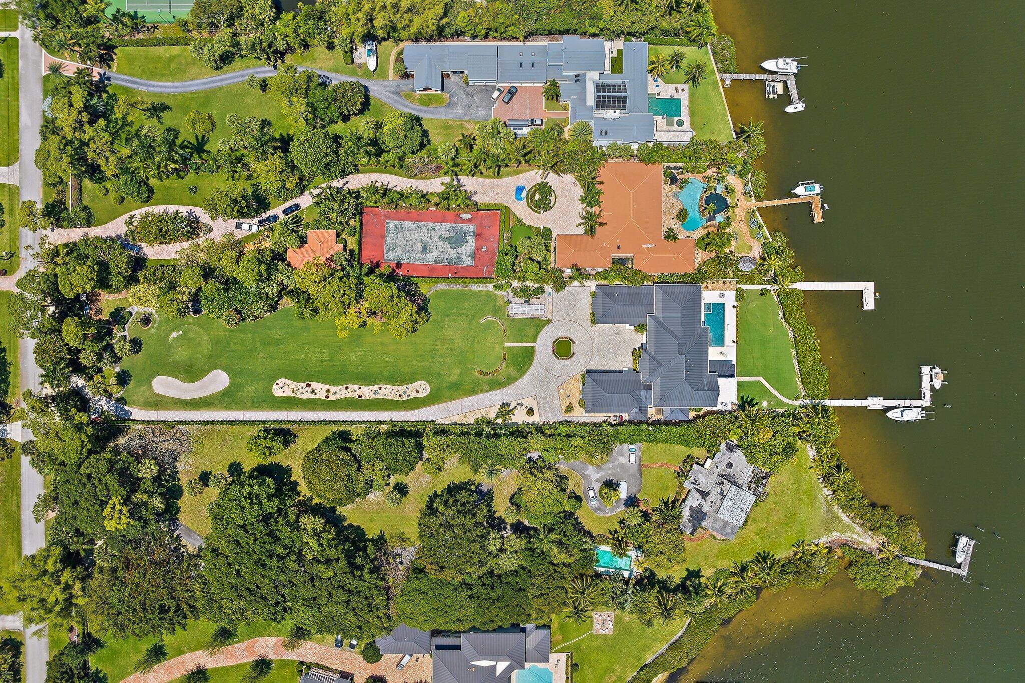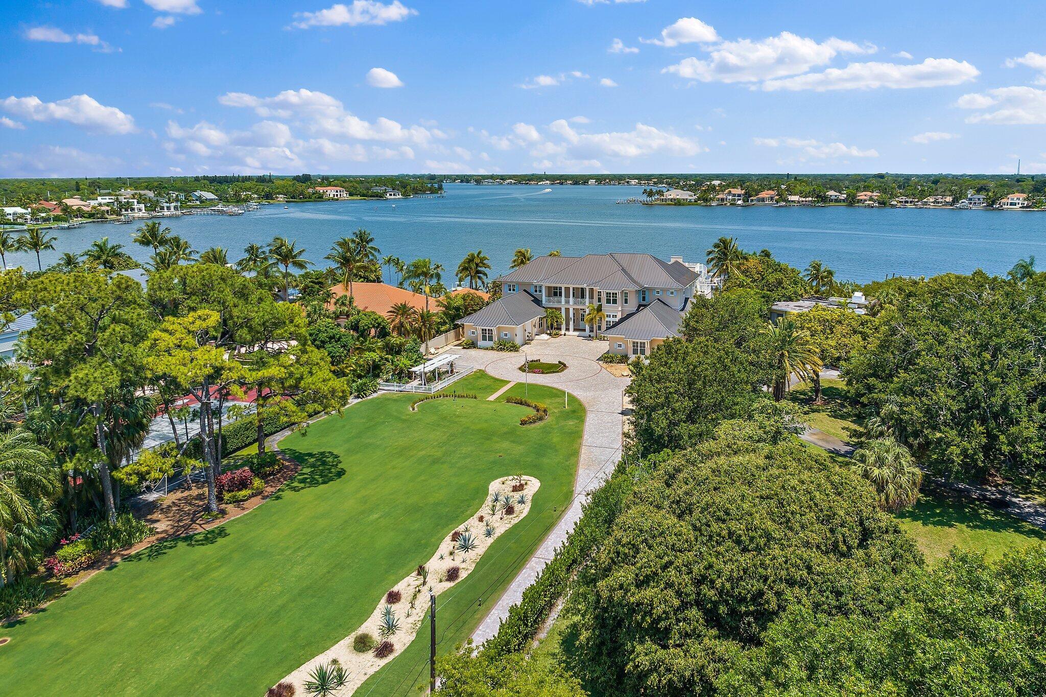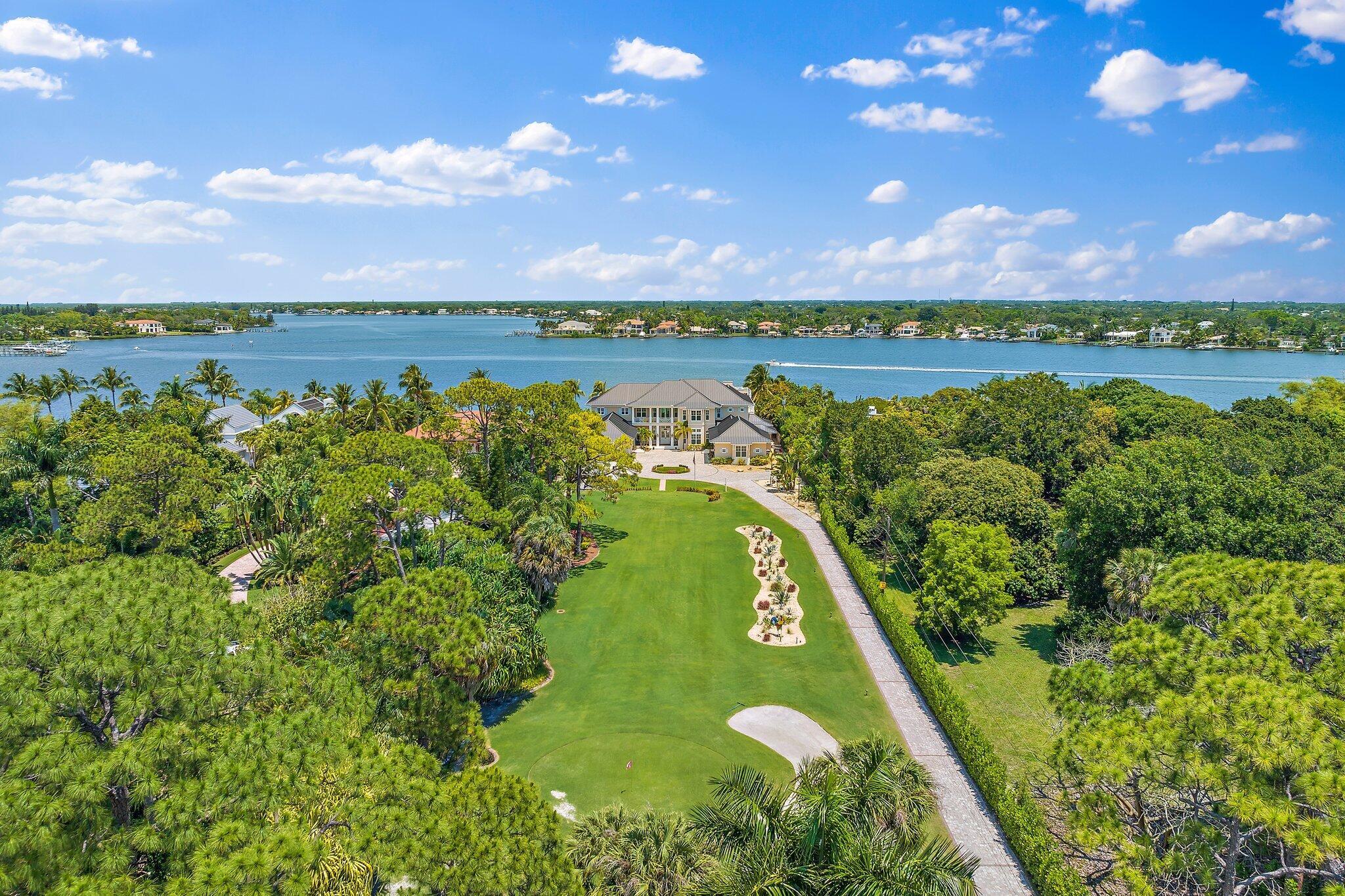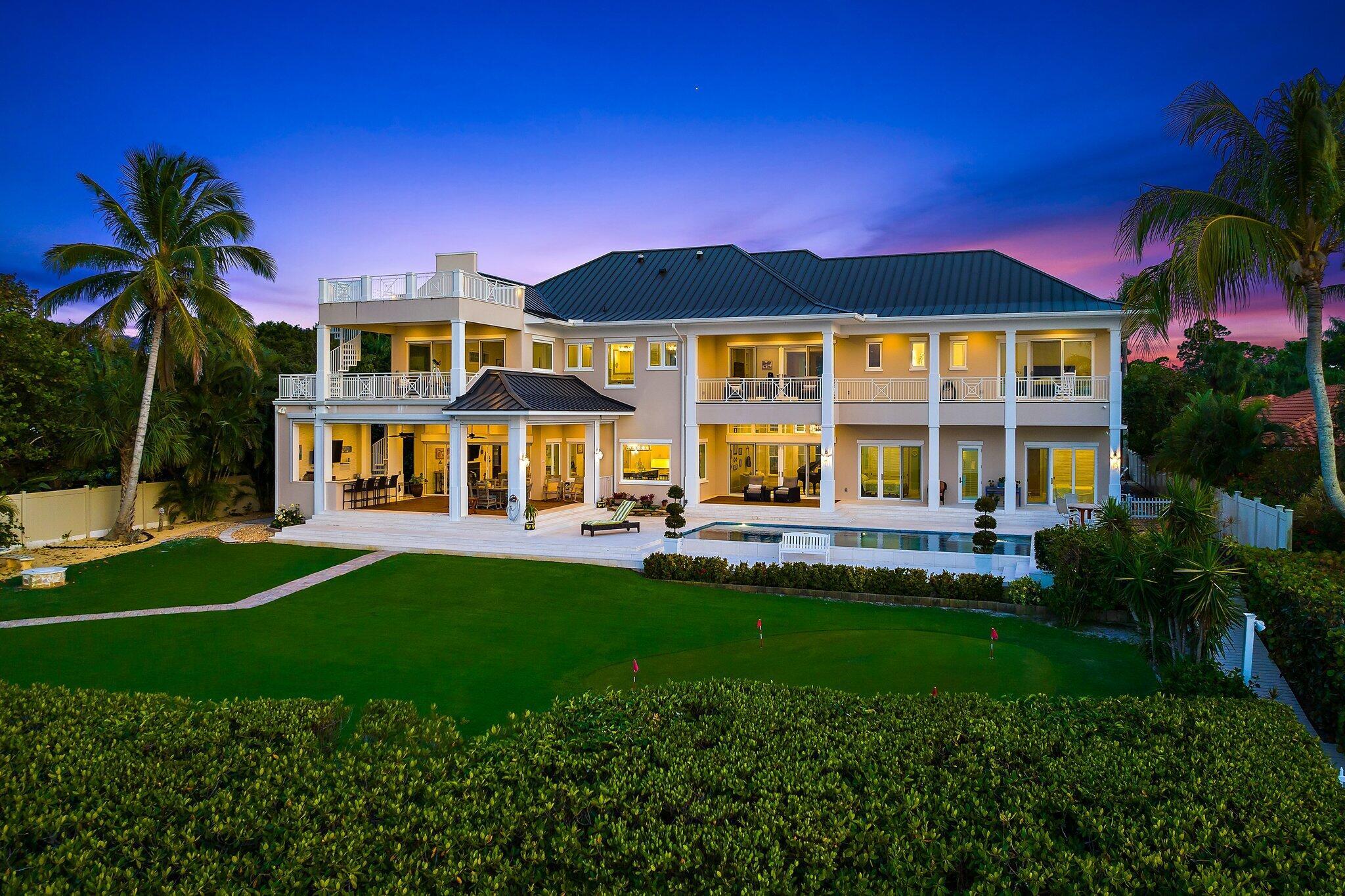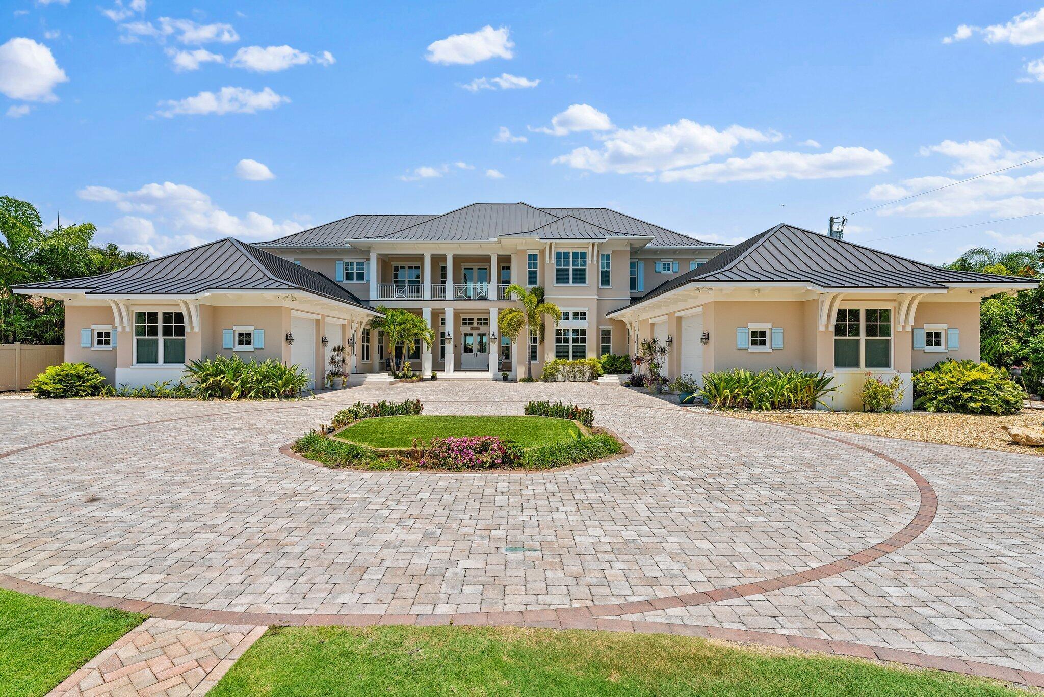 Introducing 5874 Pennock Point Rd., offered for the first time in over 30 years! Built in 2020, luxury living meets unparalleled leisure. Nestled on a sprawling riverfront site with almost 2 acres of lush tropical landscaping, this awe-inspiring estate home boasts 5 bedrooms, 6 full & 2 half bathrooms, and a unique par 3 in the front yard with a second-story tee box, offering a golfer’s paradise right at your doorstep.Upon entering the grand foyer, prepare to be captivated by the seamless blend of sophisticated design and top-of-the-line finishes. Built for both work and play, this stunning property includes two dedicated office spaces, perfect for the modern professional. Highlighting its waterfront location, this home is one of very few on the Loxahatchee River to have