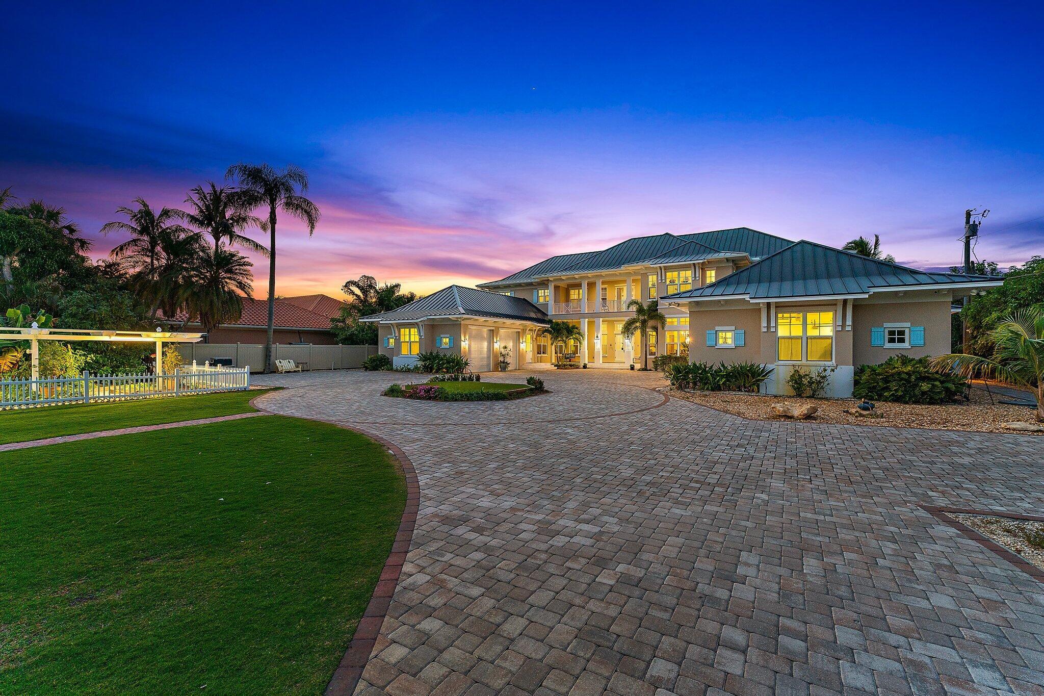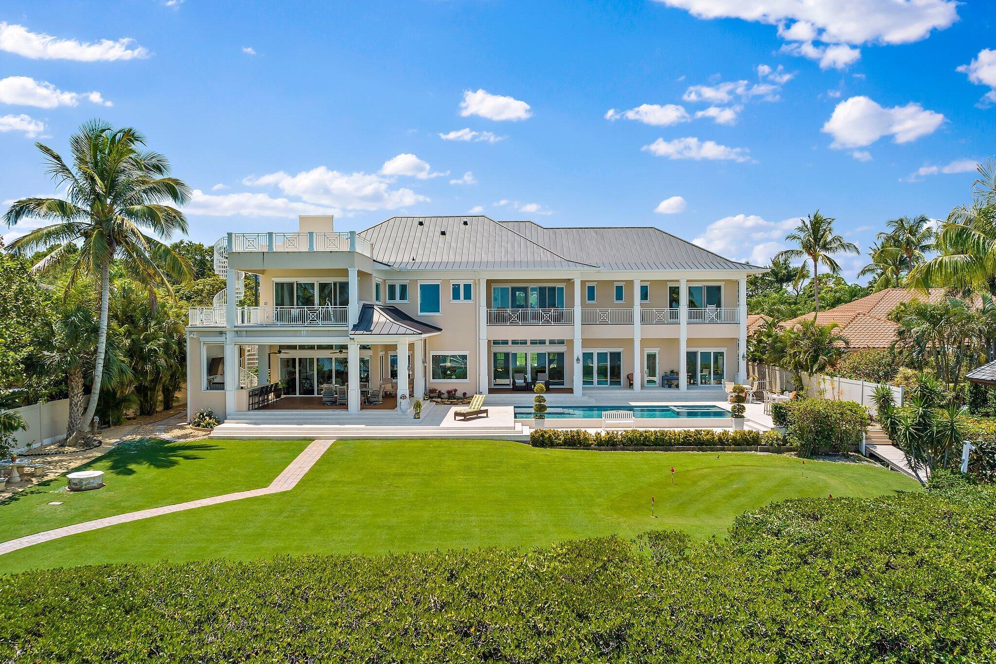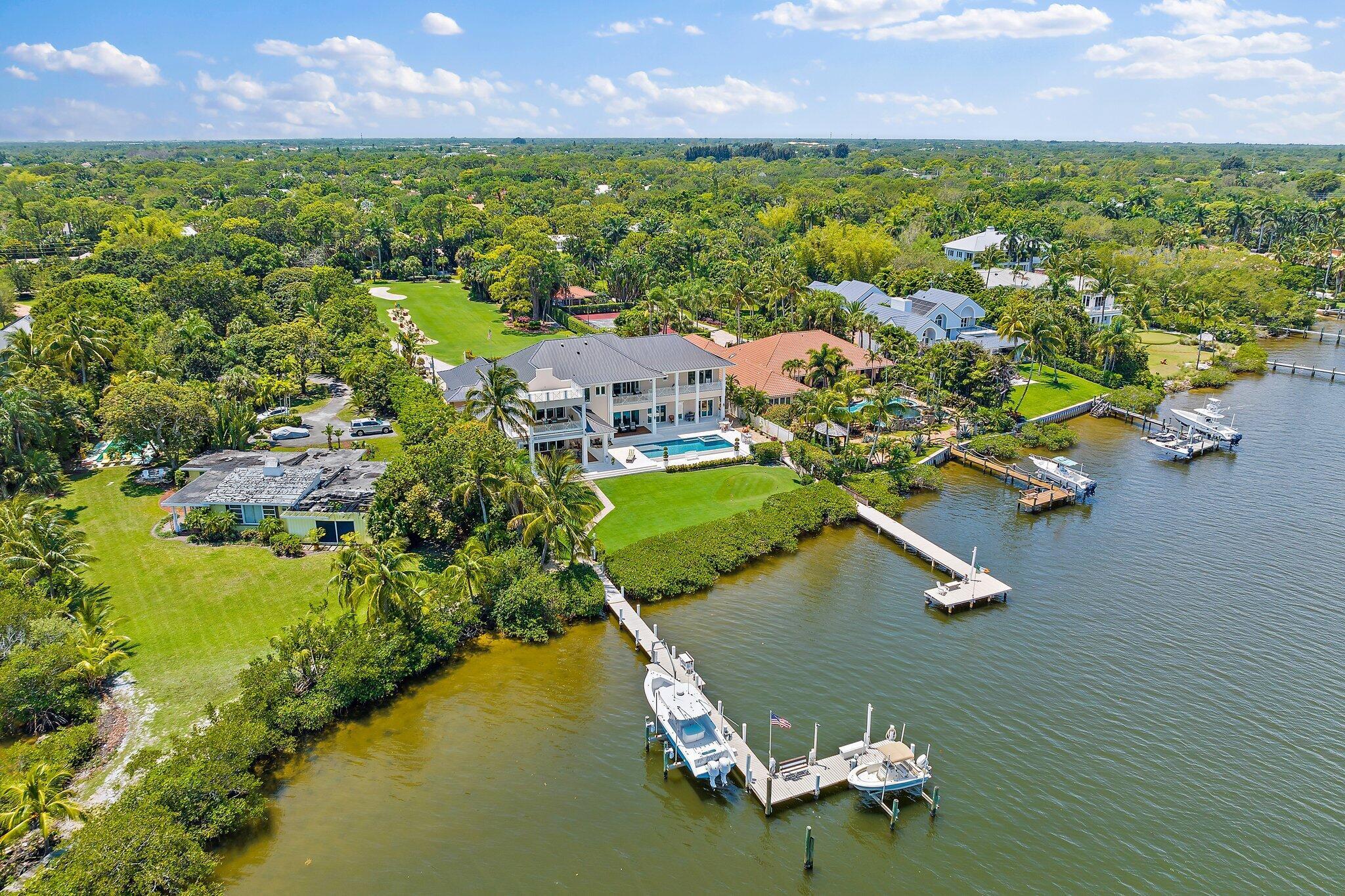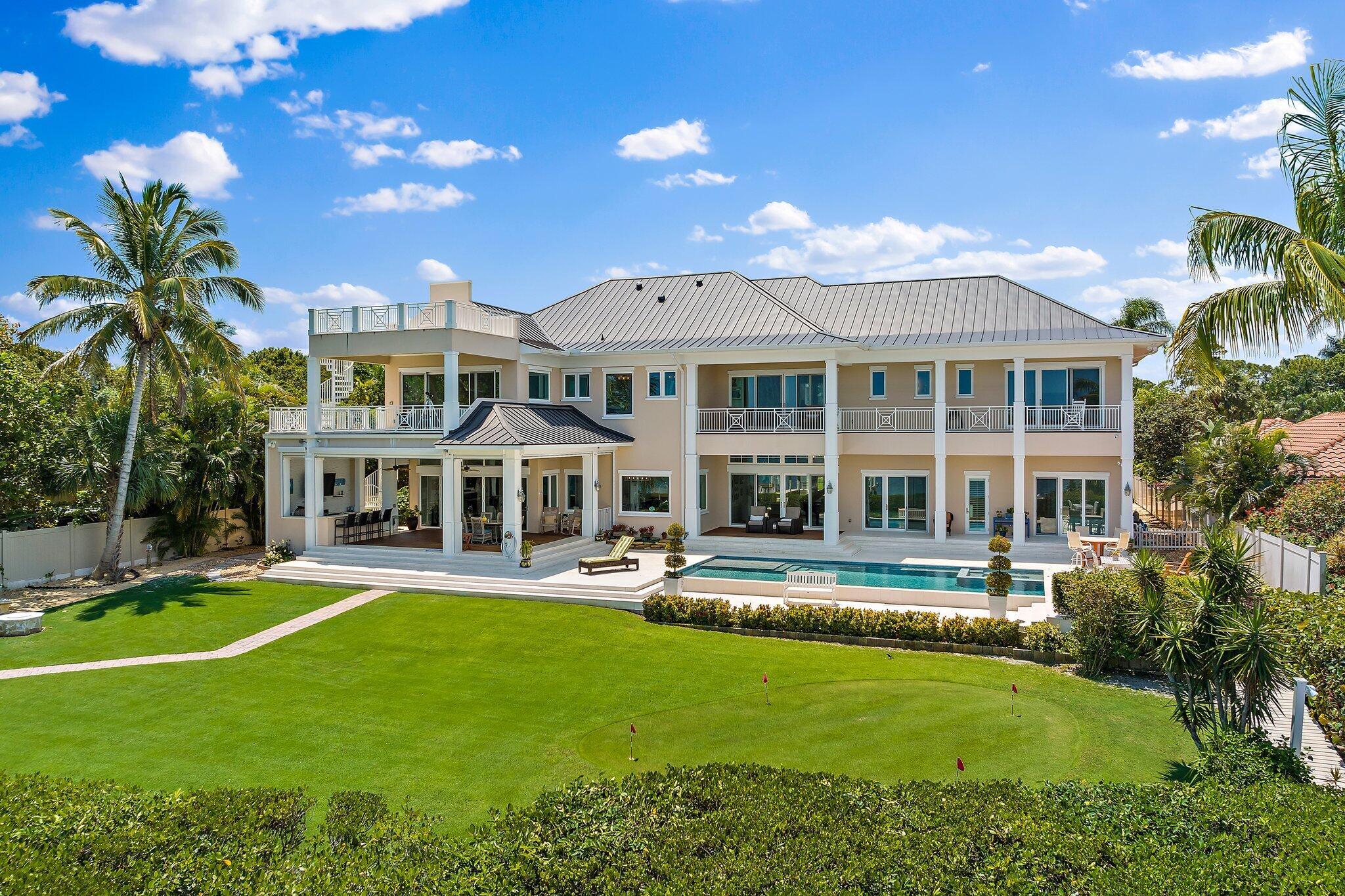 Introducing 5874 Pennock Point Rd., offered for the first time in over 30 years! Built in 2020, luxury living meets unparalleled leisure. Nestled on a sprawling riverfront site with almost 2 acres of lush tropical landscaping, this awe-inspiring estate home boasts 5 bedrooms, 6 full & 2 half bathrooms, and a unique par 3 in the front yard with a second-story tee box, offering a golfer’s paradise right at your doorstep.Upon entering the grand foyer, prepare to be captivated by the seamless blend of sophisticated design and top-of-the-line finishes. Built for both work and play, this stunning property includes two dedicated office spaces, perfect for the modern professional. Highlighting its waterfront location, this home is one of very few on the Loxahatchee River to have