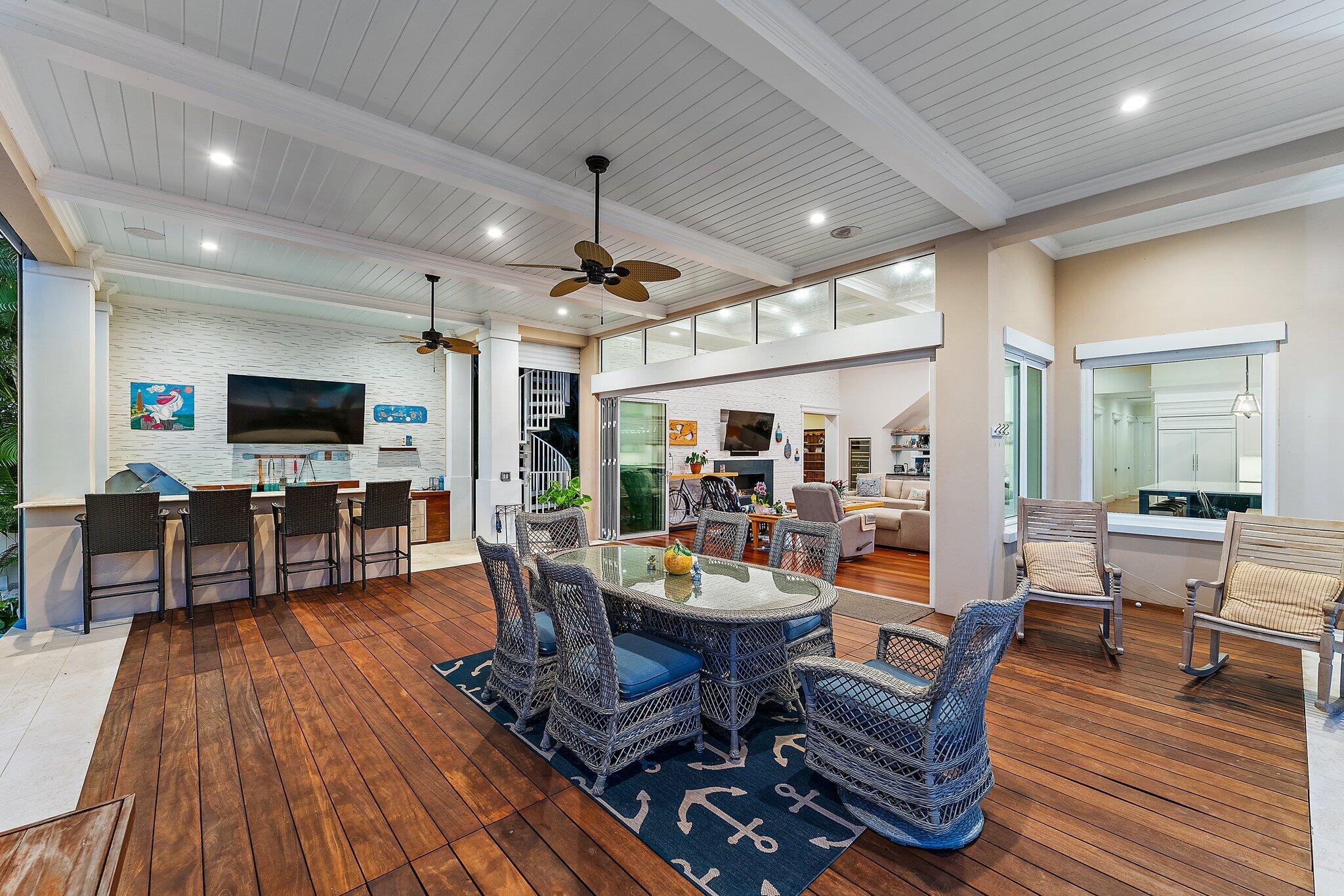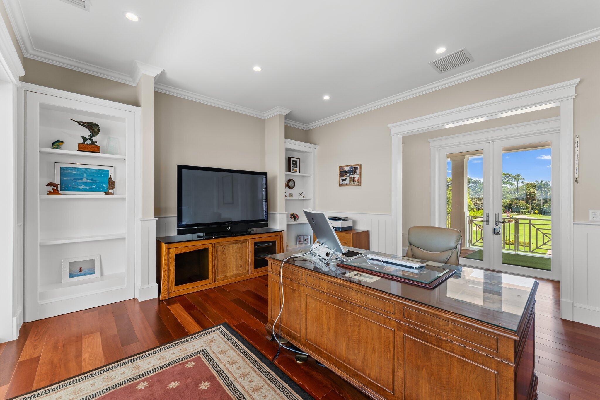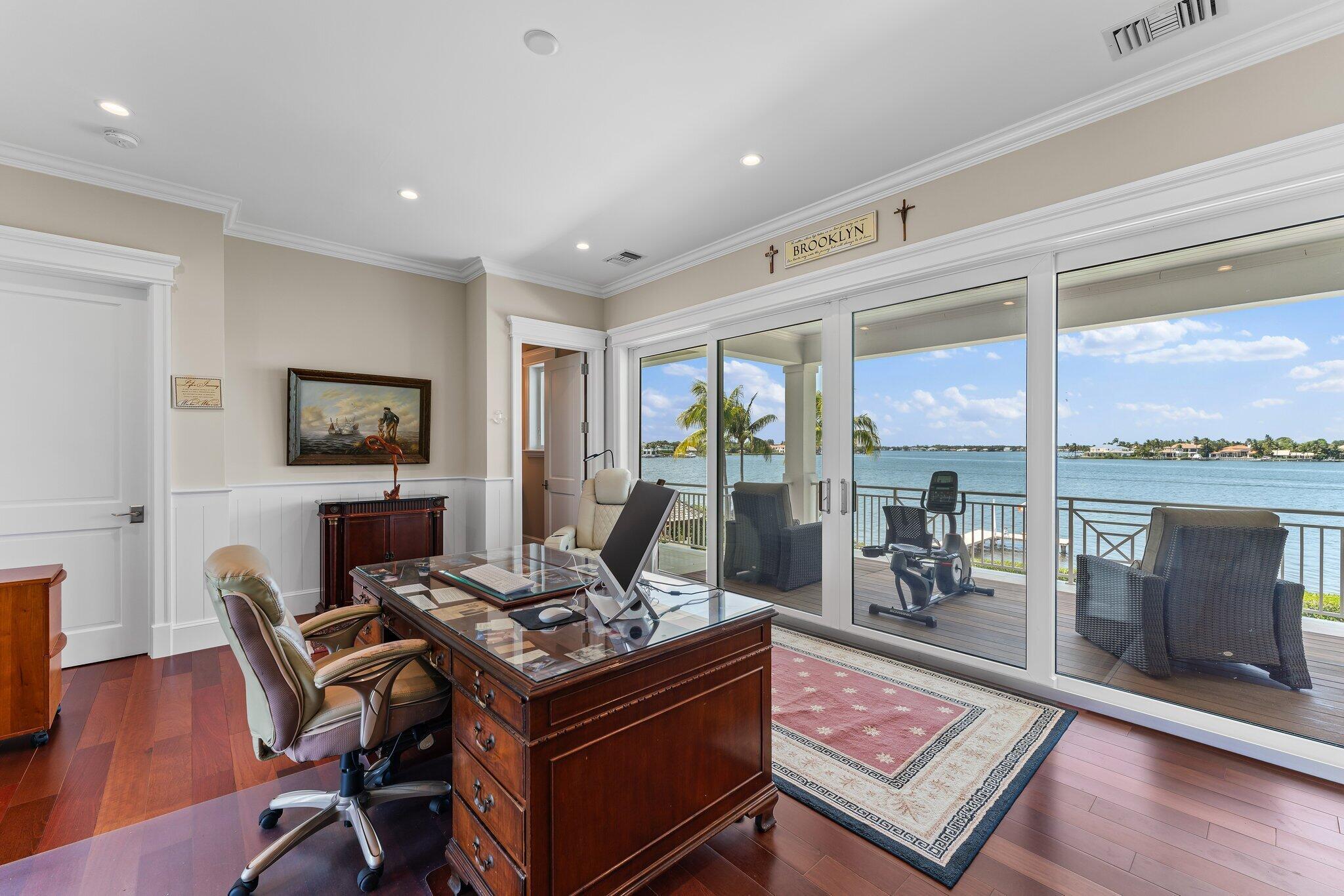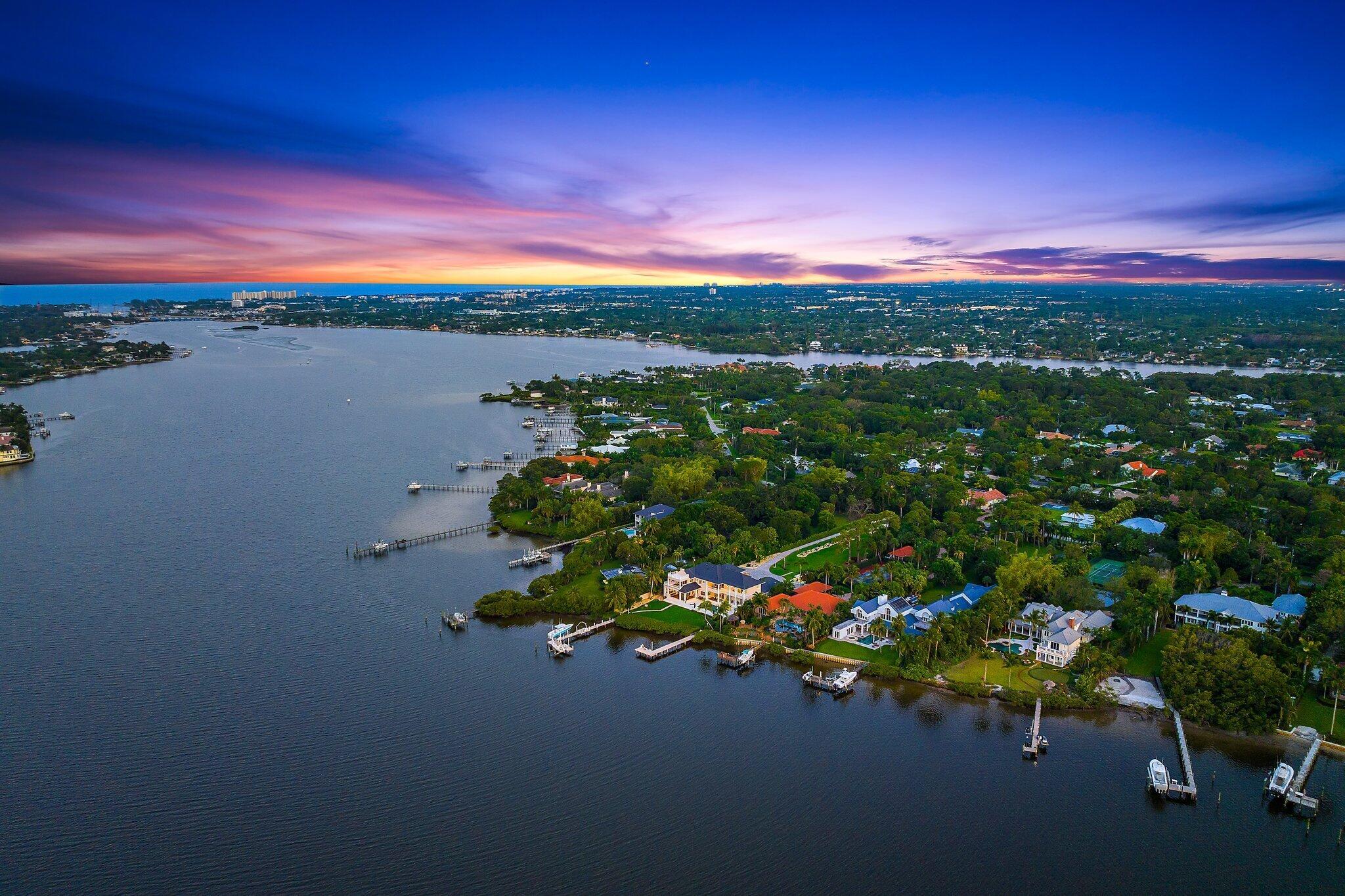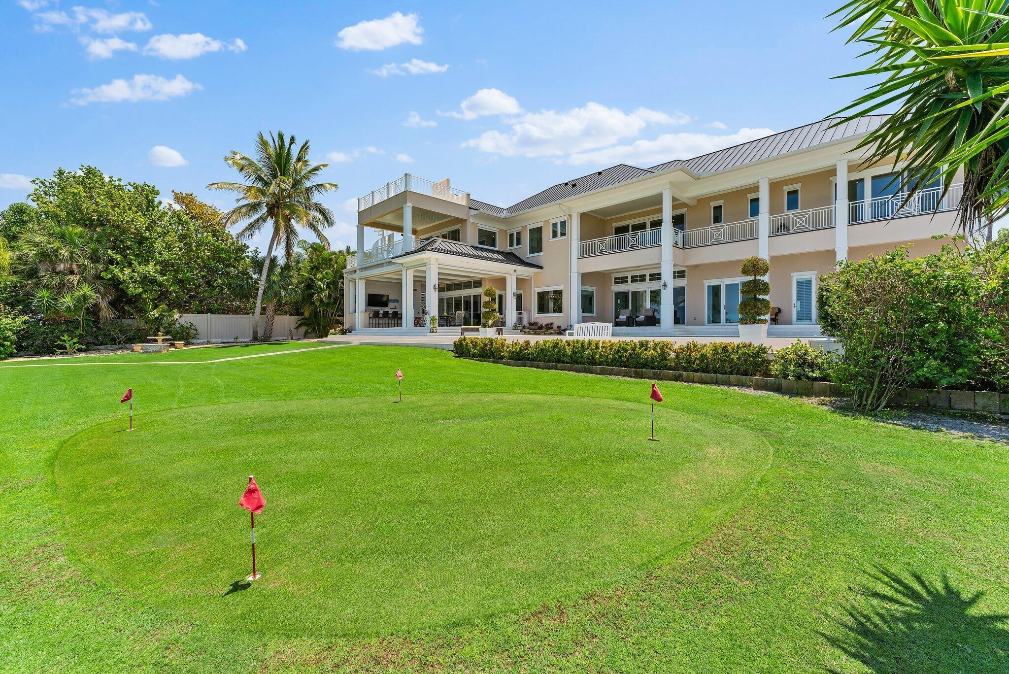 Introducing 5874 Pennock Point Rd., offered for the first time in over 30 years! Built in 2020, luxury living meets unparalleled leisure. Nestled on a sprawling riverfront site with almost 2 acres of lush tropical landscaping, this awe-inspiring estate home boasts 5 bedrooms, 6 full & 2 half bathrooms, and a unique par 3 in the front yard with a second-story tee box, offering a golfer’s paradise right at your doorstep.Upon entering the grand foyer, prepare to be captivated by the seamless blend of sophisticated design and top-of-the-line finishes. Built for both work and play, this stunning property includes two dedicated office spaces, perfect for the modern professional. Highlighting its waterfront location, this home is one of very few on the Loxahatchee River to have