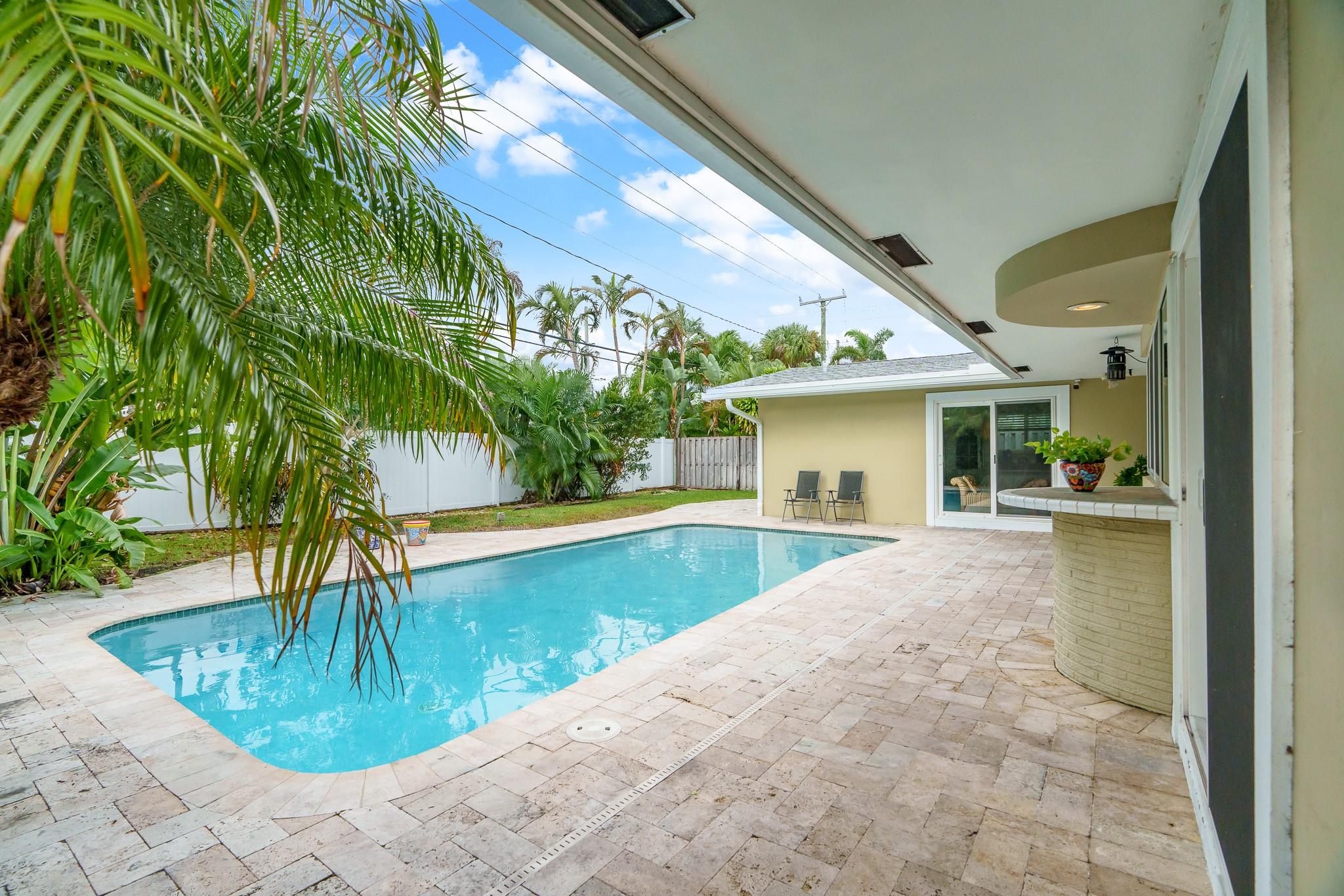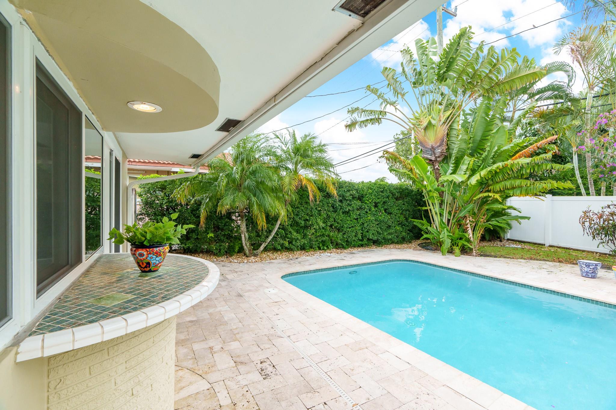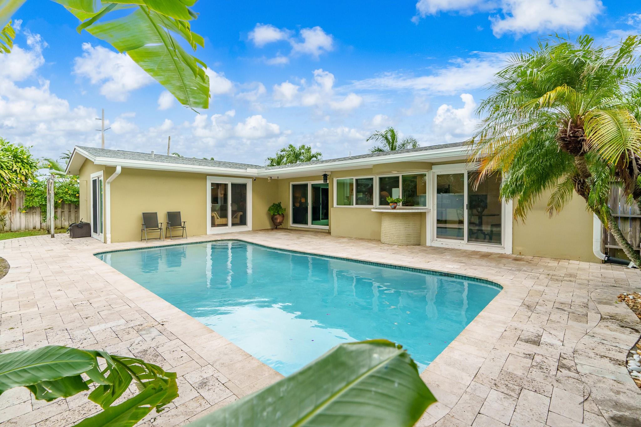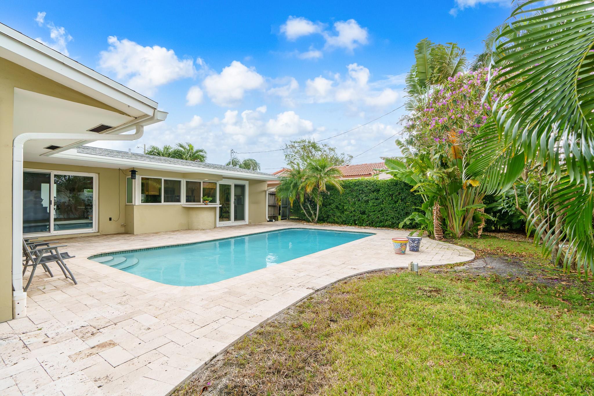 This Home Will Make Every Day Feel Like A Private Vacation Retreat! Well maintained and move-in ready 1,689 sq ft home offers 3 bedrooms and 2 bathrooms, including a stunning primary suite, an inviting entry in to a large and open living area with pool views, and a spacious yard. Beautiful Chef’s Kitchen with abundant storage and counter space, a breakfast bar and a pool-pass through for year-round entertaining. This 6797 Sq. ft lot home has a circular driveway, a new roof (2022), New AC (2020), and all new hurricane impact windows. Vivent Security System. The tropical oasis backyard features an inviting pool and lush landscaping. Only 1.5 miles to Lauderdale by the Sea and close proximity to Coral Ridge Golf & Country Club, Wilton Manors, Shopping, and Restaurants!
