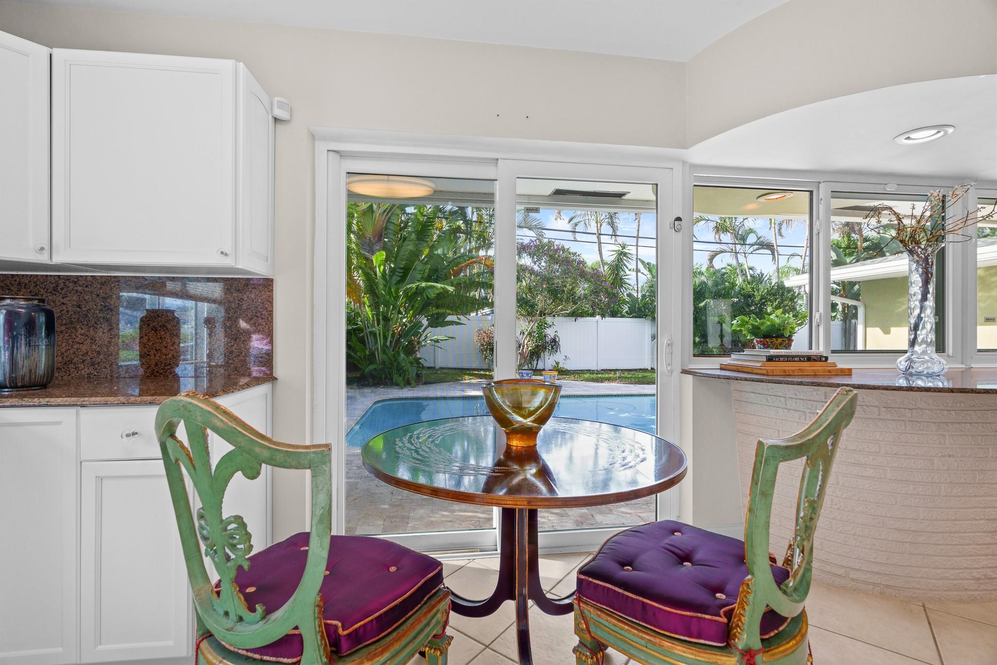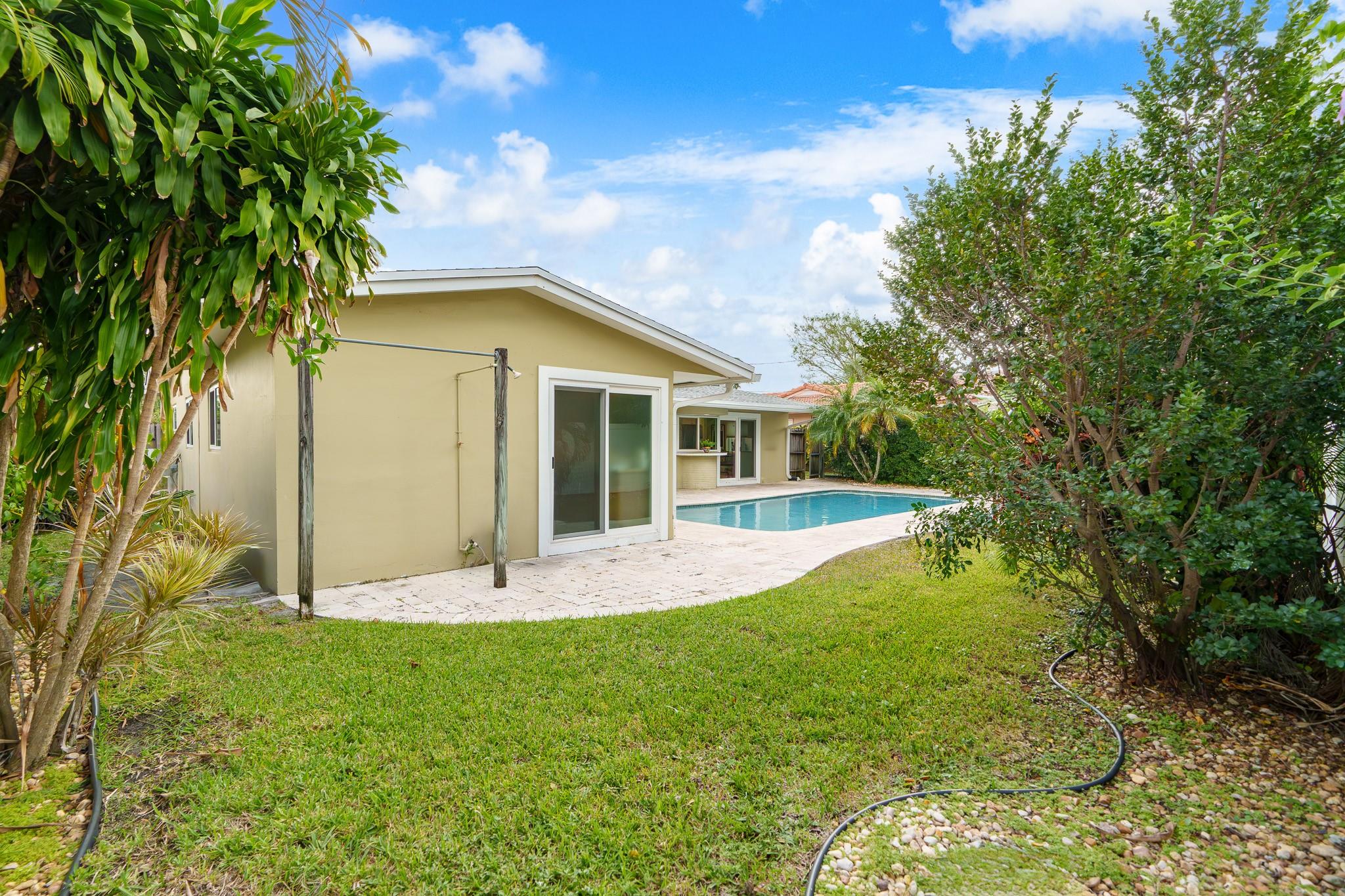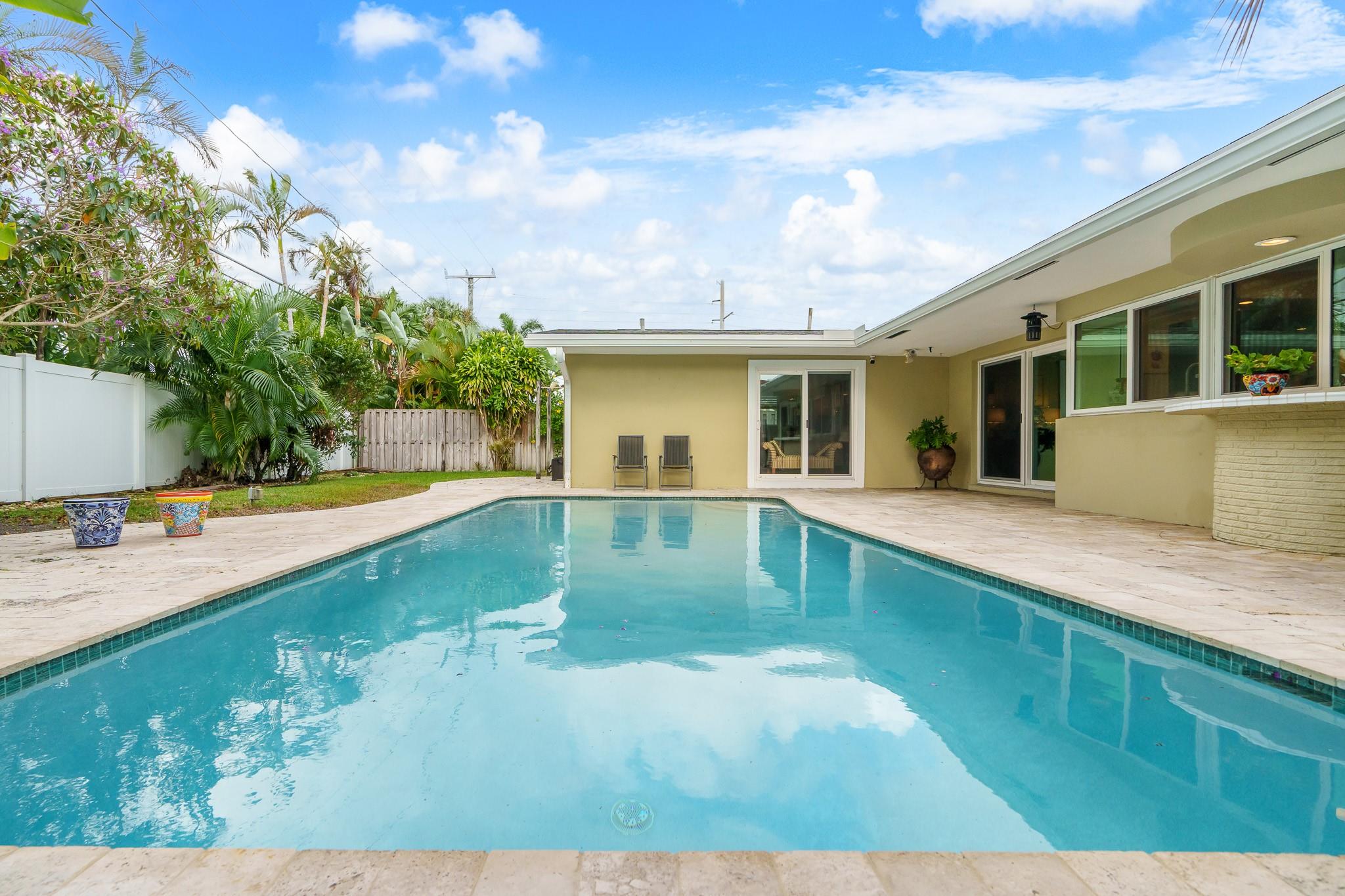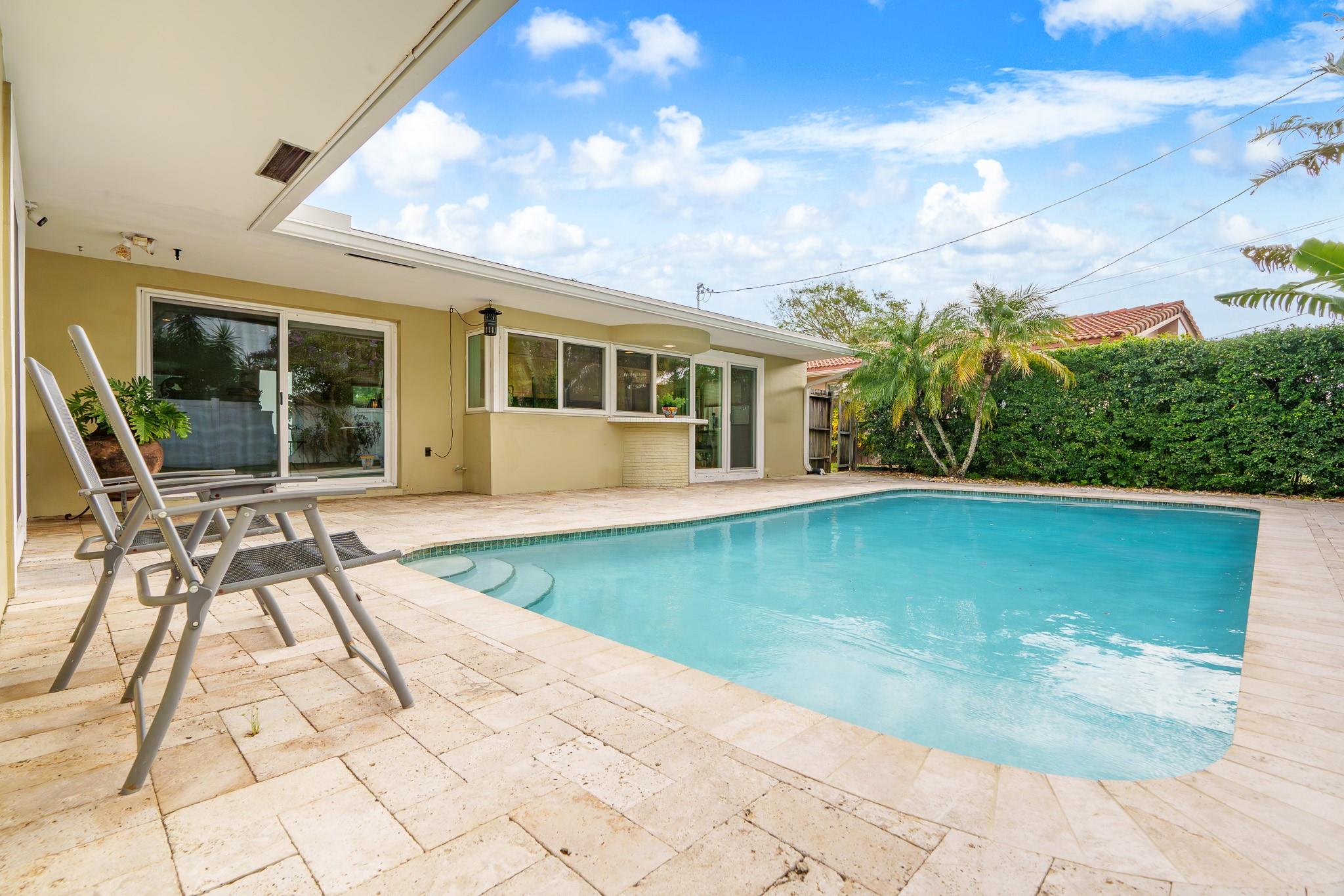 This Home Will Make Every Day Feel Like A Private Vacation Retreat! Well maintained and move-in ready 1,689 sq ft home offers 3 bedrooms and 2 bathrooms, including a stunning primary suite, an inviting entry in to a large and open living area with pool views, and a spacious yard. Beautiful Chef’s Kitchen with abundant storage and counter space, a breakfast bar and a pool-pass through for year-round entertaining. This 6797 Sq. ft lot home has a circular driveway, a new roof (2022), New AC (2020), and all new hurricane impact windows. Vivent Security System. The tropical oasis backyard features an inviting pool and lush landscaping. Only 1.5 miles to Lauderdale by the Sea and close proximity to Coral Ridge Golf & Country Club, Wilton Manors, Shopping, and Restaurants!