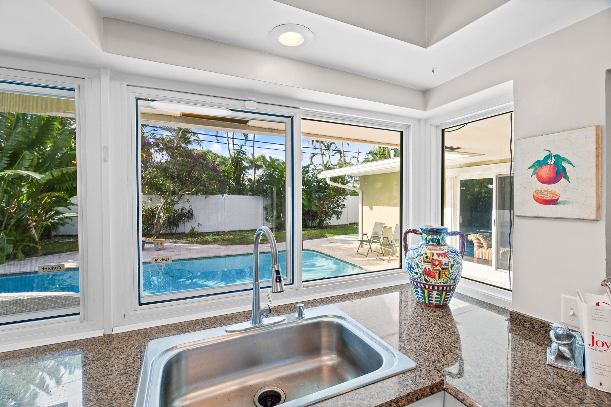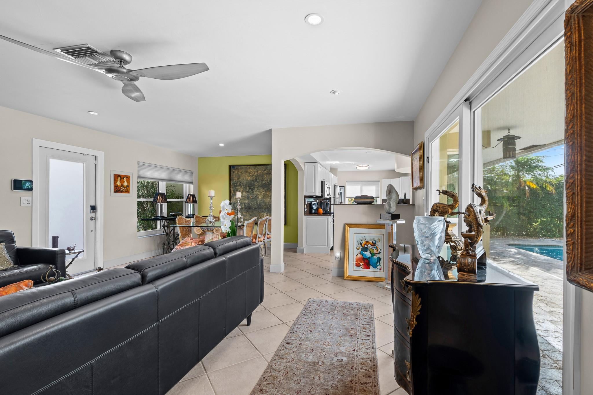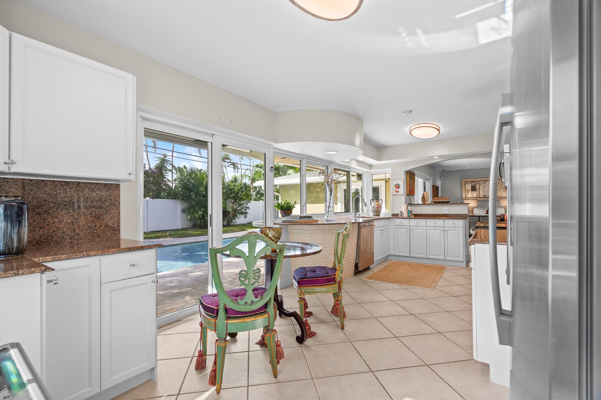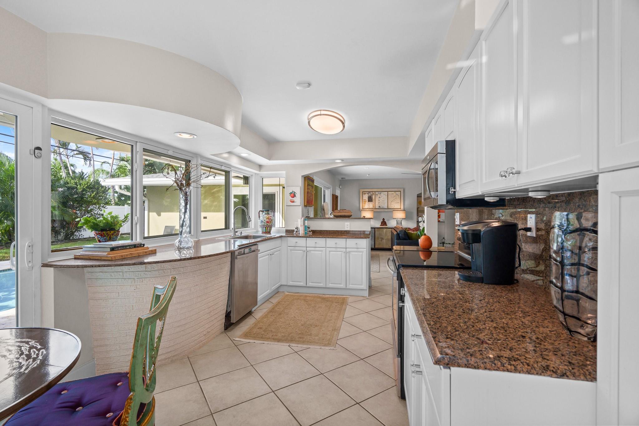 This Home Will Make Every Day Feel Like A Private Vacation Retreat! Well maintained and move-in ready 1,689 sq ft home offers 3 bedrooms and 2 bathrooms, including a stunning primary suite, an inviting entry in to a large and open living area with pool views, and a spacious yard. Beautiful Chef’s Kitchen with abundant storage and counter space, a breakfast bar and a pool-pass through for year-round entertaining. This 6797 Sq. ft lot home has a circular driveway, a new roof (2022), New AC (2020), and all new hurricane impact windows. Vivent Security System. The tropical oasis backyard features an inviting pool and lush landscaping. Only 1.5 miles to Lauderdale by the Sea and close proximity to Coral Ridge Golf & Country Club, Wilton Manors, Shopping, and Restaurants!