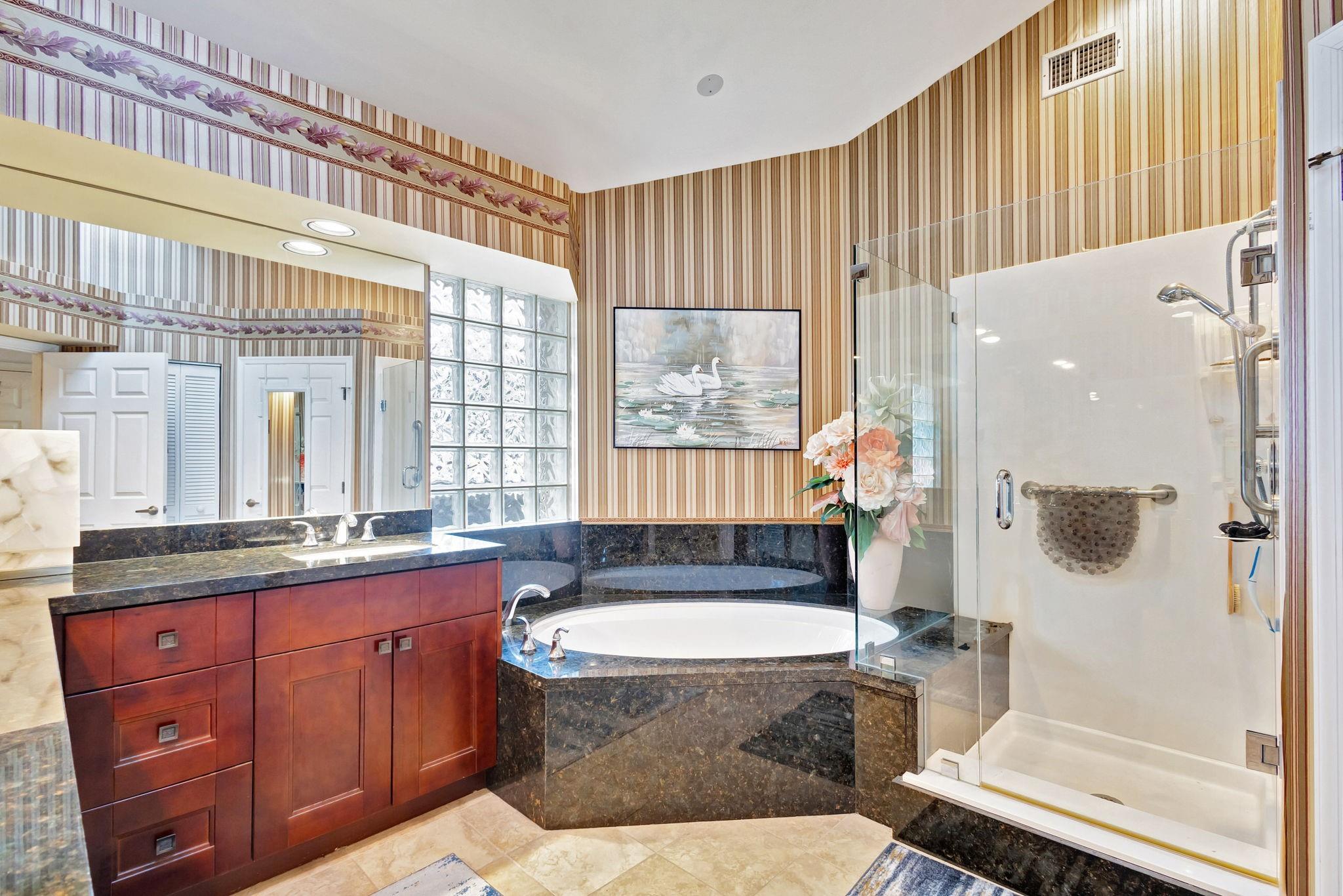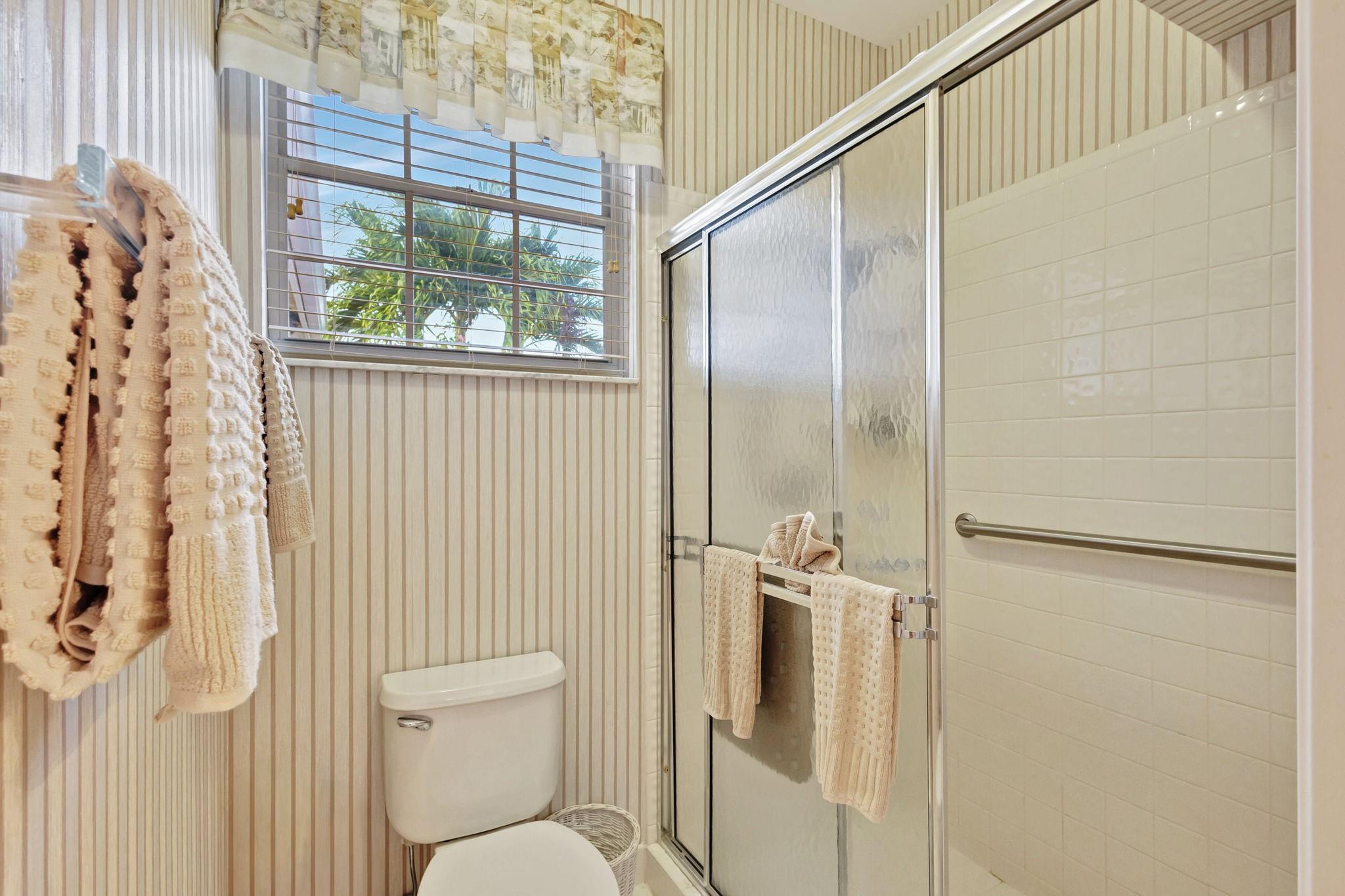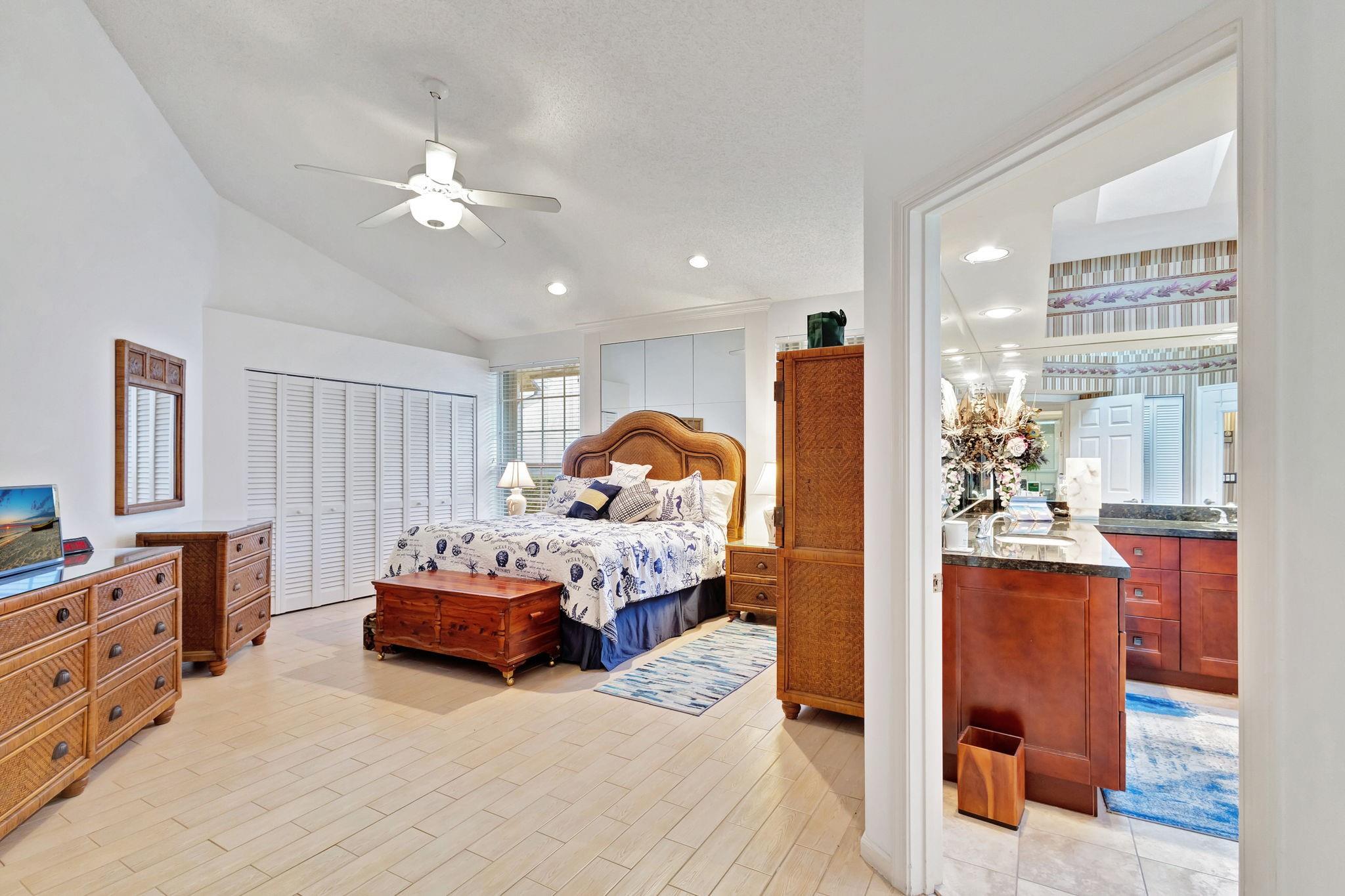 This Eastpoint CC home is CBS BLOCK (not wood frame!) with vaulted ceilings! It has been extended in the back with HURRICANE IMPACT DOORS, allowing a fantastic view of the GOLF course & lake while relaxing in your screened-in lanai! The are 3 spacious bedrooms and baths & 2 separate PRIMARY suites! The huge eat-in kitchen features a center island and wrap-around cabinetry. This home also has a bonus entertainment area that can also be used as a second kitchen. All this PLUS AN air-conditioned garage with loads of cabinets, brick pavers on patio & walkways, a laundry room, central vacuuming, 2024 oversized HWH, luscious landscaping and a METAL ROOF! Eastpoint CC has 2 Audobon Fazio Golf courses, wonderful social events, Tennis, Pickleball, Fitness Center, 8 pools & spectacular clubhouses!