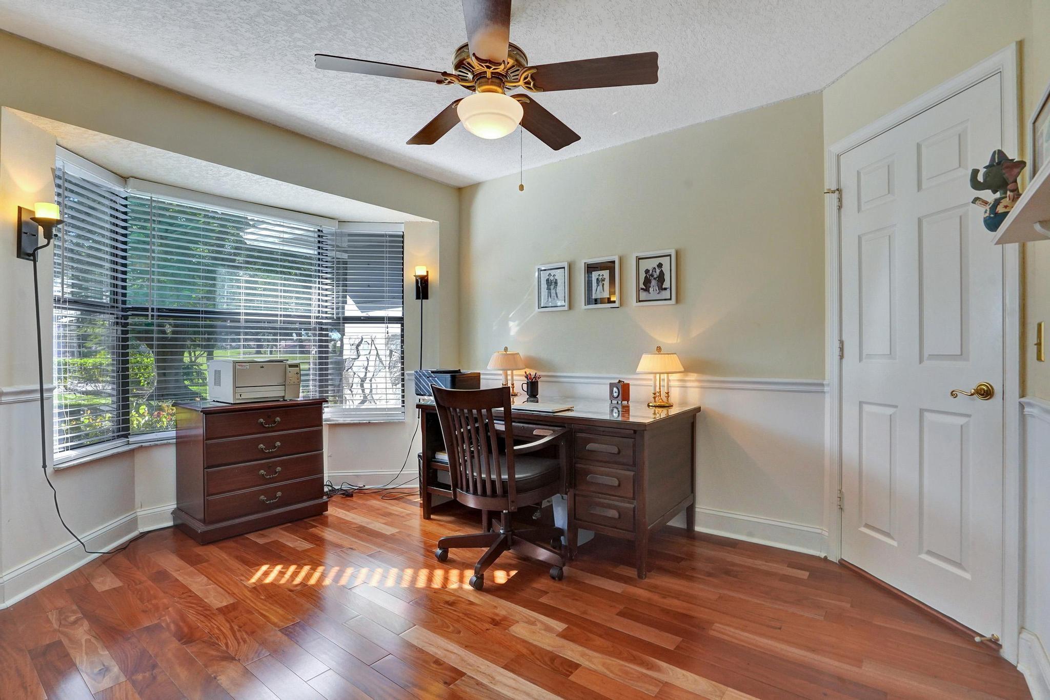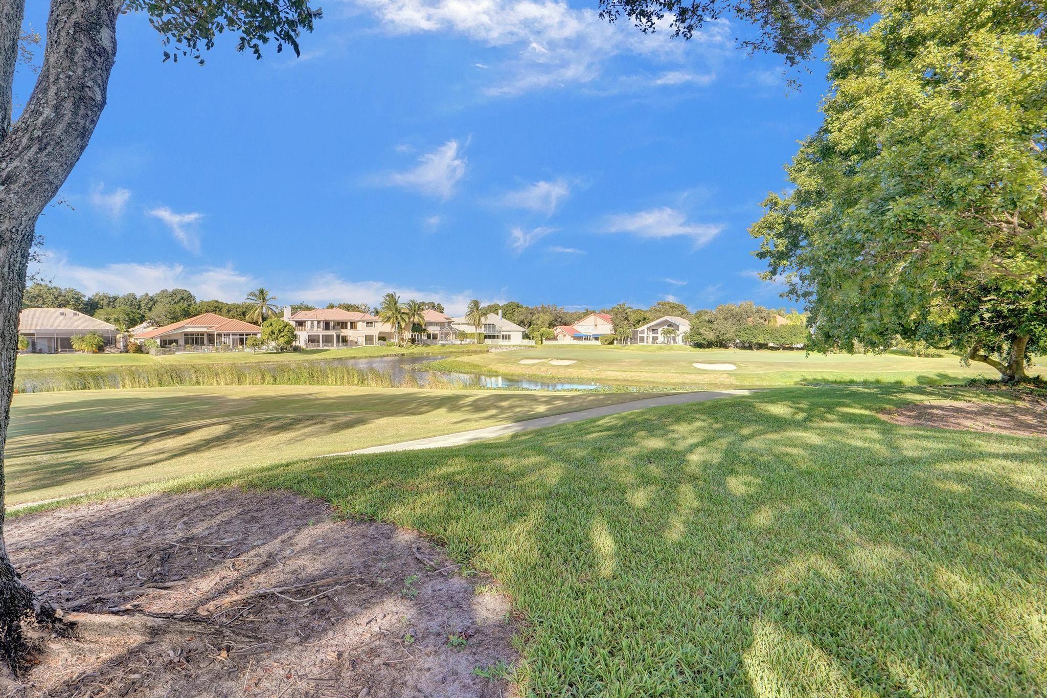 Situated in the back of a quiet cul de sac in prestigious Eagle Trace, this spacious & well laid-out home features amazing golf course views w/ tons of green space! 4 bedrooms + office. Separate formal living, dining, & family rooms. Master bedroom is spacious & features a large walk-in closet. Large kitchen w/ plenty of cabinets & counter space is open to the family room (currently being used as the dining room). 3 additional very large bedrooms on the other side of the house – 1 w/ walk-in closet, ensuite bathroom, & sitting area. 2 other bedrooms – 1 w/ ensuite bathroom & another w/ cabana bathroom leading out to the pool. 3 zoned AC units. Eagle Trace is a non-equity community w/ remodeled clubhouse, low HOA fee, fitness center, Golf Course, 15 Har-Tru tennis courts, & pickleball!