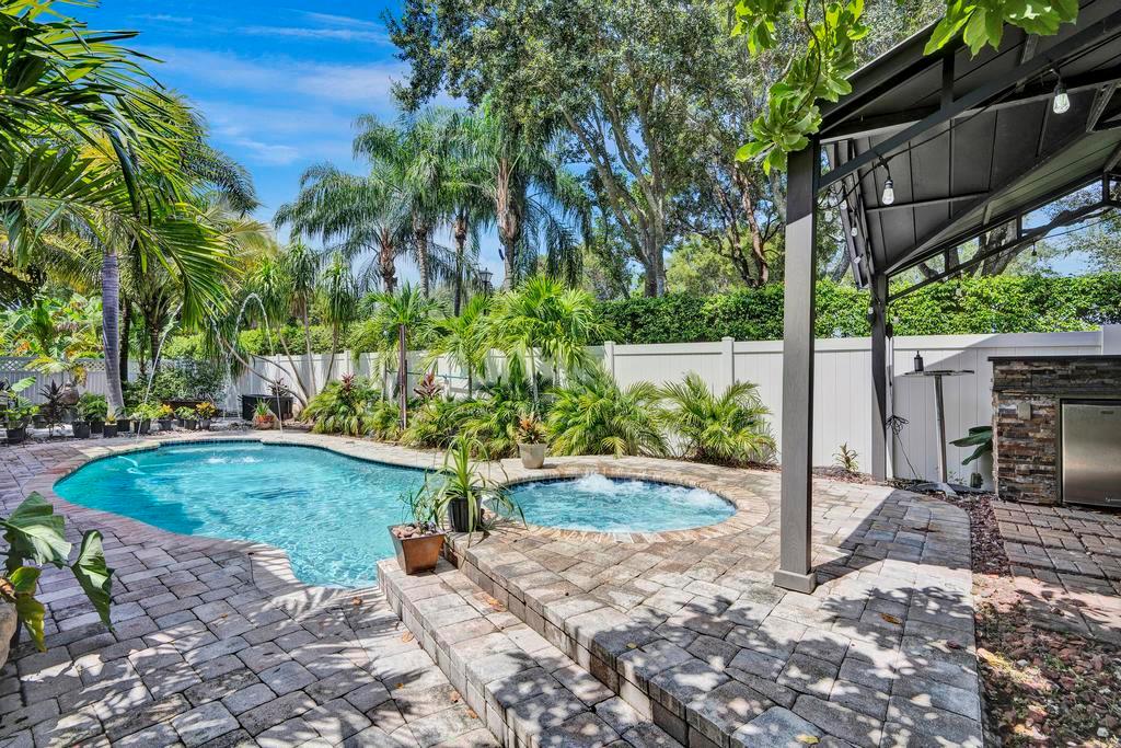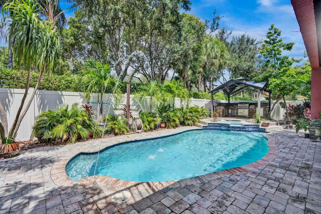 Stunning two-story Riviera Isles pool home featuring 5 beds built with entertainment in mind. Get peace of mind with a brand-new roof in 2021 and a full kitchen renovation in 2021 as well. Seller spared no expense when designing this backyard sanctuary featuring a large pool, attached spa, and a covered outdoor kitchen w/built in grill, fridge and cooktop ready to host your next party. A grand staircase welcomes you that leads to truly massive bedrm sizes. The master features a tandem 5th bdrm/nursery/office. A huge 2nd flr balcony off the master features stairs leading to the back patio. Riviera Isles II is a gated community featuring a resort style clubhouse, pool, health club, basketball, tennis, and multiple playgrounds. And last but surely not least, all schools K-12 are ”A” rated!