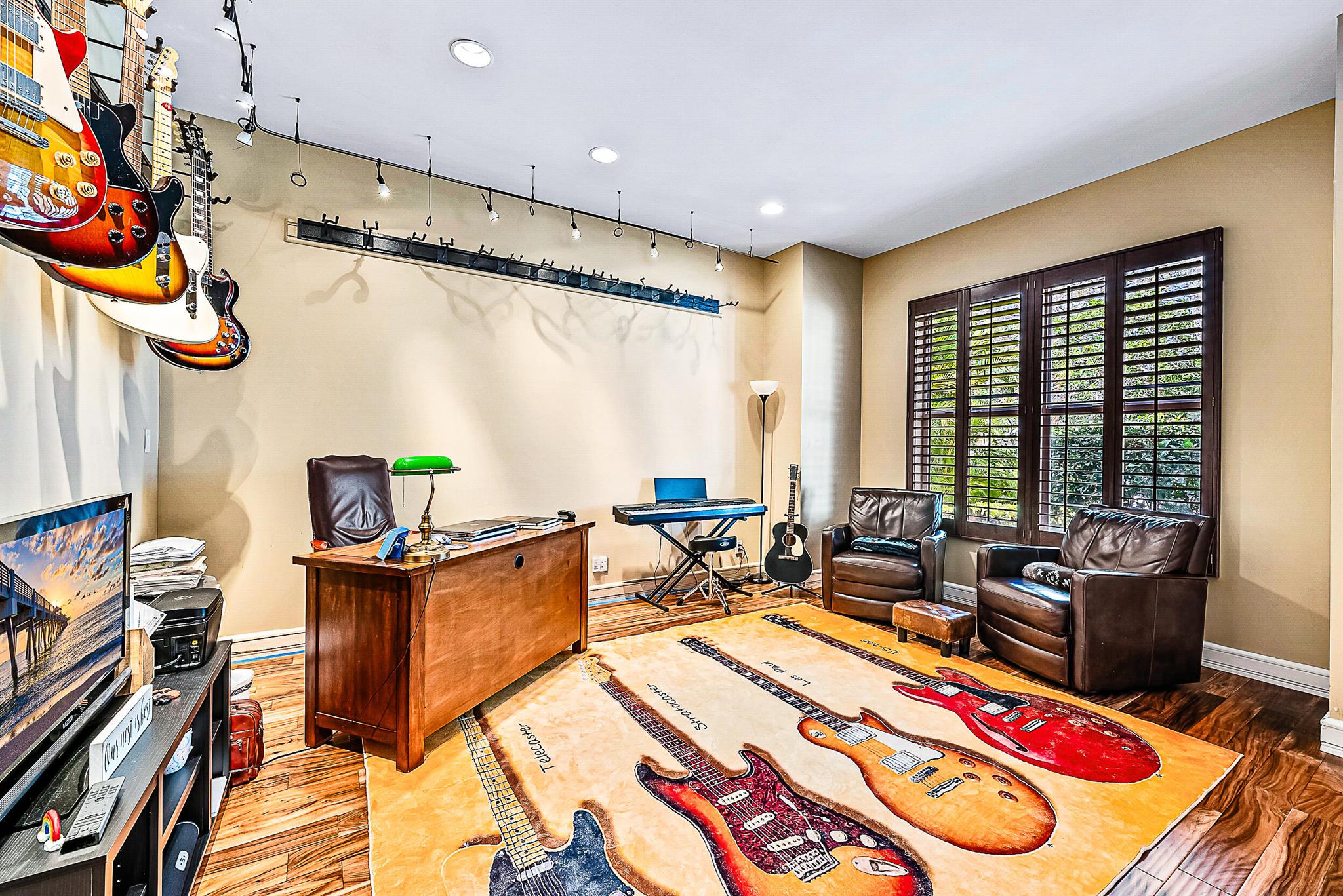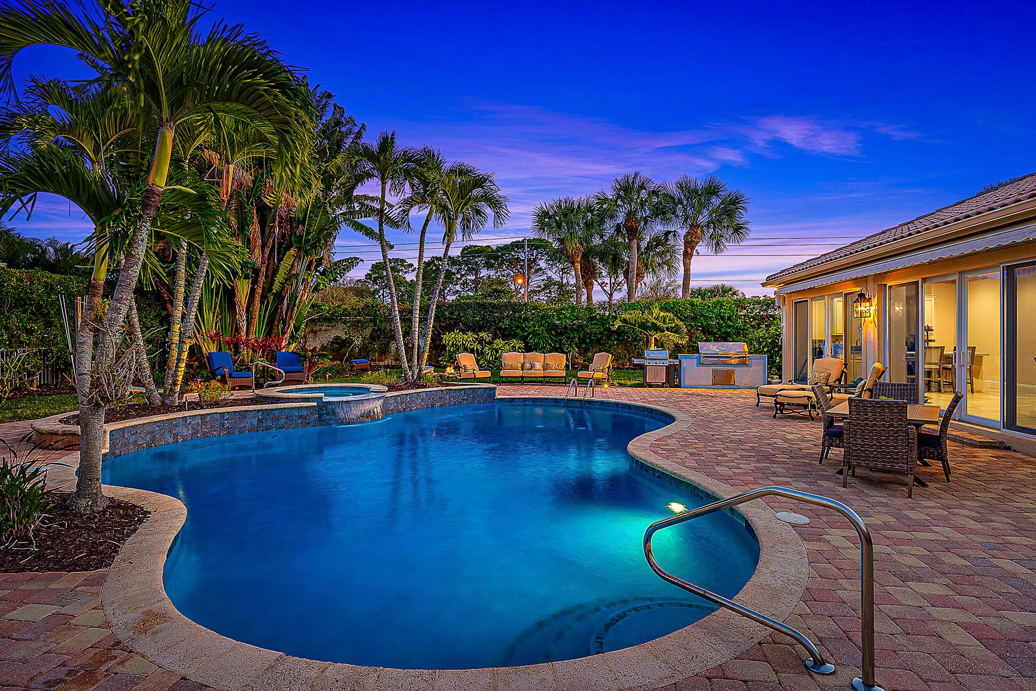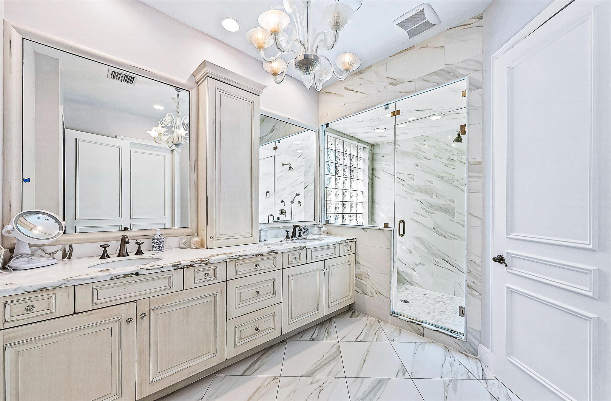 DOUBLE LOT – Situated in the prestigious Admirals Cove, this property stands as a rare gem, encompassing one of the few double lots available. It presents an exquisite setting, featuring serene and private pool and patios, seamlessly connecting the main residence and guest house. The main house is a sanctuary of luxury, hosting a grand master suite adorned with marble finishes, spacious walk-in closets, a jacuzzi tub, and a shower. It also includes two guest rooms, each with their own private bathrooms, a magnificent great room, and an office space that offers flexibility as a convertible fifth bedroom with an adjoining full bath. The kitchen is a masterpiece of design, equipped with granite countertops and custom wood cabinetry.