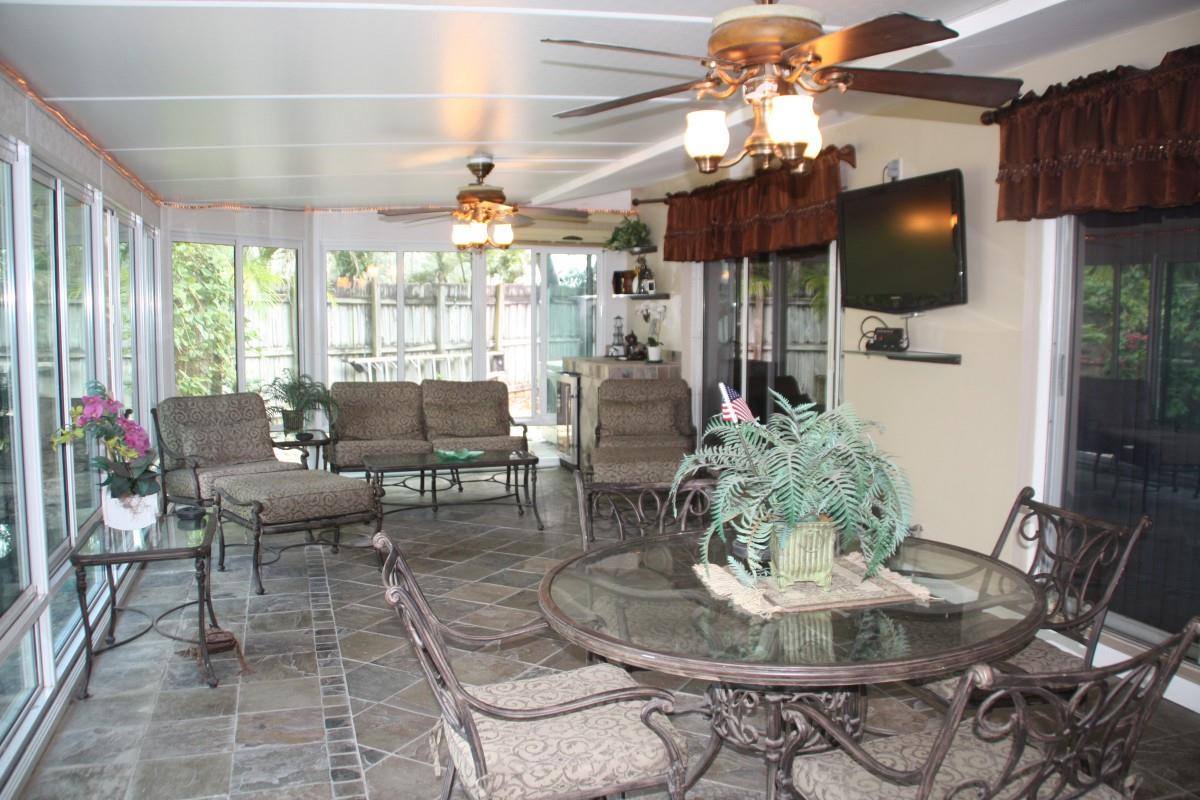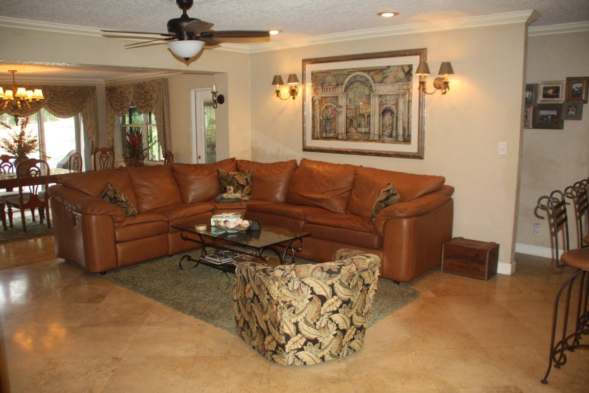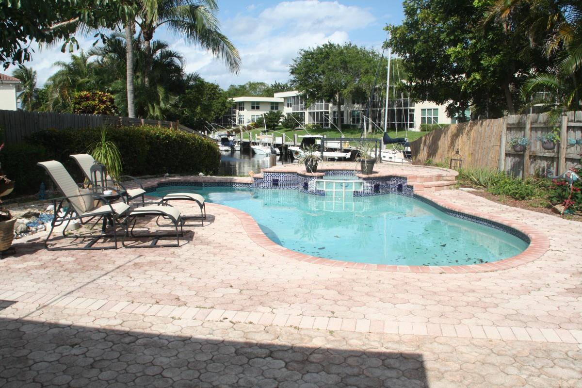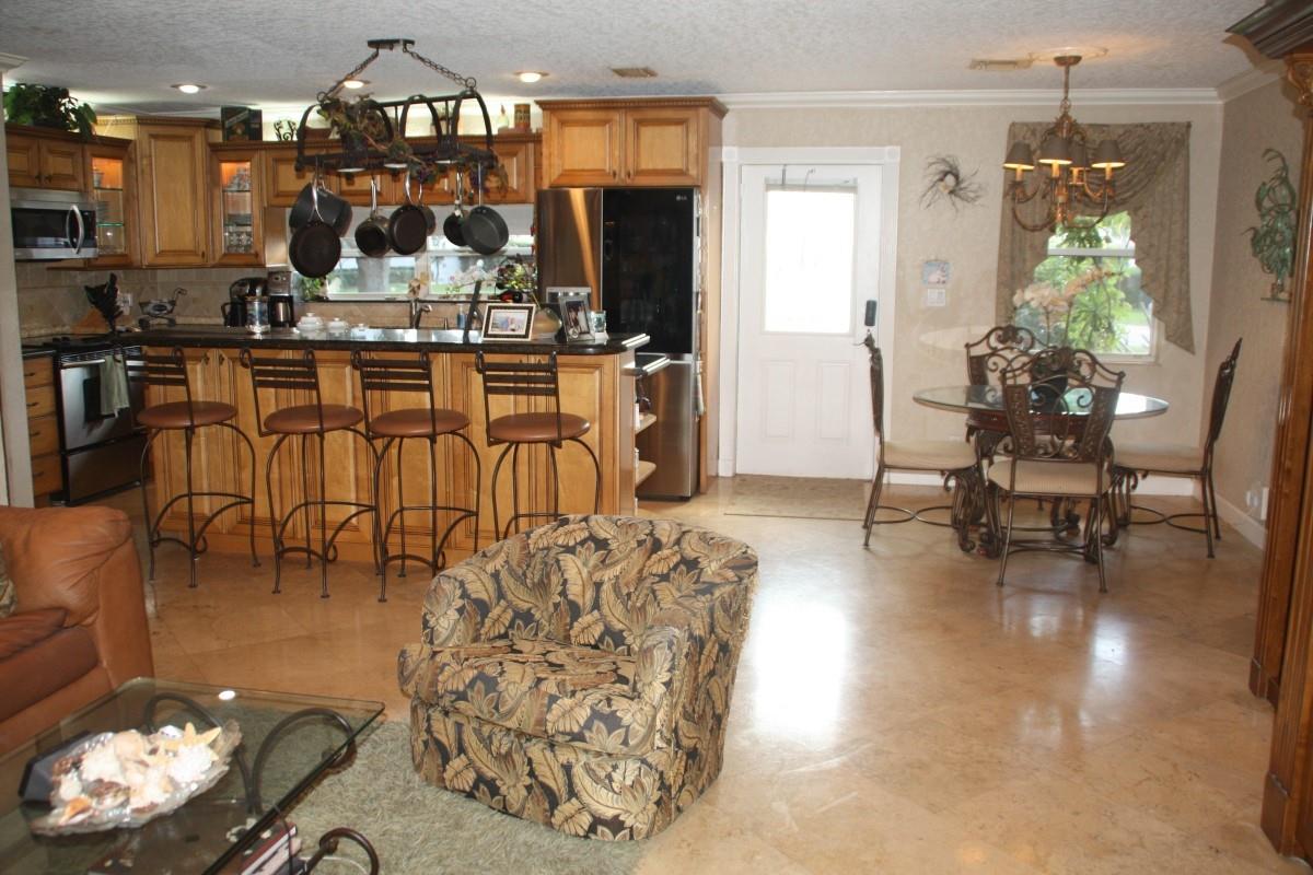 Ocean Access, No Fixed Bridges in ground pool with Tropical setting. Upgraded interior with travertine tile throughout. Crown Molding, New Barrel tile roof 2 yrs. Extra large master suite.2 closets.. Large Master Bath with Jacuzzi tub & Separate Shower. Permitted Glassed Sunroom with separate A/C 392 SF, Large Custom Wall unit in living area. Solid Wood Kitchen cabinets with extra storage in island. Granite counters, Refridge & Microwave 6 months. Dishwasher 3 yrs. Water heater & Central A/C 3yrs. Dock was replaced in 2019. Hurricane Shutters.