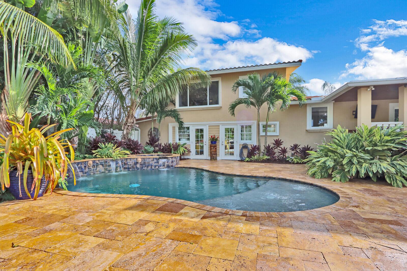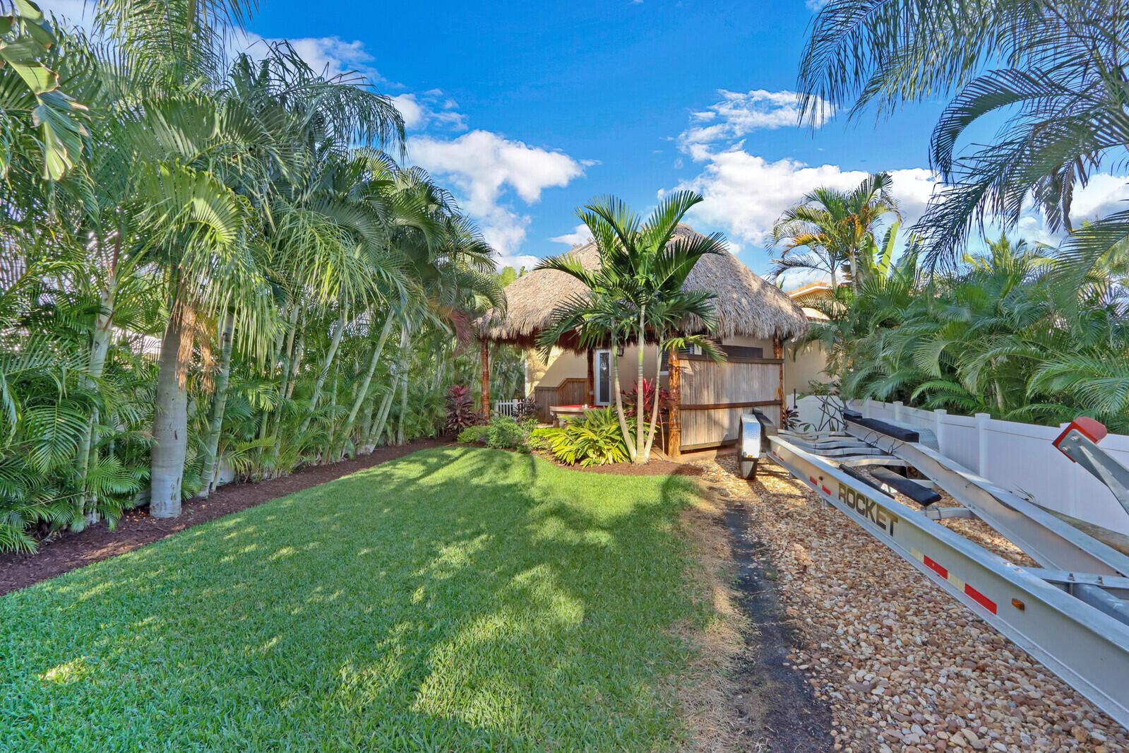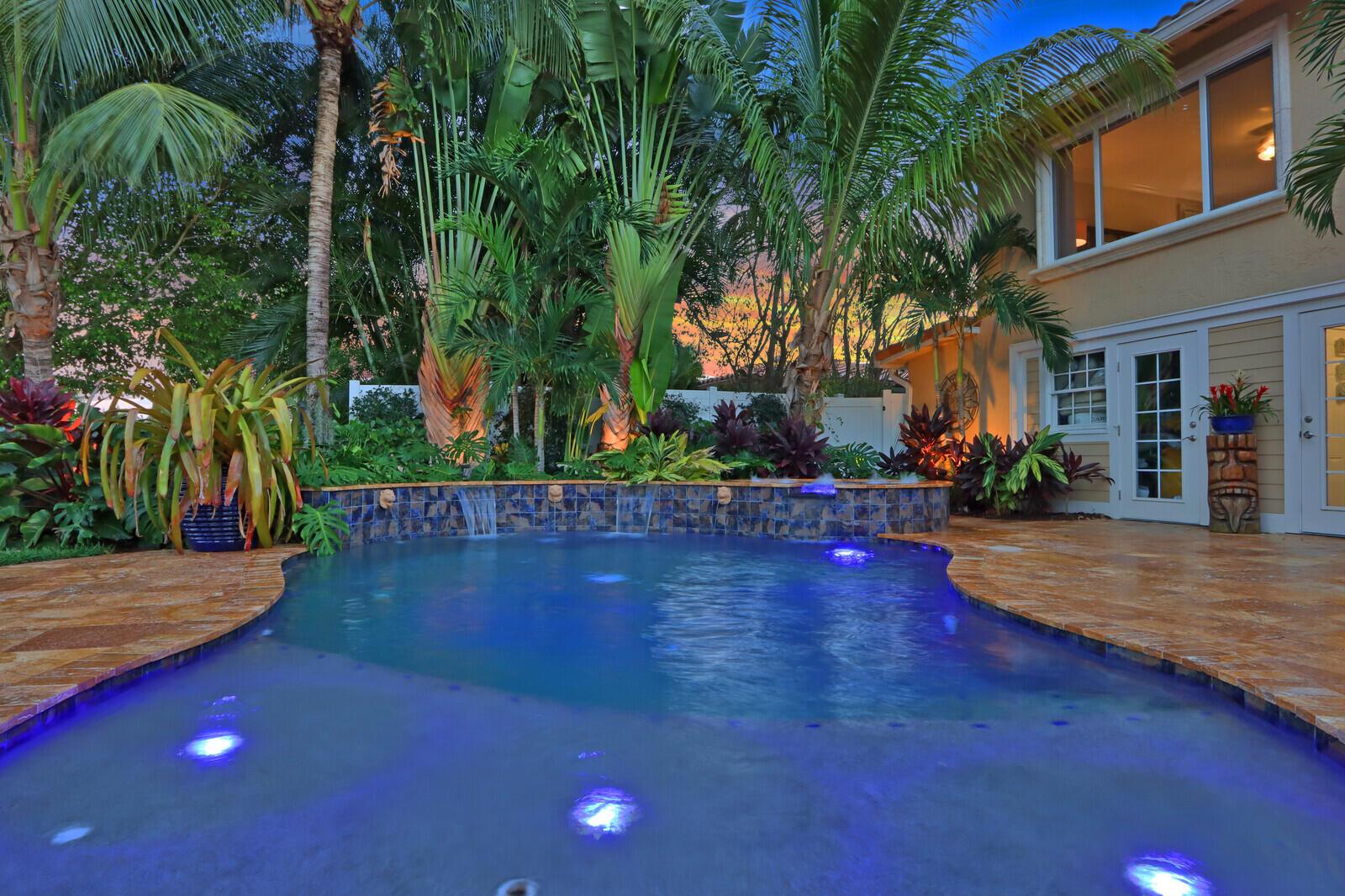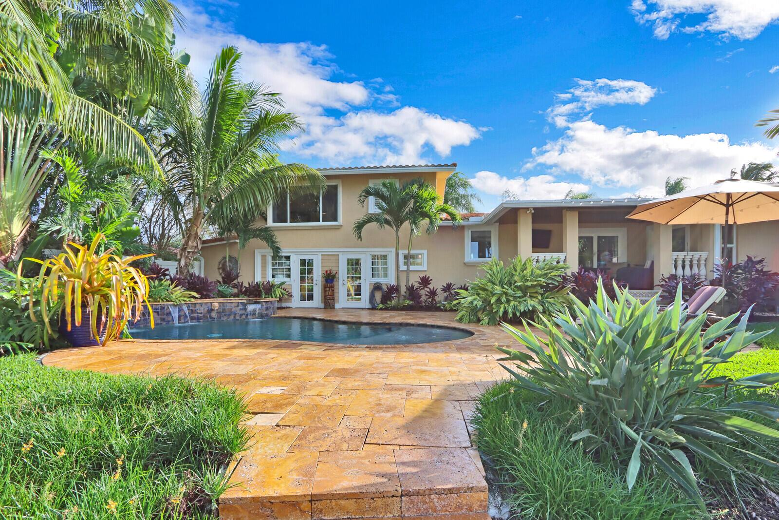 Welcome to your serene waterfront oasis! This exquisitely remodeled home, available furnished or unfurnished, offers an unparalleled living experience. With an expansive 2,400 sq ft layout featuring 3 bedrooms, 3 full bathrooms and an office, this home is a testament to modern living. The heart of this residence is its breathtaking exterior, a beautiful heated pool and hot tub surrounded by professional landscaping invites serene moments, while the private dock with lift beckons boating enthusiasts with no fixed bridges. Imagine docking your boat or parking your RV right on your property, the ultimate convenience. Nestled in a prime location, you’re just minutes from the beach, the best restaurants and all the shopping PBG has to offer! Including a tiki bar w a pool table, it’s perfect!