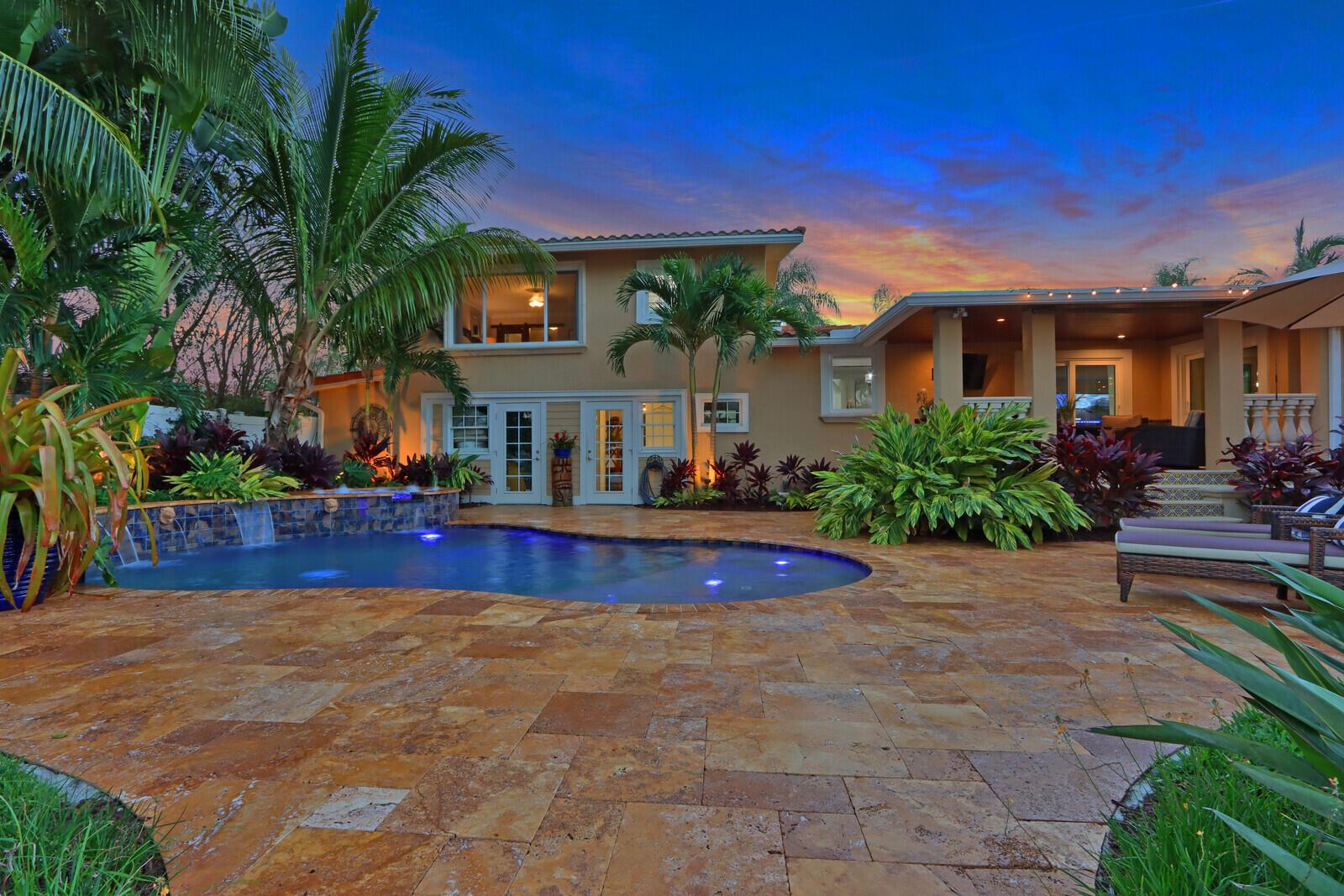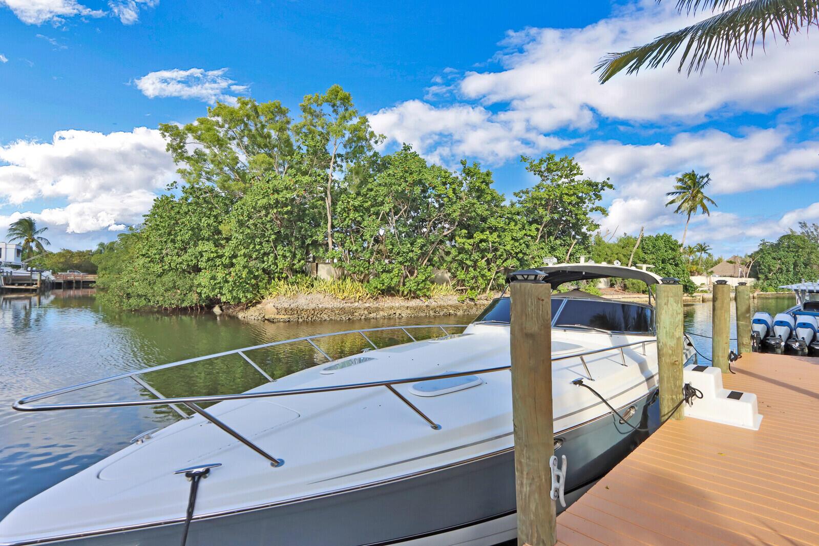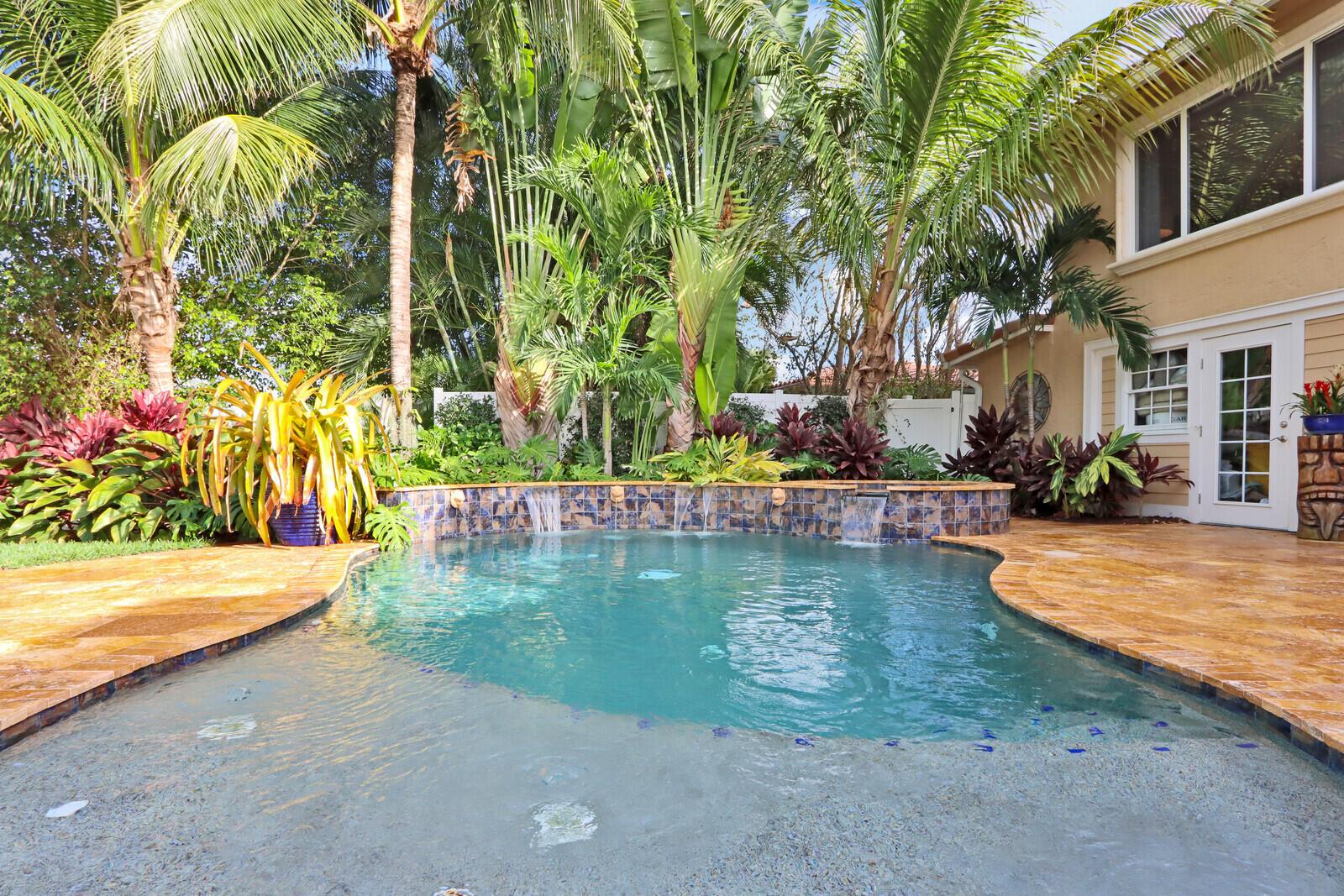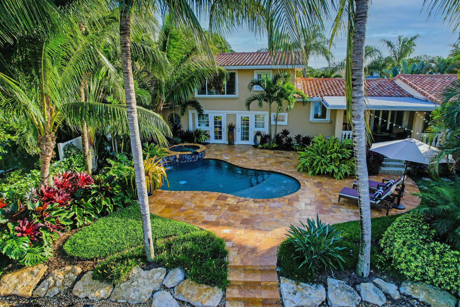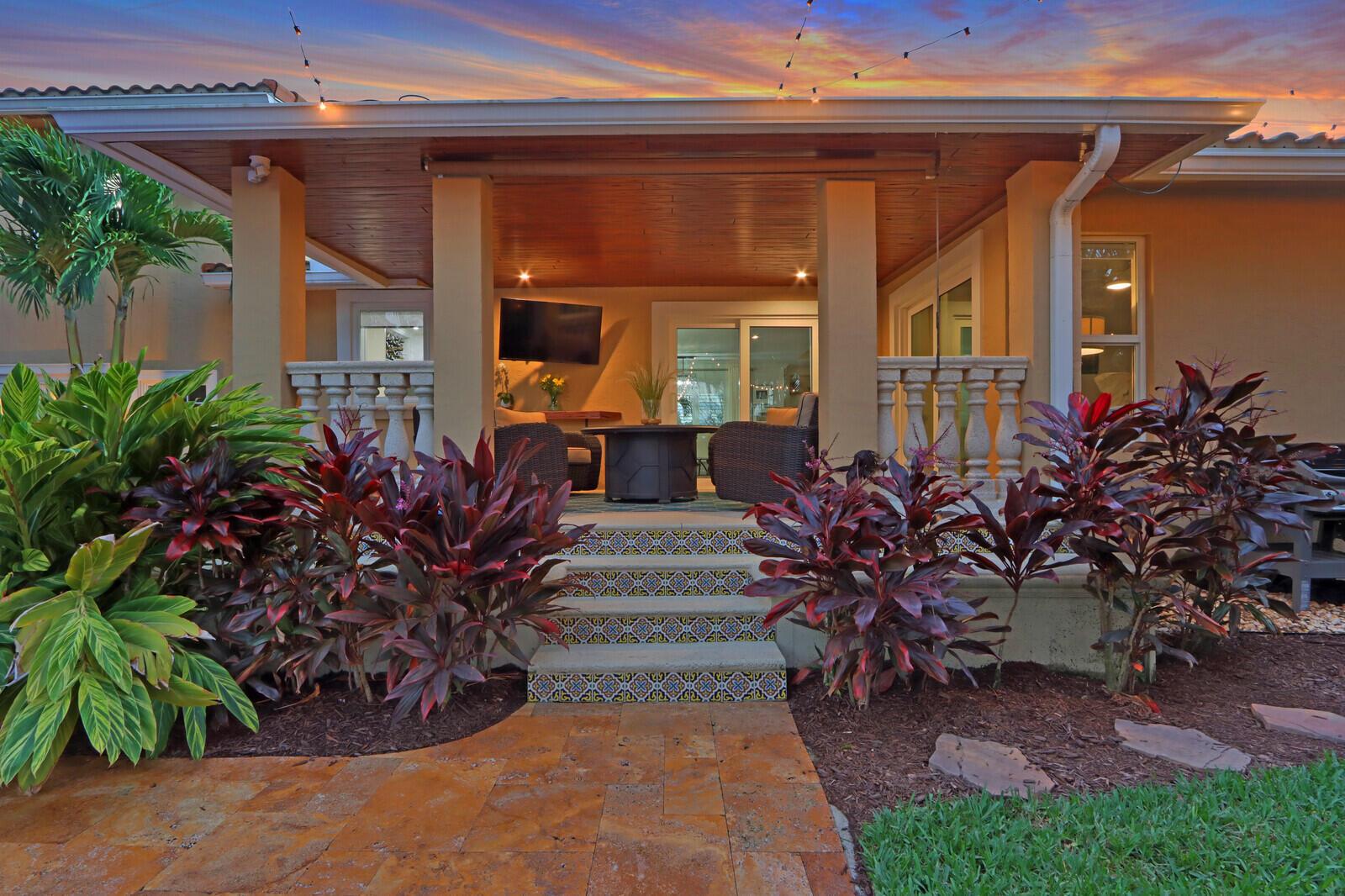 Welcome to your serene waterfront oasis! This exquisitely remodeled home, available furnished or unfurnished, offers an unparalleled living experience. With an expansive 2,400 sq ft layout featuring 3 bedrooms, 3 full bathrooms and an office, this home is a testament to modern living. The heart of this residence is its breathtaking exterior, a beautiful heated pool and hot tub surrounded by professional landscaping invites serene moments, while the private dock with lift beckons boating enthusiasts with no fixed bridges. Imagine docking your boat or parking your RV right on your property, the ultimate convenience. Nestled in a prime location, you’re just minutes from the beach, the best restaurants and all the shopping PBG has to offer! Including a tiki bar w a pool table, it’s perfect!