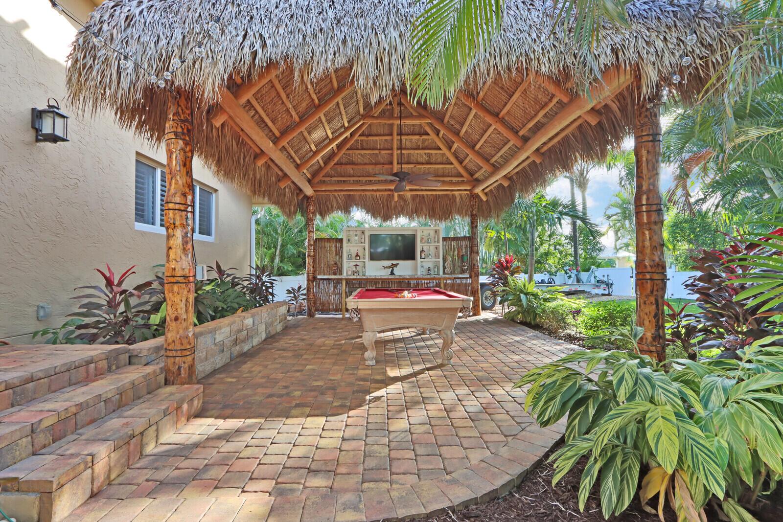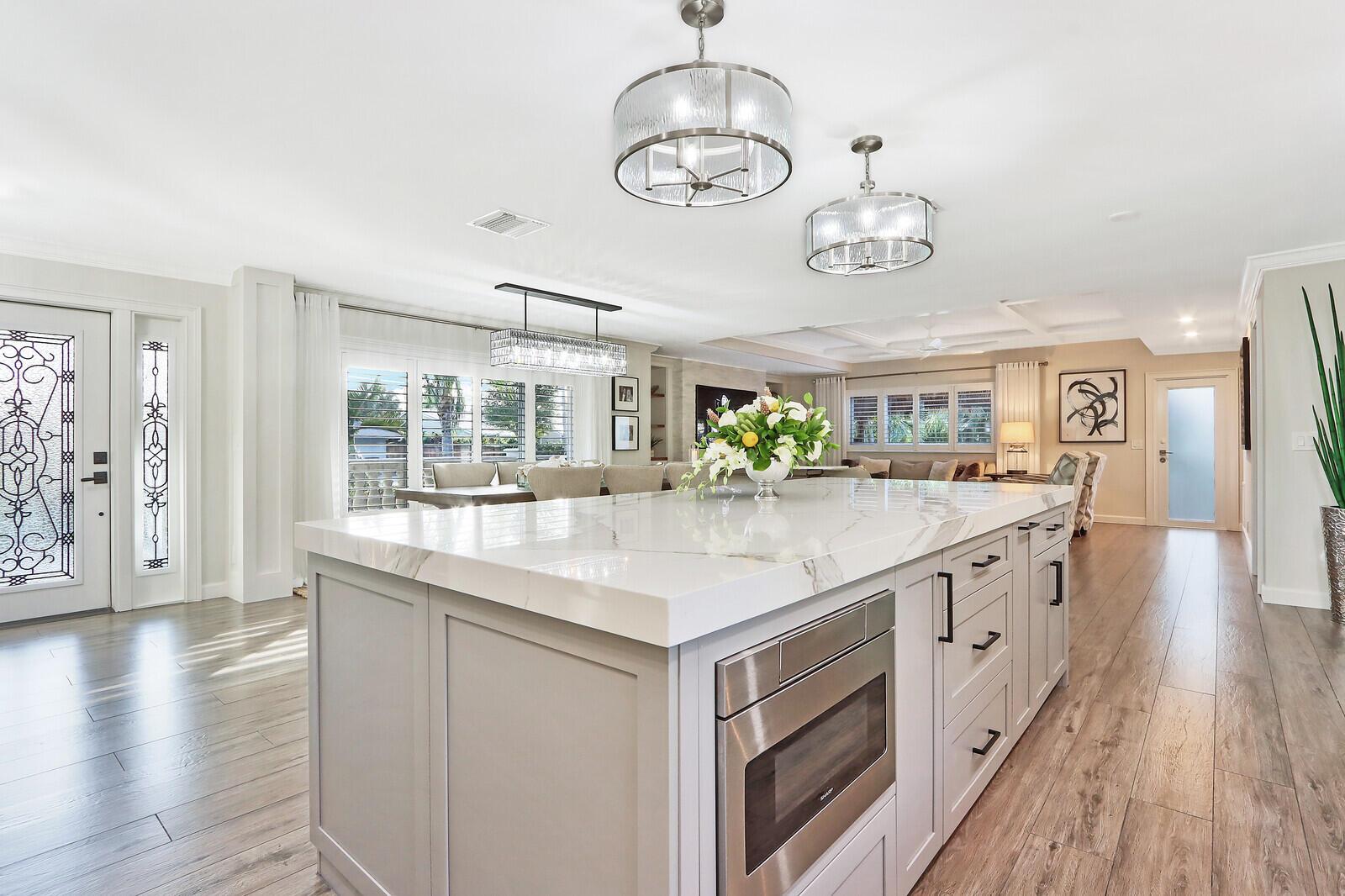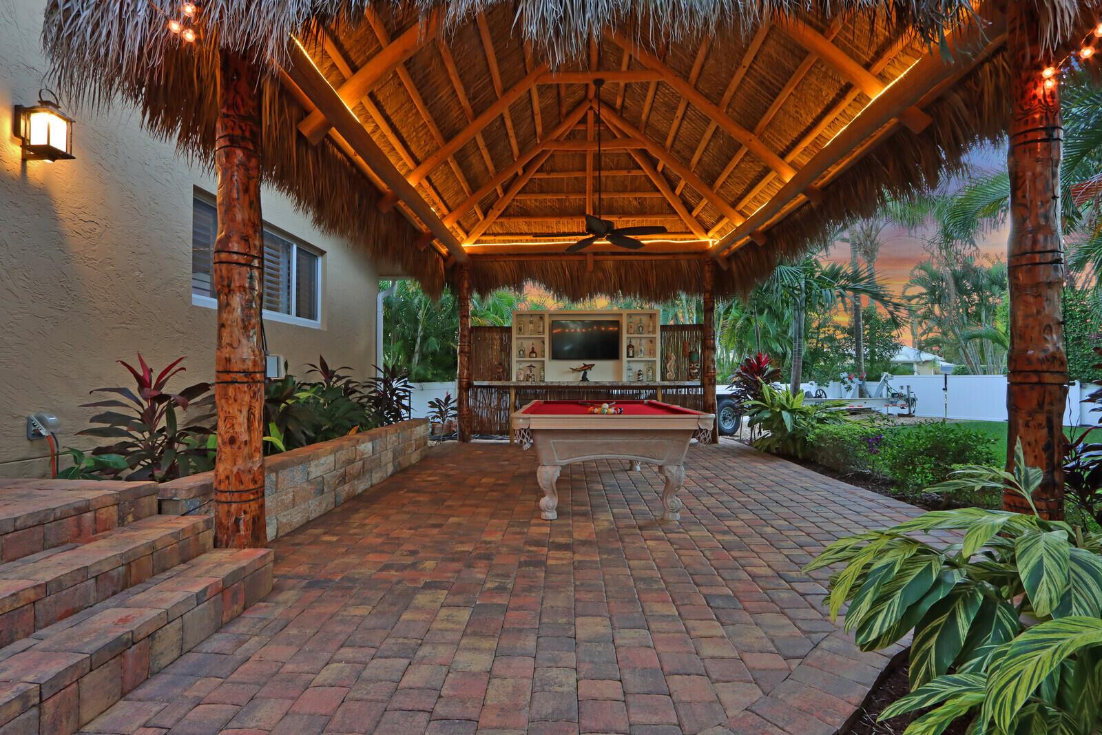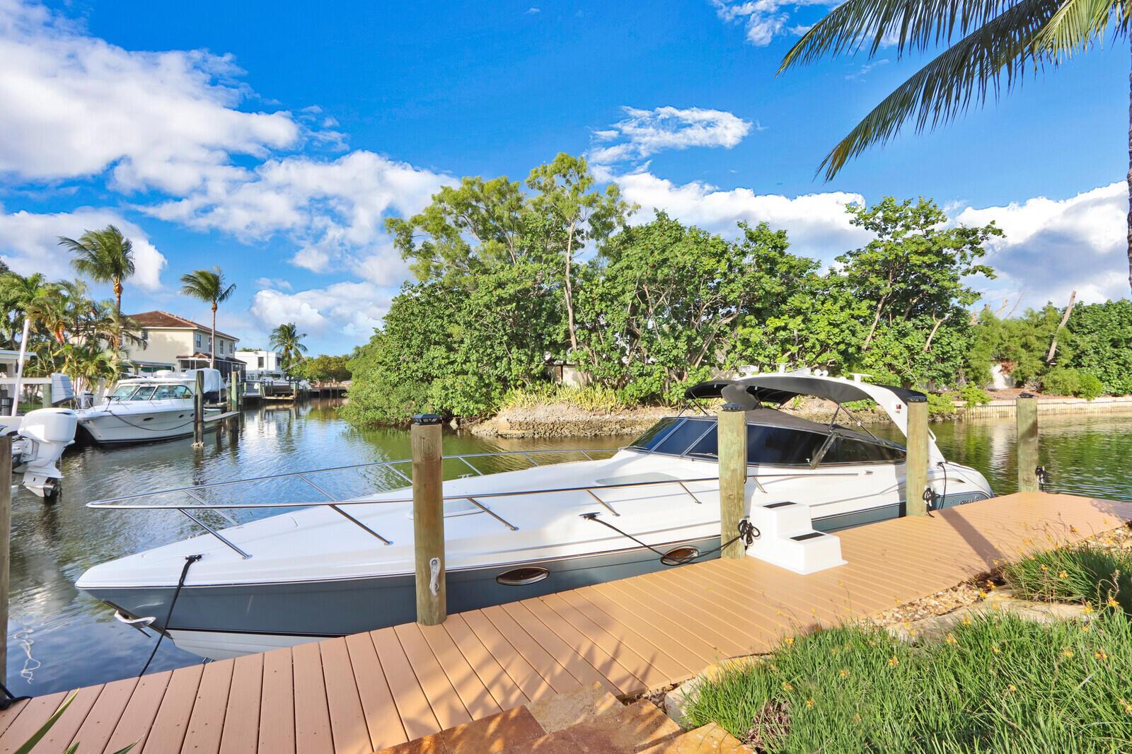 Welcome to your serene waterfront oasis! This exquisitely remodeled home, available furnished or unfurnished, offers an unparalleled living experience. With an expansive 2,400 sq ft layout featuring 3 bedrooms, 3 full bathrooms and an office, this home is a testament to modern living. The heart of this residence is its breathtaking exterior, a beautiful heated pool and hot tub surrounded by professional landscaping invites serene moments, while the private dock with lift beckons boating enthusiasts with no fixed bridges. Imagine docking your boat or parking your RV right on your property, the ultimate convenience. Nestled in a prime location, you’re just minutes from the beach, the best restaurants and all the shopping PBG has to offer! Including a tiki bar w a pool table, it’s perfect!