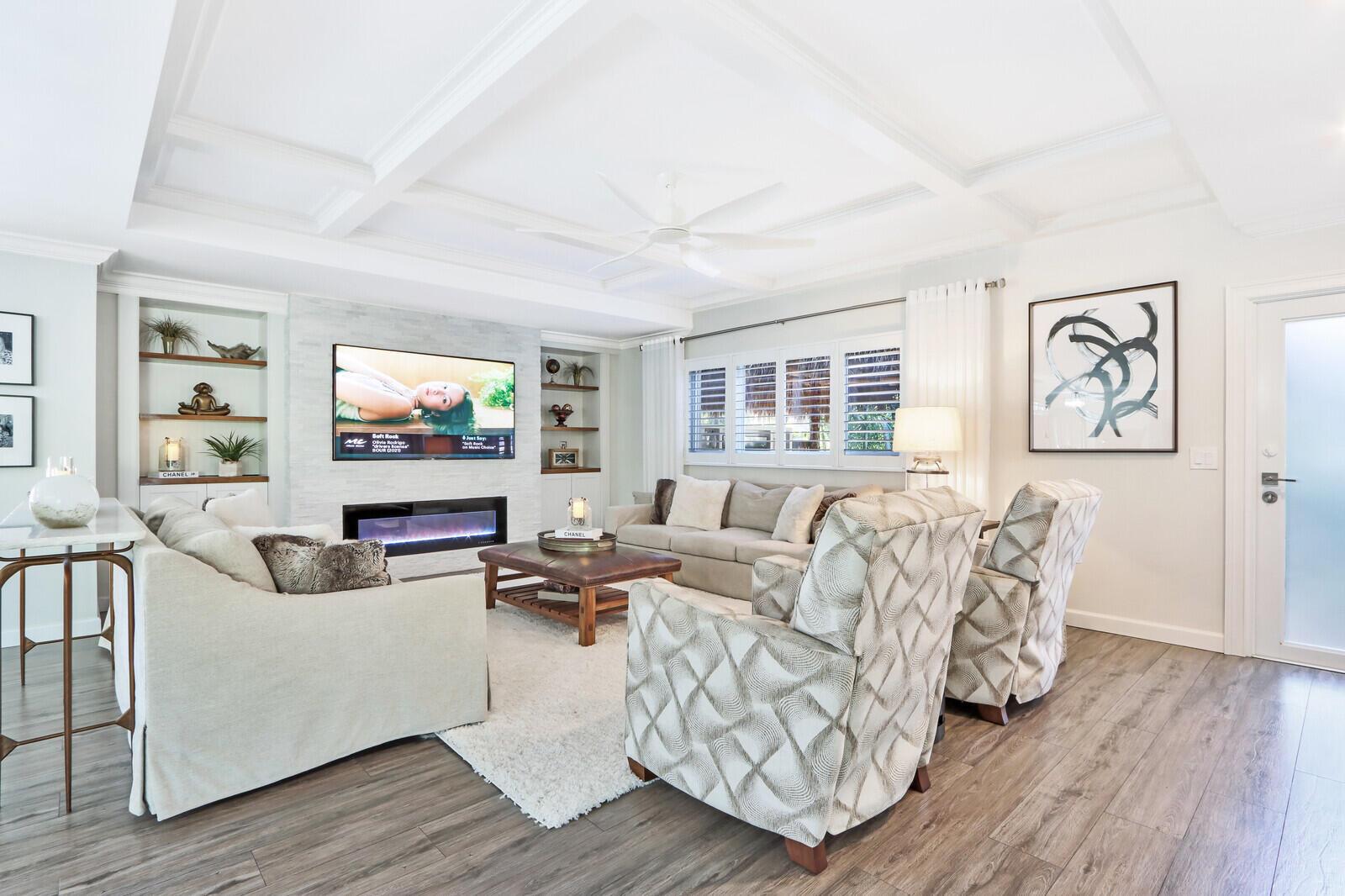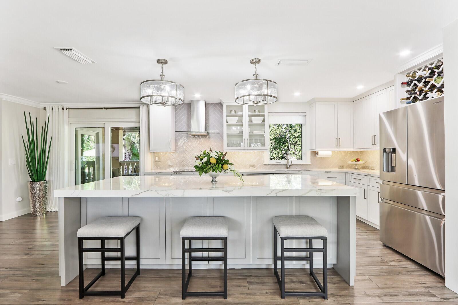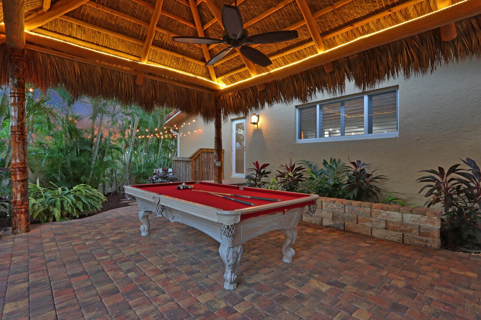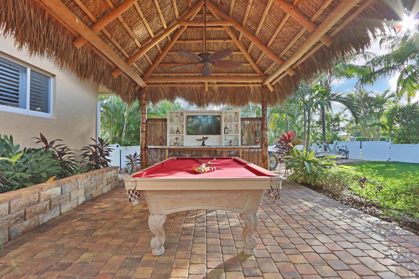 Welcome to your serene waterfront oasis! This exquisitely remodeled home, available furnished or unfurnished, offers an unparalleled living experience. With an expansive 2,400 sq ft layout featuring 3 bedrooms, 3 full bathrooms and an office, this home is a testament to modern living. The heart of this residence is its breathtaking exterior, a beautiful heated pool and hot tub surrounded by professional landscaping invites serene moments, while the private dock with lift beckons boating enthusiasts with no fixed bridges. Imagine docking your boat or parking your RV right on your property, the ultimate convenience. Nestled in a prime location, you’re just minutes from the beach, the best restaurants and all the shopping PBG has to offer! Including a tiki bar w a pool table, it’s perfect!