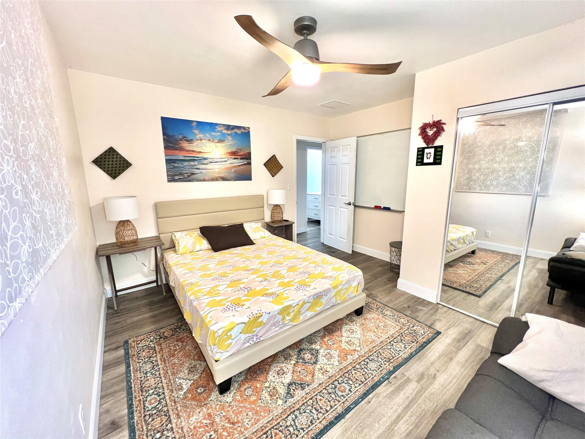 The spacious backyard includes a new Endless Swim Pool with advanced swim technology and built-in hydrotherapy jets in the pool and spa. Towering palms, a mature tree, and an outdoor kitchenette with BBQ make it ideal for relaxing or entertaining. Walking distance to shopping, restaurants, schools, and more. Minutes to beaches. Airbnb turnkey ready for investors or a private retreat.