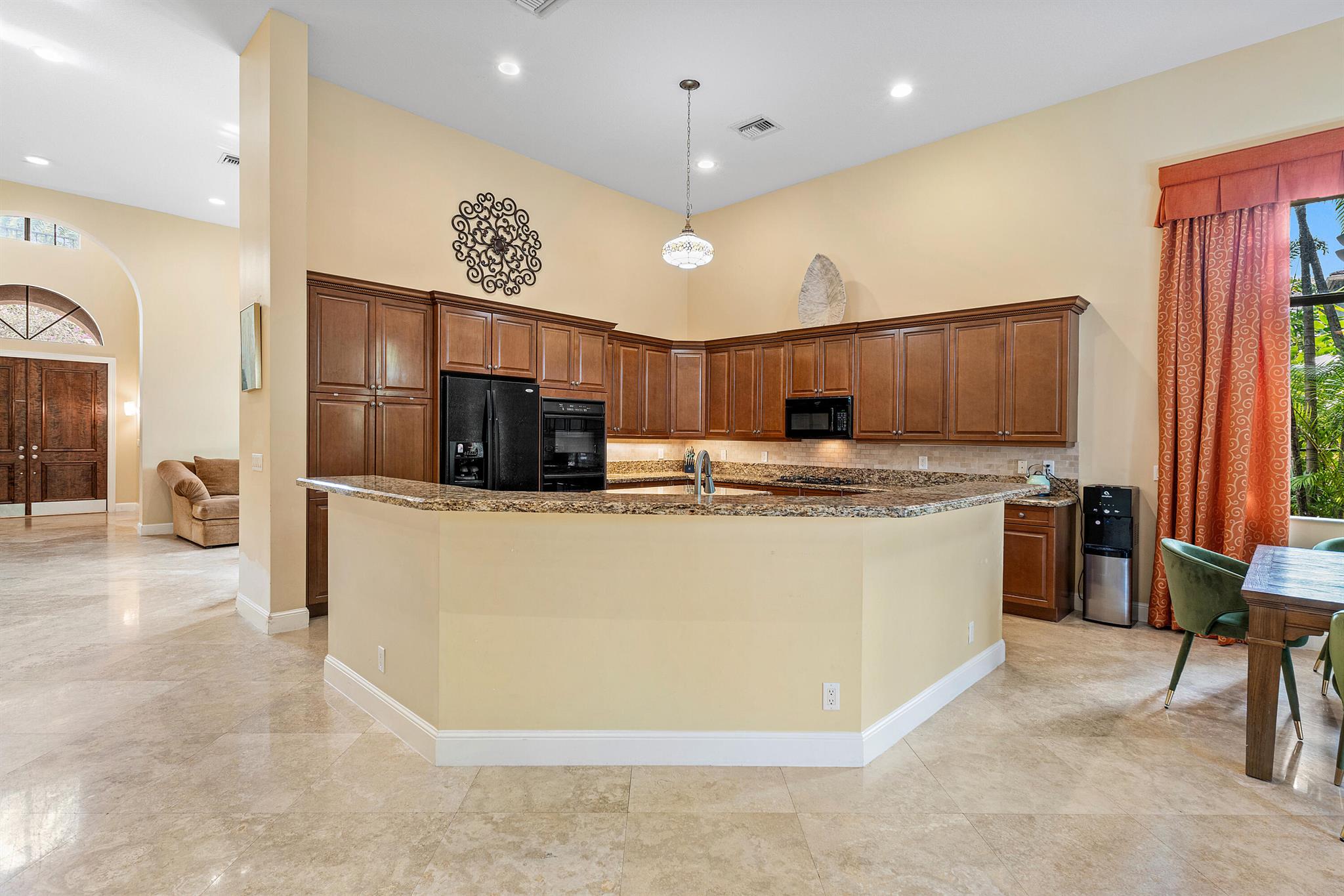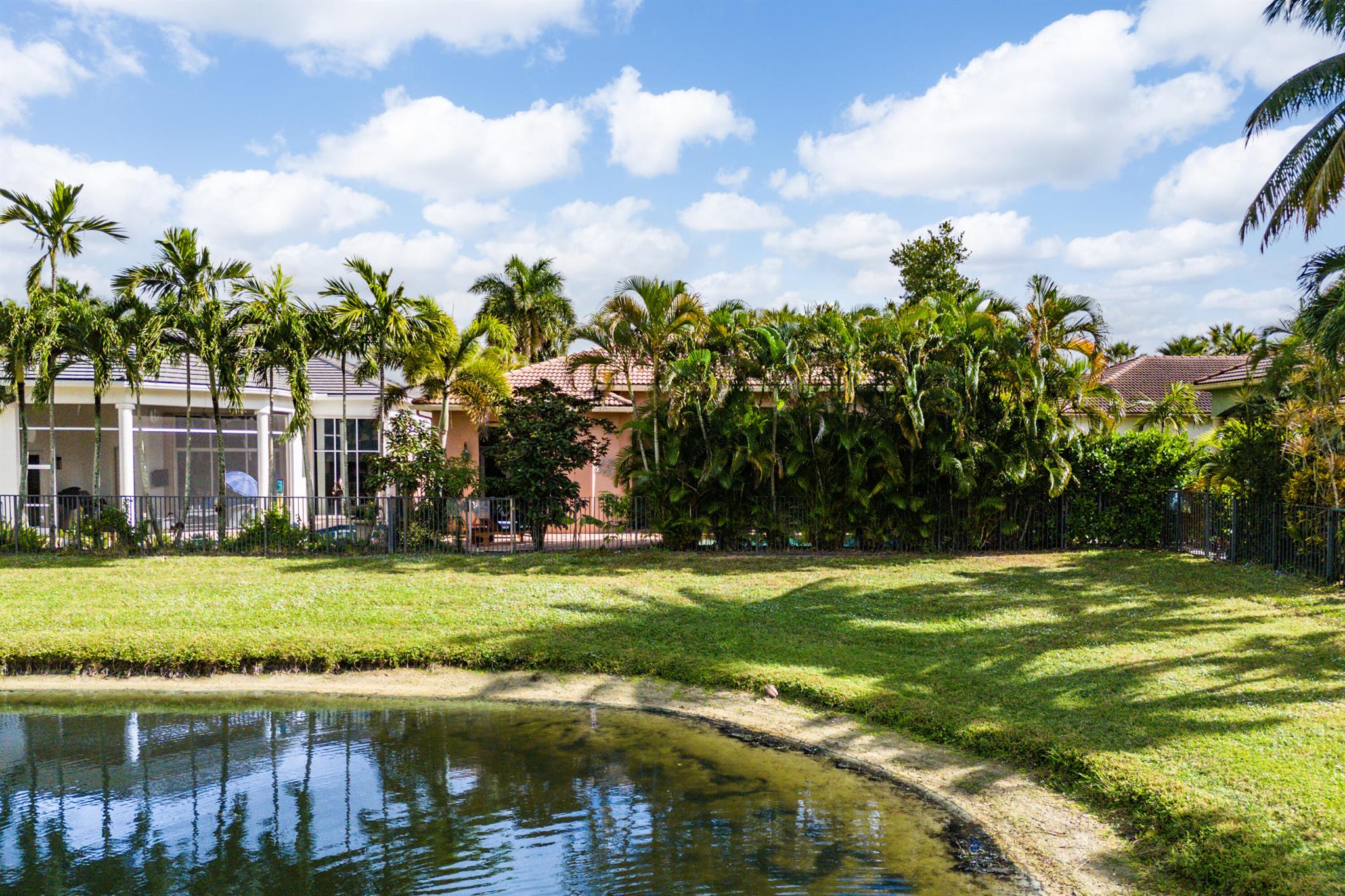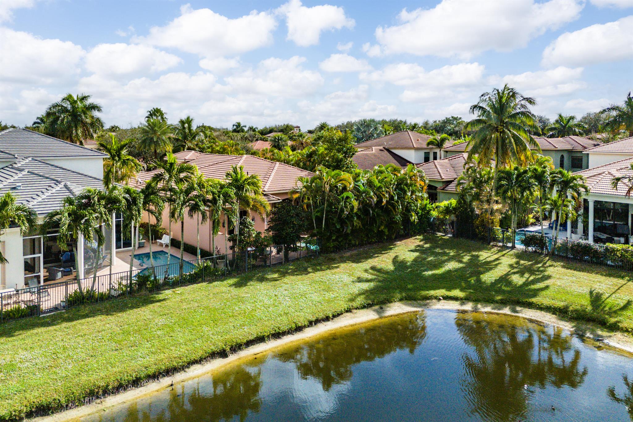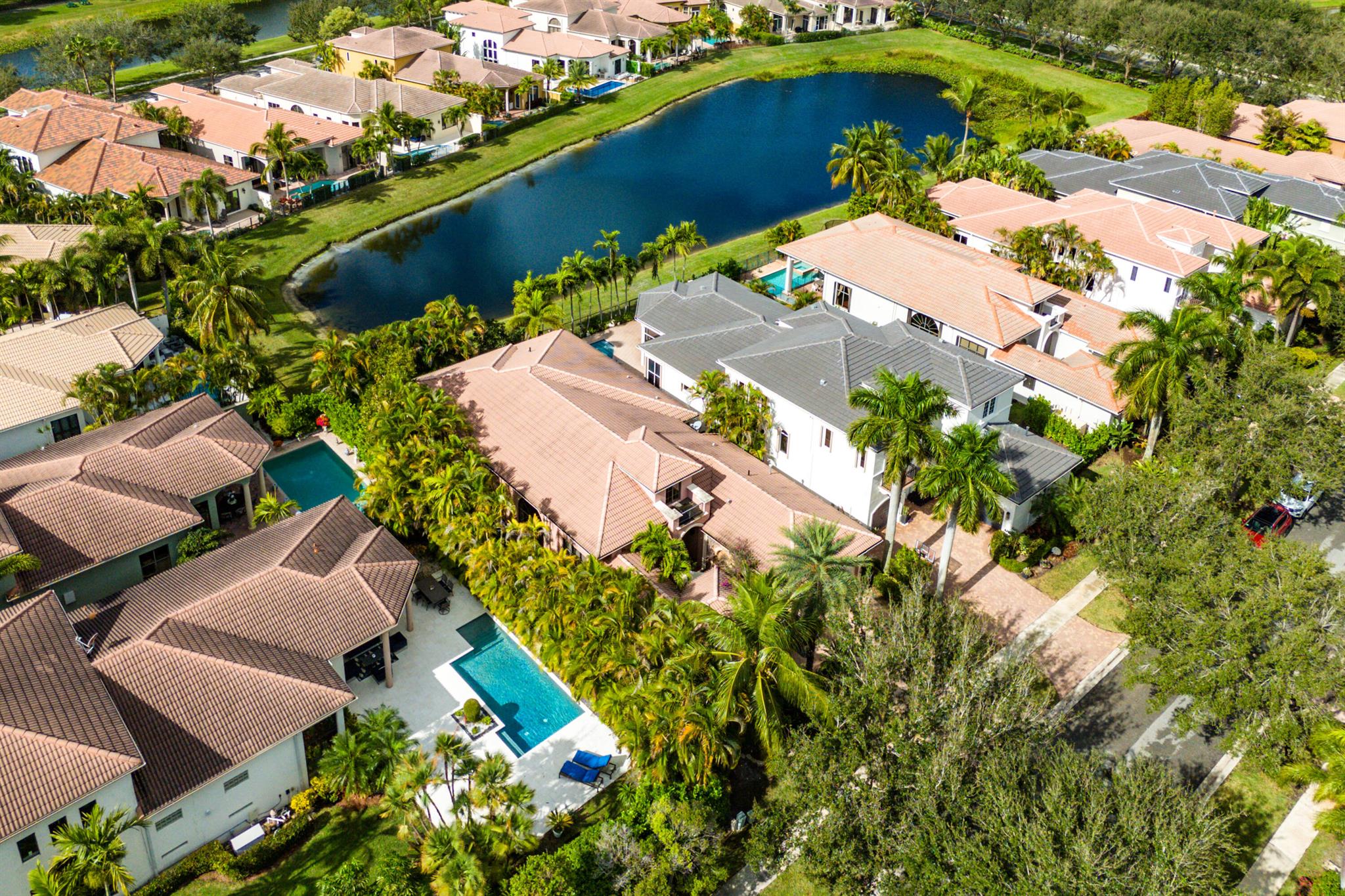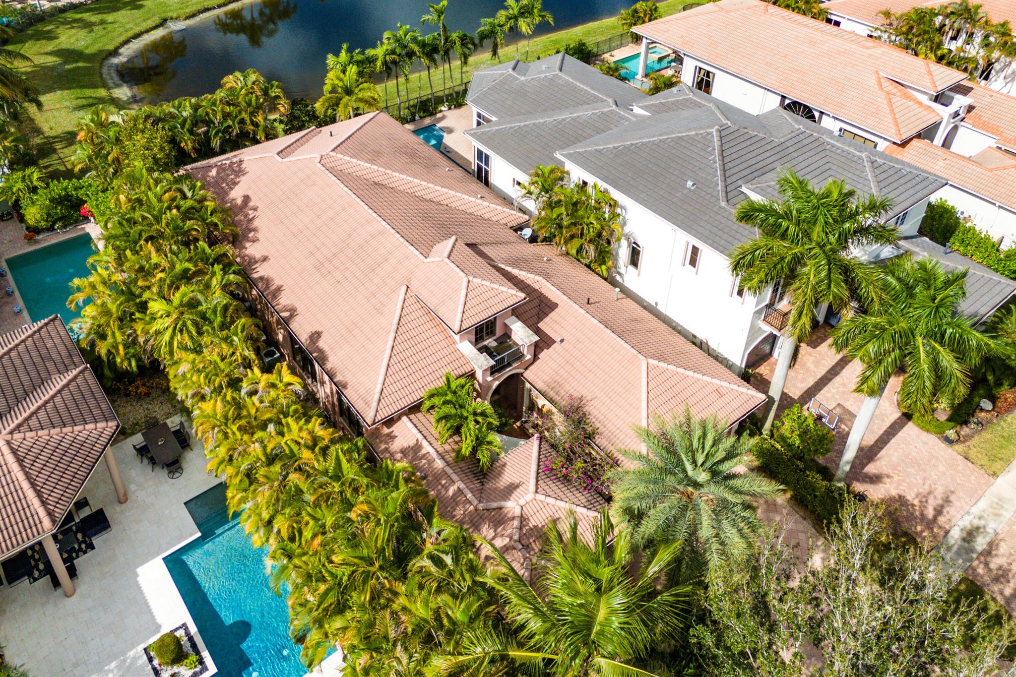 Extremely Motivated Seller!!!! This charming Martinique is on a prime private lake lot and features 3 en-suite bedrooms plus a library/4th bedroom, 3 full and 1 half baths – all on one single level, w/ a triple-split floor plan including a private guest house. Highlights include marble floors thru-out the main living areas, wood floors in the office, a gourmet chef’s kitchen with wood cabinetry, granite countertops, & is open to a spacious family room. Designer appointments include architectural millwork, light fixtures, and artistic details. The primary features dual walk-in closets, and a luxurious primary bath w/ separate vanities including a makeup vanity. With a heated pool surrounded by tropical landscaping, enjoy unmatched privacy and style in this lakefront gem!