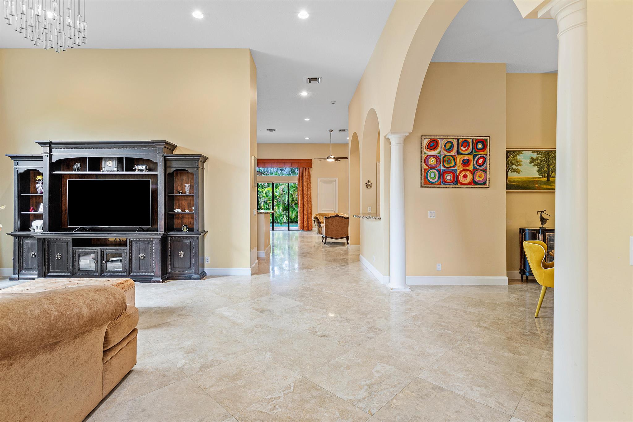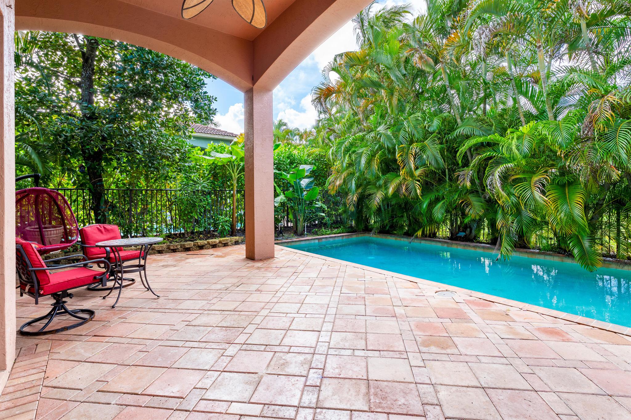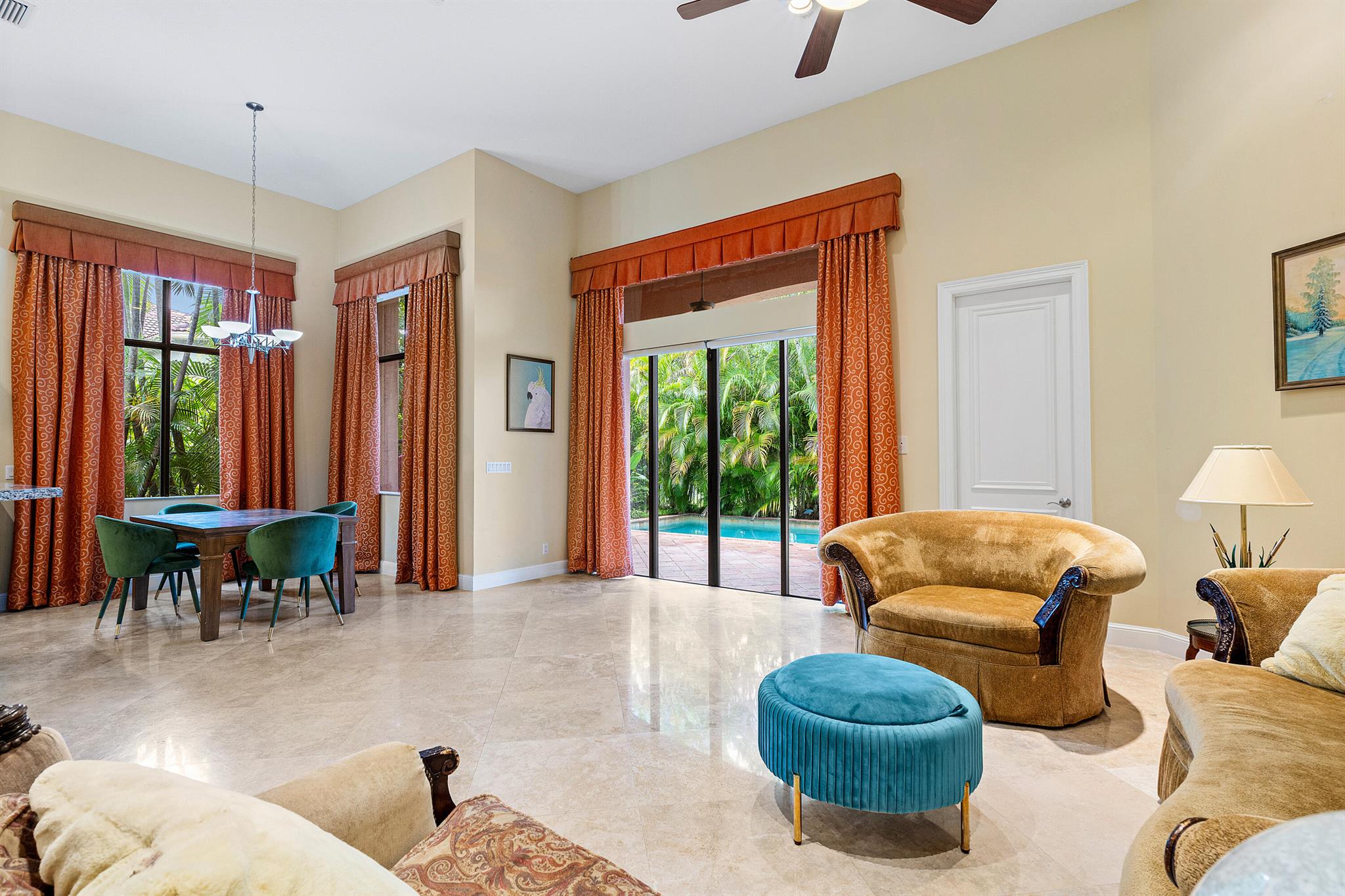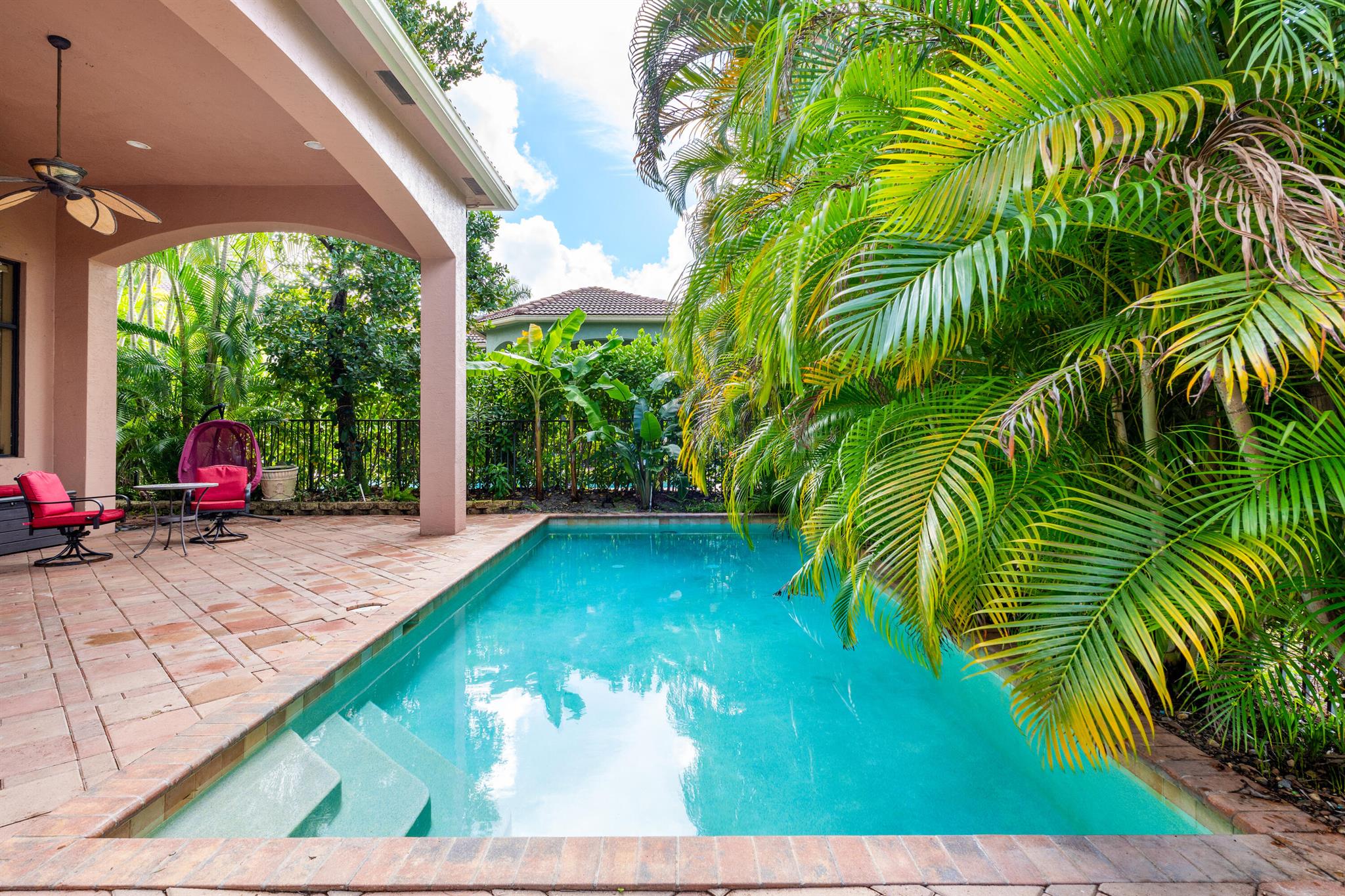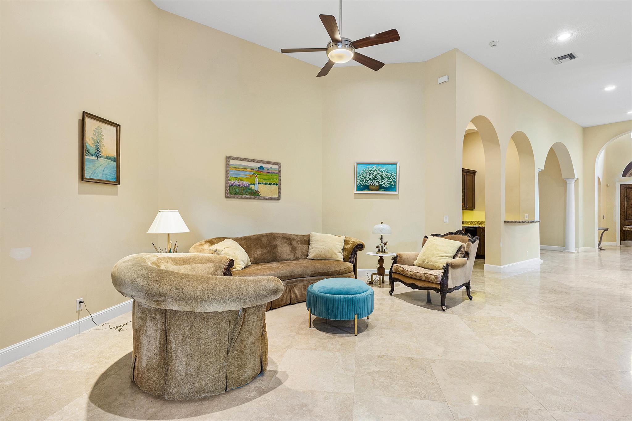 Extremely Motivated Seller!!!! This charming Martinique is on a prime private lake lot and features 3 en-suite bedrooms plus a library/4th bedroom, 3 full and 1 half baths – all on one single level, w/ a triple-split floor plan including a private guest house. Highlights include marble floors thru-out the main living areas, wood floors in the office, a gourmet chef’s kitchen with wood cabinetry, granite countertops, & is open to a spacious family room. Designer appointments include architectural millwork, light fixtures, and artistic details. The primary features dual walk-in closets, and a luxurious primary bath w/ separate vanities including a makeup vanity. With a heated pool surrounded by tropical landscaping, enjoy unmatched privacy and style in this lakefront gem!