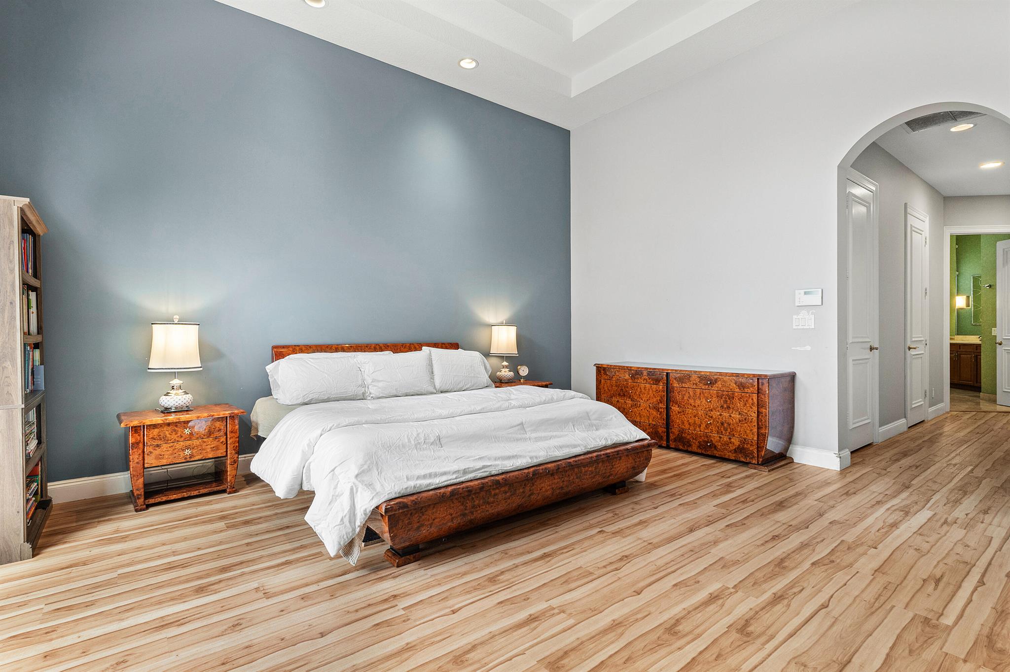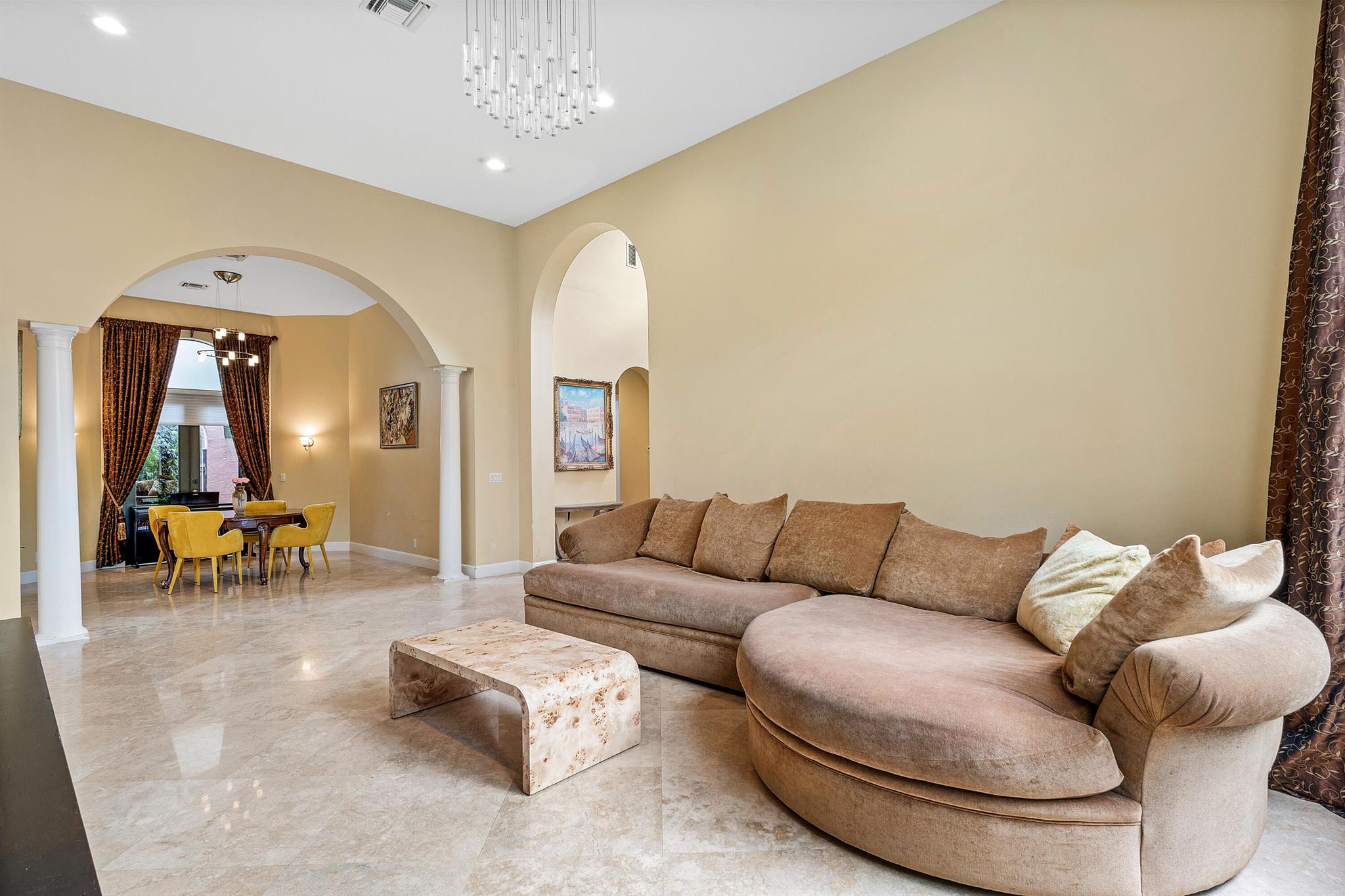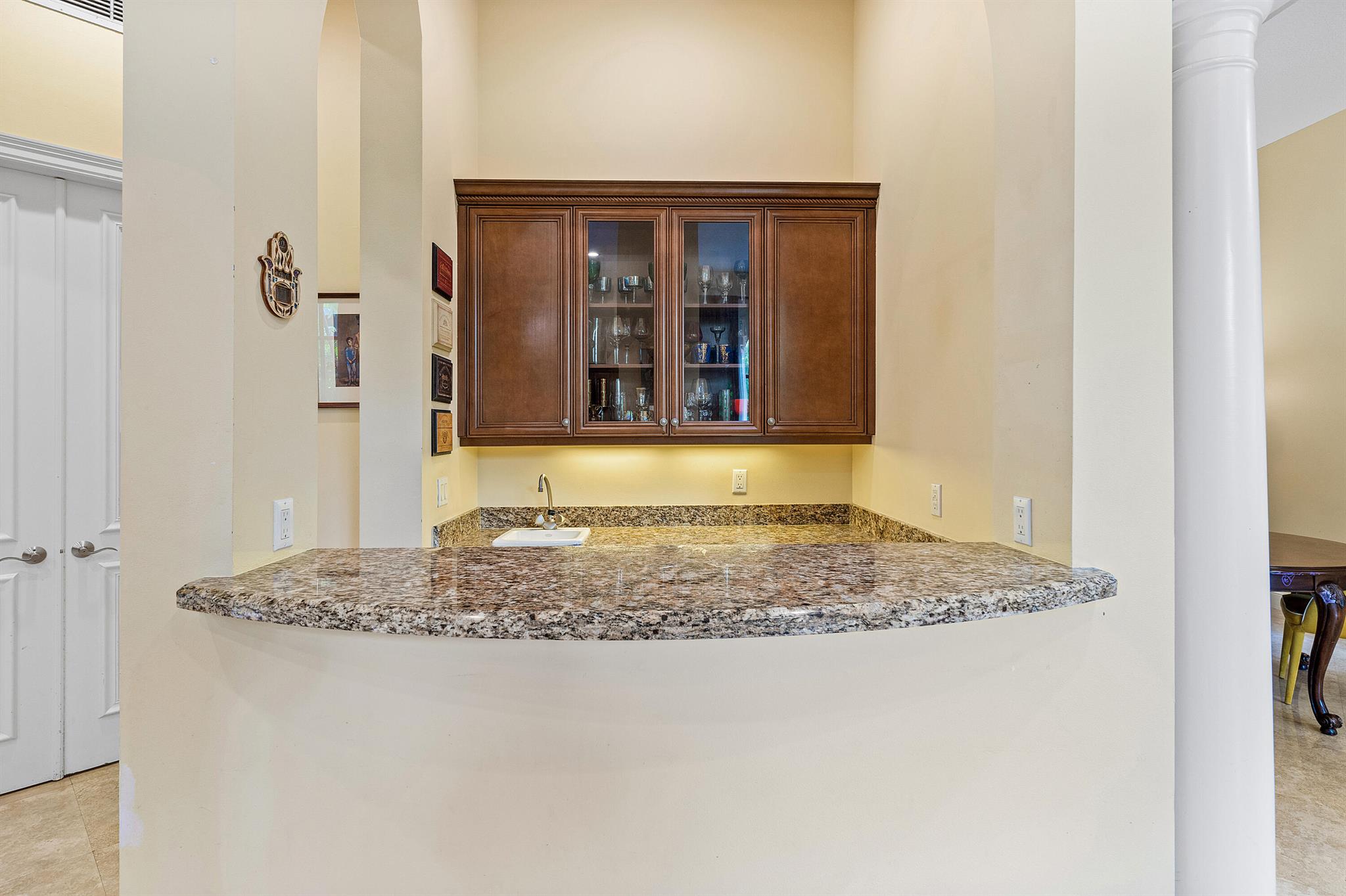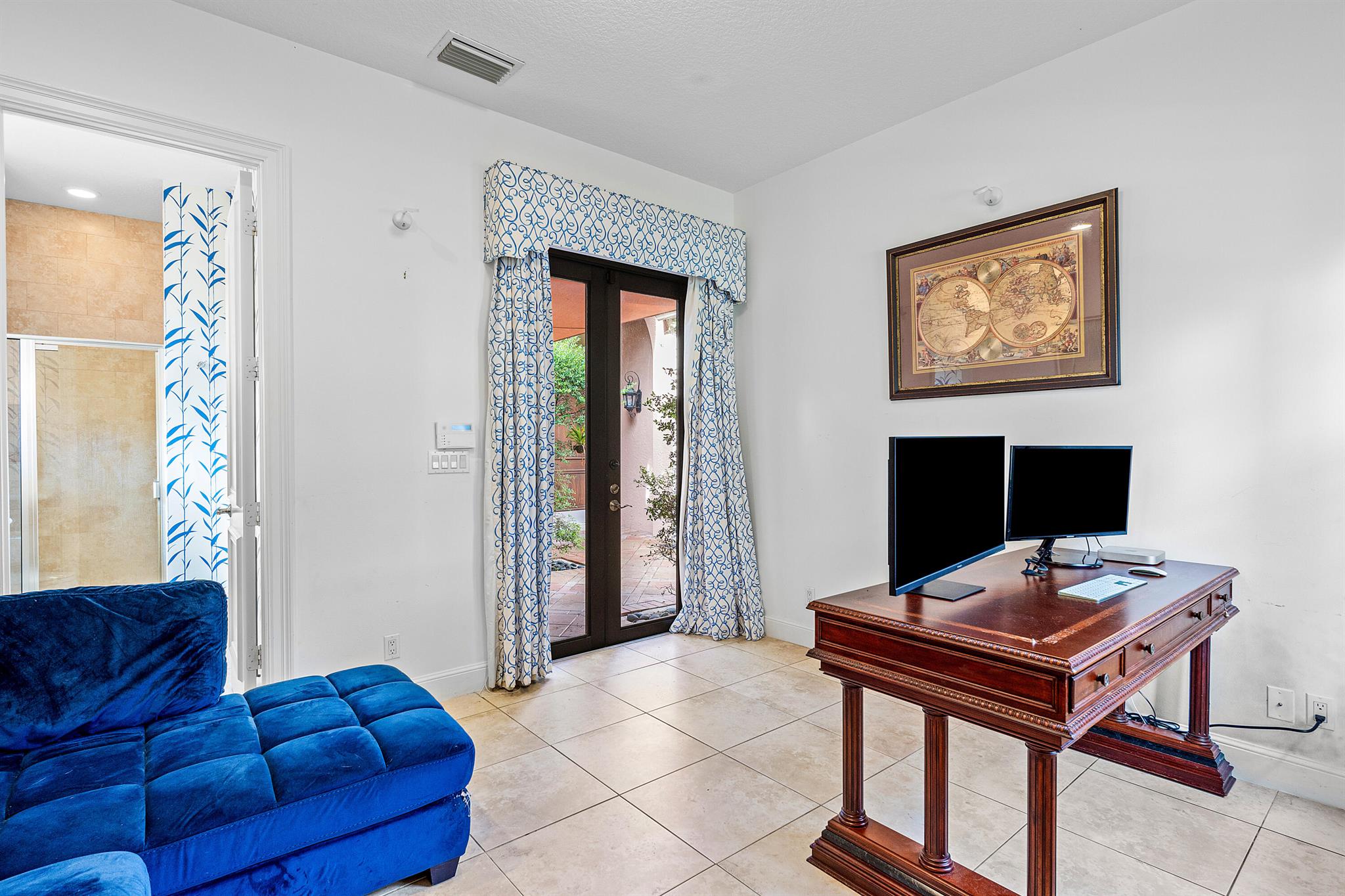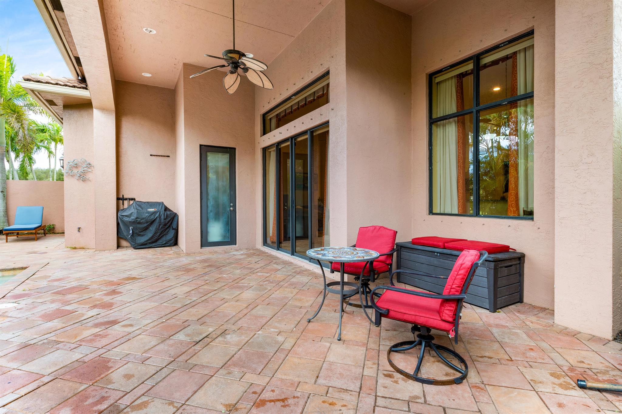 Extremely Motivated Seller!!!! This charming Martinique is on a prime private lake lot and features 3 en-suite bedrooms plus a library/4th bedroom, 3 full and 1 half baths – all on one single level, w/ a triple-split floor plan including a private guest house. Highlights include marble floors thru-out the main living areas, wood floors in the office, a gourmet chef’s kitchen with wood cabinetry, granite countertops, & is open to a spacious family room. Designer appointments include architectural millwork, light fixtures, and artistic details. The primary features dual walk-in closets, and a luxurious primary bath w/ separate vanities including a makeup vanity. With a heated pool surrounded by tropical landscaping, enjoy unmatched privacy and style in this lakefront gem!