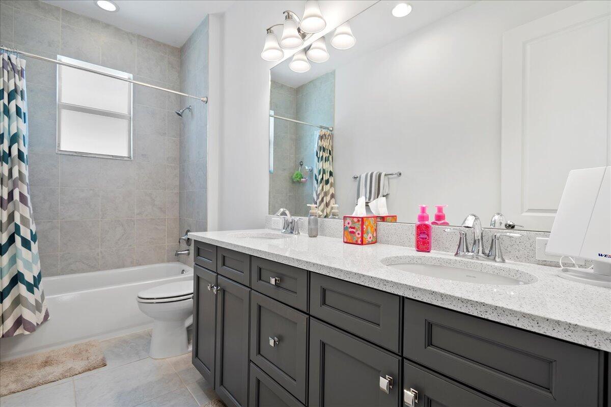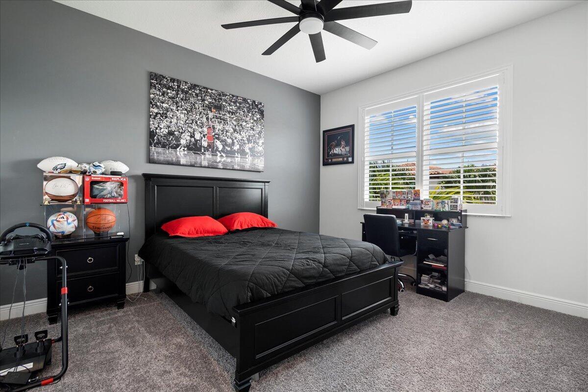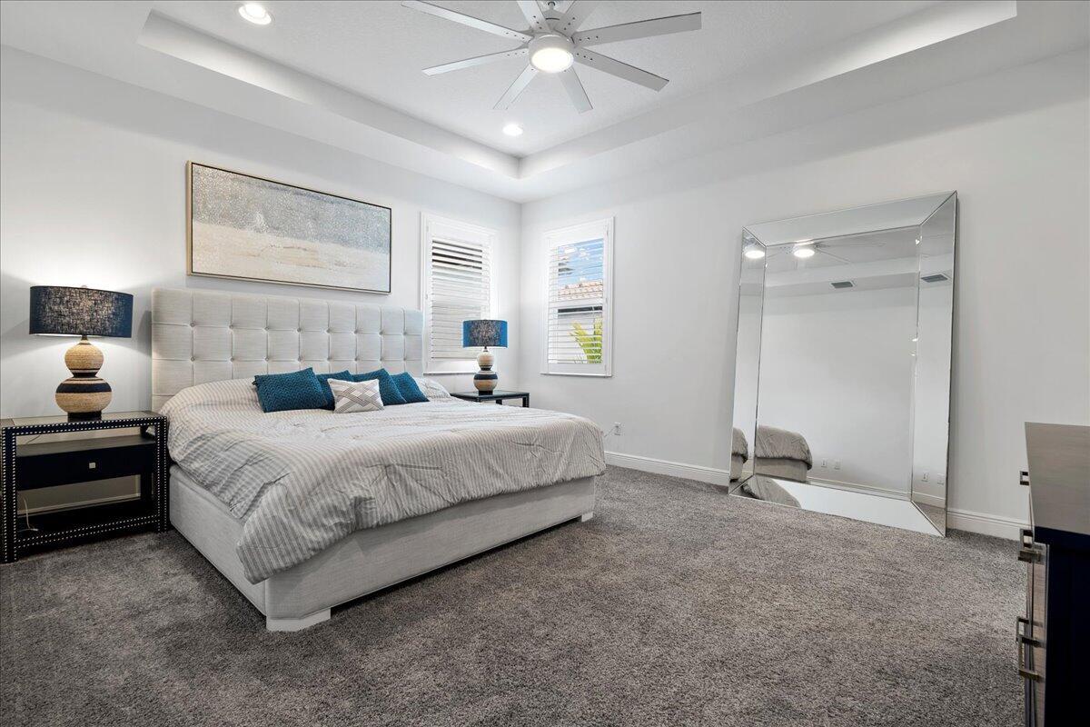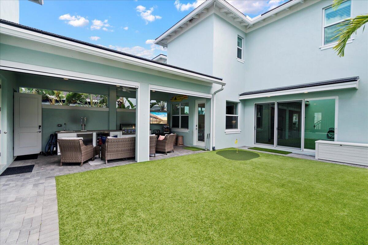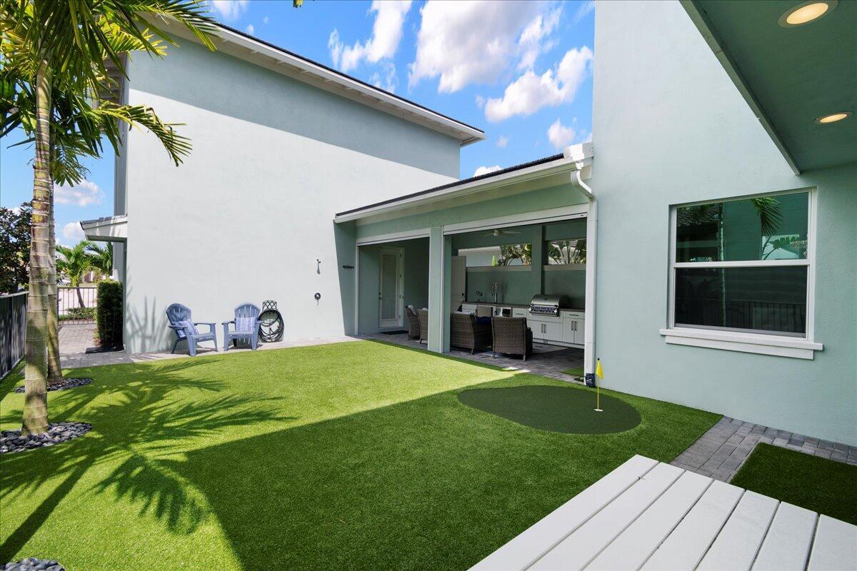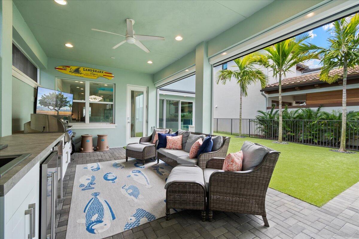 Alton Park G / Durham model home on a premium park front homesite with an impressive outdoor living space and tons of added details. Being nearly brand new with the highest levels of builder design options plus post closing customizations sets this home apart. Kitchen options include a lighted second row of glass upper cabinets, matching built in cabinet pantry doors, double oven w/ hood and upgraded cooktop, pot filler and thicker quartz double waterfall countertops. The customized outdoor space features an electric drop down screen enclosure, grill, fridge, a beer tap and a turfed yard with a mini golf green. High quality built in closets in every room, including the guest house. Shiplap walls, lighting fixtures and plantation window treatments make this home ready for an easy move in.