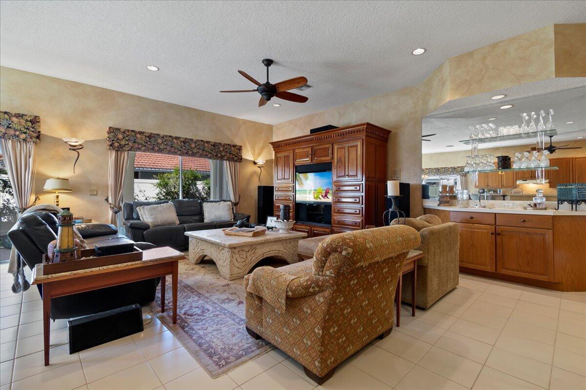 Easy to see. Able to accommodate short notice requests.This spacious 3-bedroom 2.5 bath residence boasts 2965 sf under air, offering lots of room for your family to spread out and relax. Perfect home for entertaining as the double door front entrance and foyer opens to the formal sitting room which leads through sliding glass doors to the private patio. The private patio features a lovely southwest view of the lake where spectacular sunsets are experienced on a regular basis. This home also features a comfortable family gathering room opened to a large kitchen with plenty of cabinets and counter space for prepping and serving your favorite dishes. Or serve your guests in the formal dining room which features gorgeous faux painted walls.