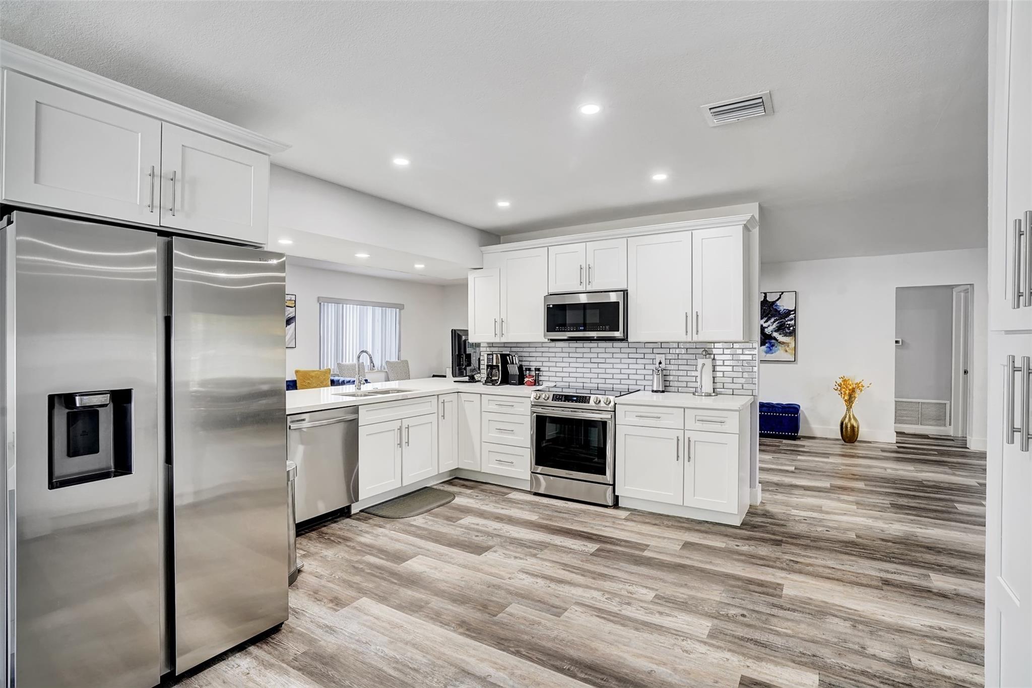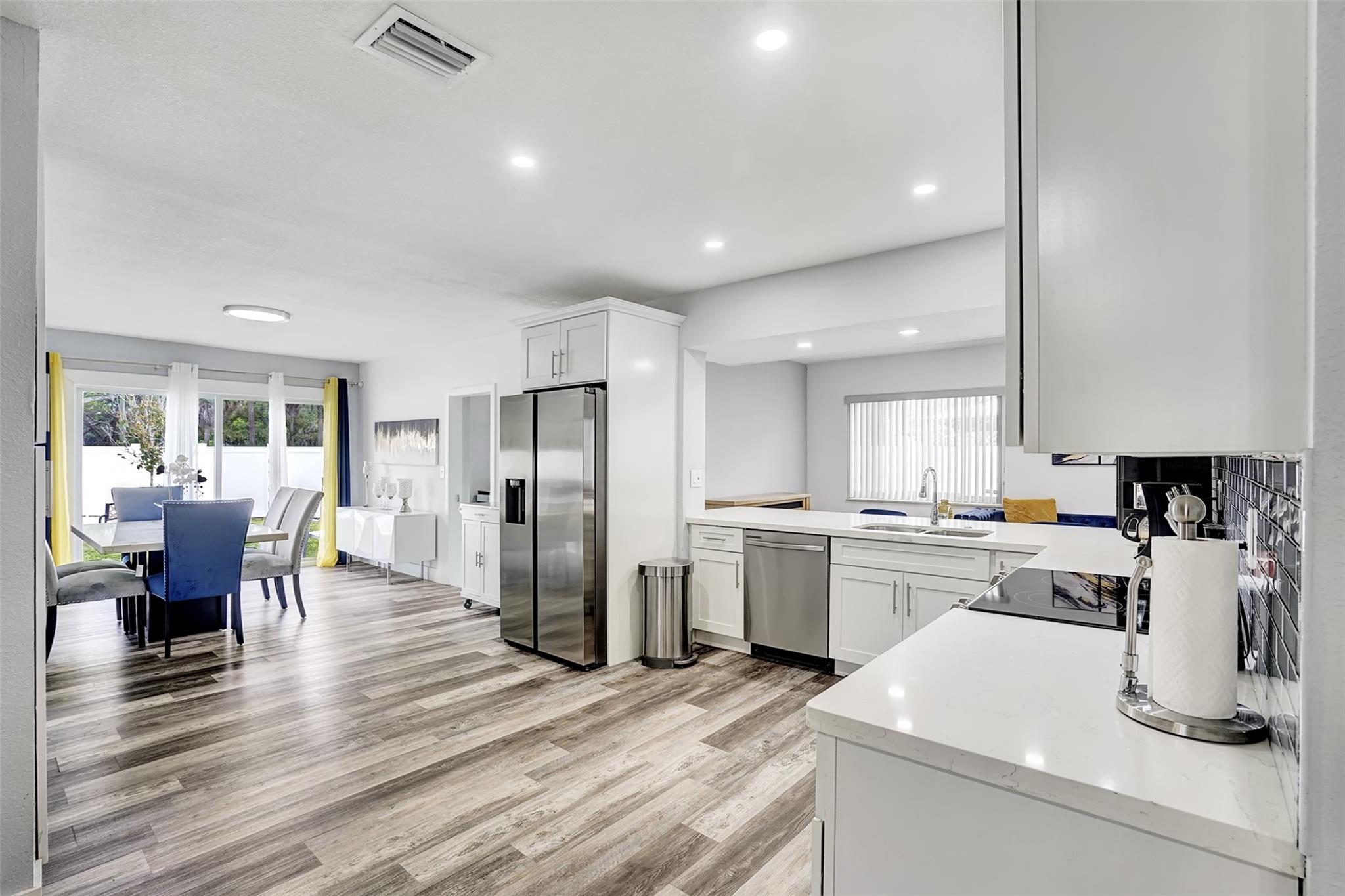 This stunning 3-bedroom, 2-bathroom home with office and den on a cul-de-sac is perfect for homebuyers & investors. With an oversized lot that offers plenty of room for a pool, this gem boasts over 2300 square feet of living space. Recently updated with a new roof and a redone kitchen, this home features stainless steel appliances, quartz countertops, and a modern look. Doors, sliders, garage and most windows are impact. The expansive new fence encircles the property, complete with an automatic rolling gate on one side of yard & double door gate on other side of fence. No HOA restrictions, making it an ideal investment opportunity with the option to Airbnb or rent out immediately. This property has ample parking for several vehicles.