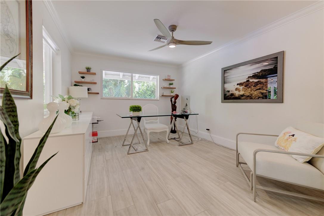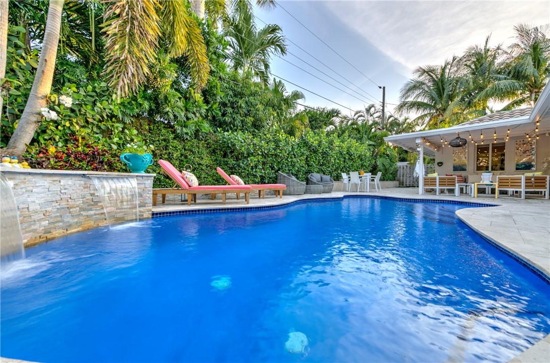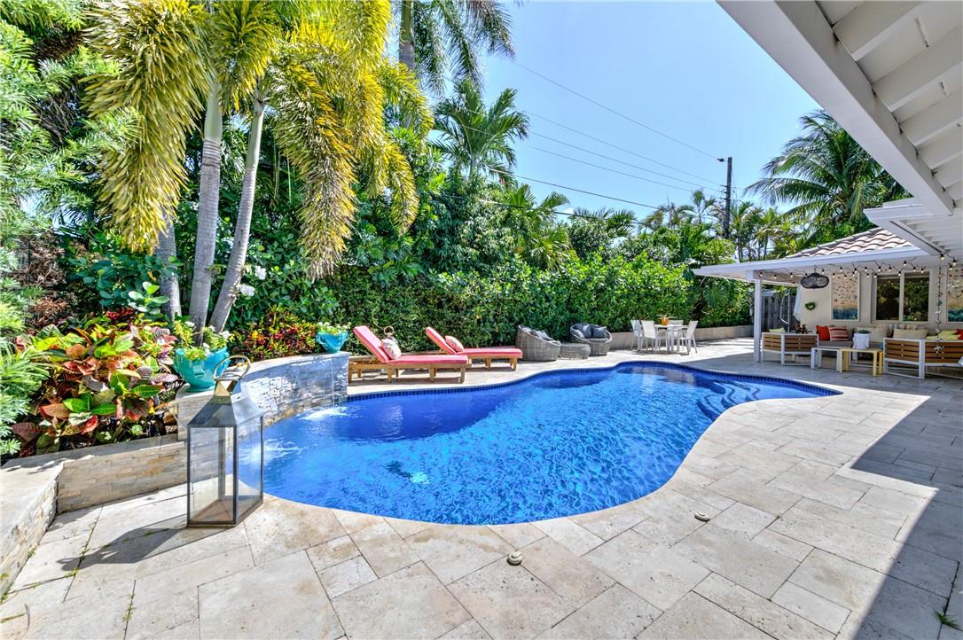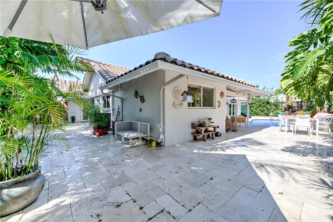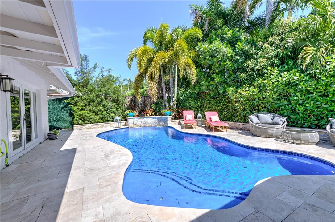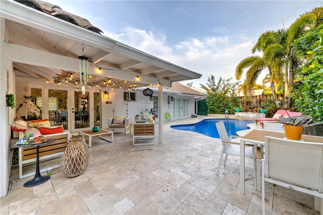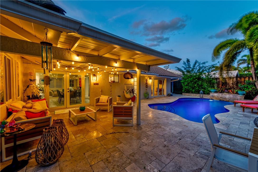 PRICE REDUCED!!!Beautifully renovated Home, this stunning single-family home boasts a bohemian modern style with porcelain tile throughout. Featuring 3 bedrooms, 2 baths, and a versatile DEN, the open kitchen is perfect for entertaining. Hurricane-proof doors and windows, Brand New A/C in 2024, plus a whole-house water filtration system, add peace of mind. Step outside to a private backyard oasis with a heated saltwater pool (new pump 2024), a serene fountain, and a spacious BBQ area. The one-car garage and expansive driveway provide ample parking. Nestled in a charming neighborhood with an excellent elementary school, this home offers the perfect blend of style, comfort, and convenience.
