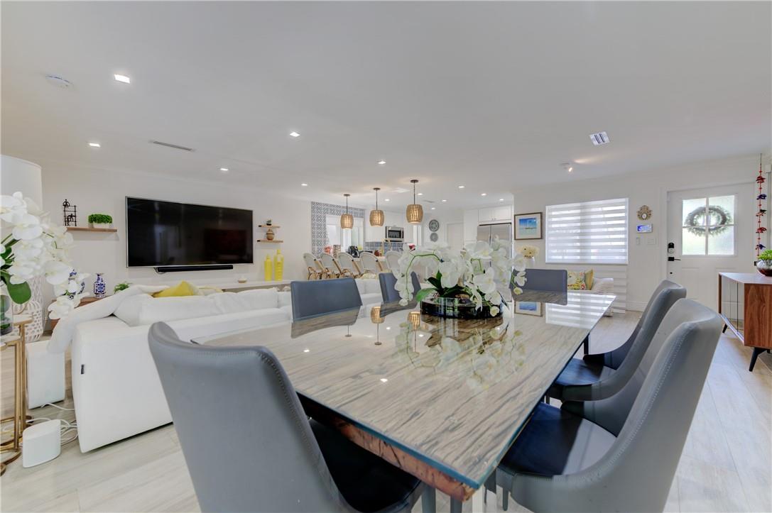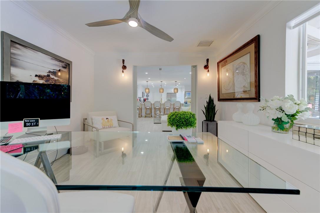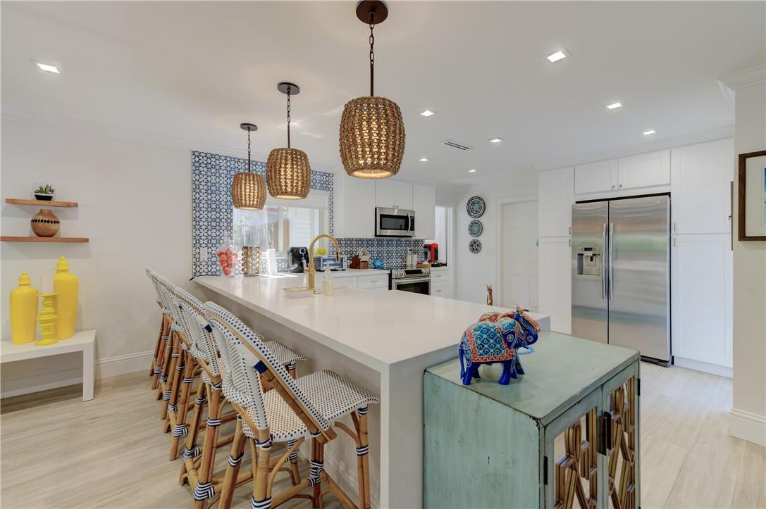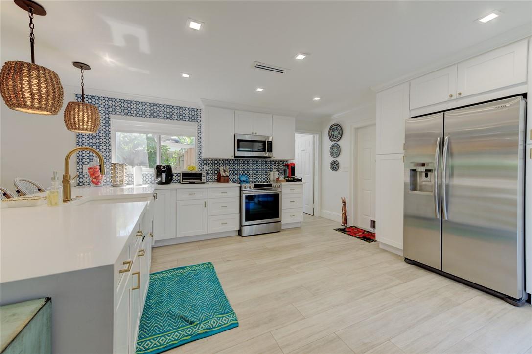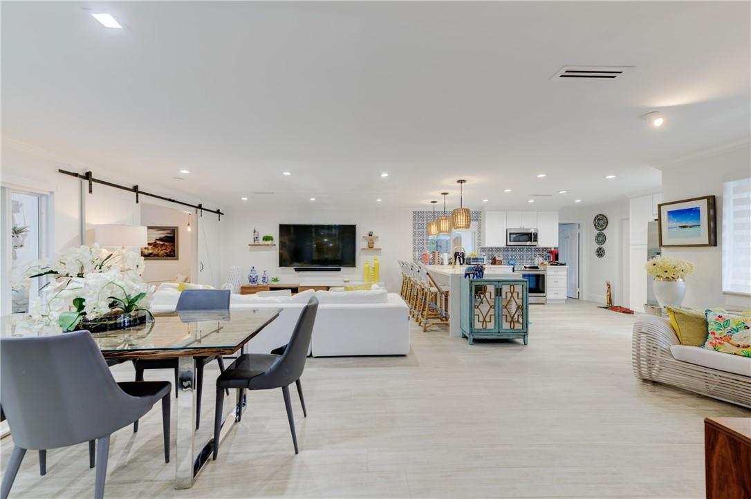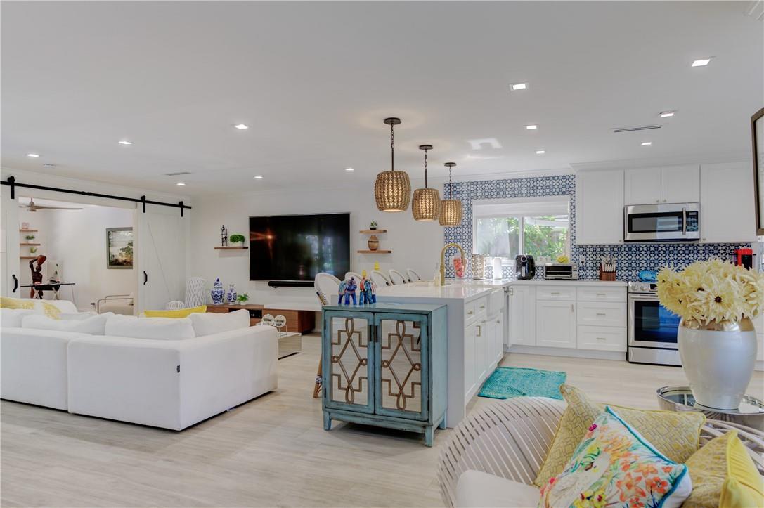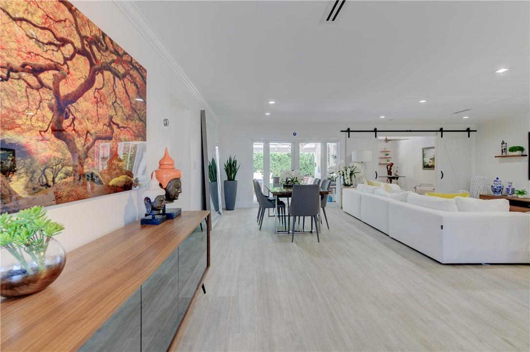 PRICE REDUCED!!!Beautifully renovated Home, this stunning single-family home boasts a bohemian modern style with porcelain tile throughout. Featuring 3 bedrooms, 2 baths, and a versatile DEN, the open kitchen is perfect for entertaining. Hurricane-proof doors and windows, Brand New A/C in 2024, plus a whole-house water filtration system, add peace of mind. Step outside to a private backyard oasis with a heated saltwater pool (new pump 2024), a serene fountain, and a spacious BBQ area. The one-car garage and expansive driveway provide ample parking. Nestled in a charming neighborhood with an excellent elementary school, this home offers the perfect blend of style, comfort, and convenience.