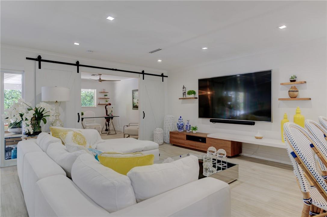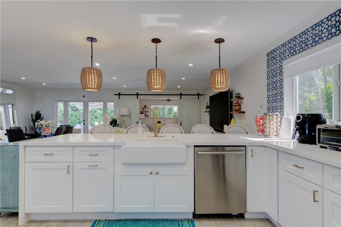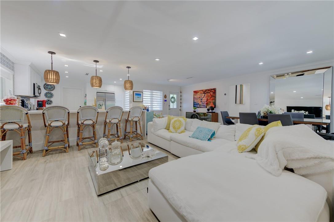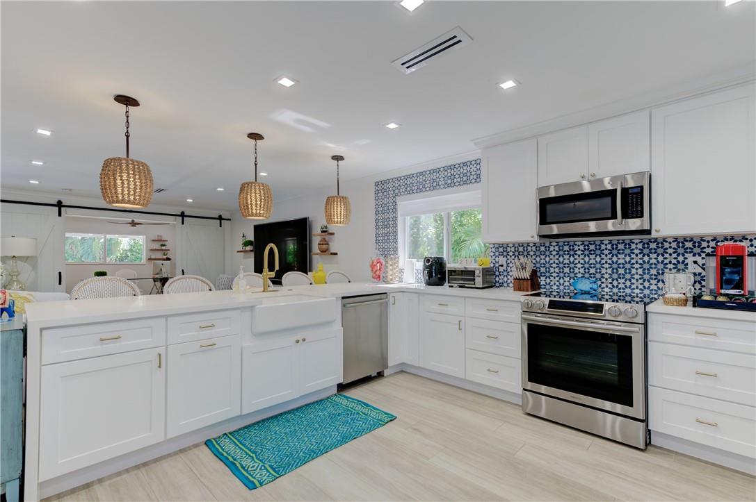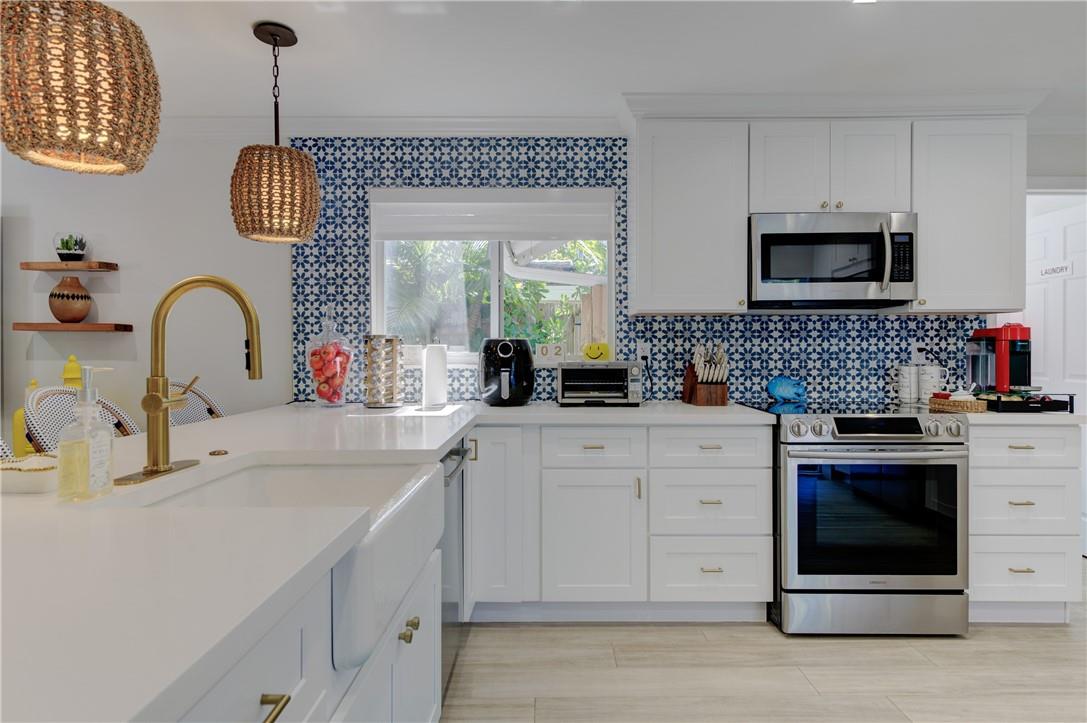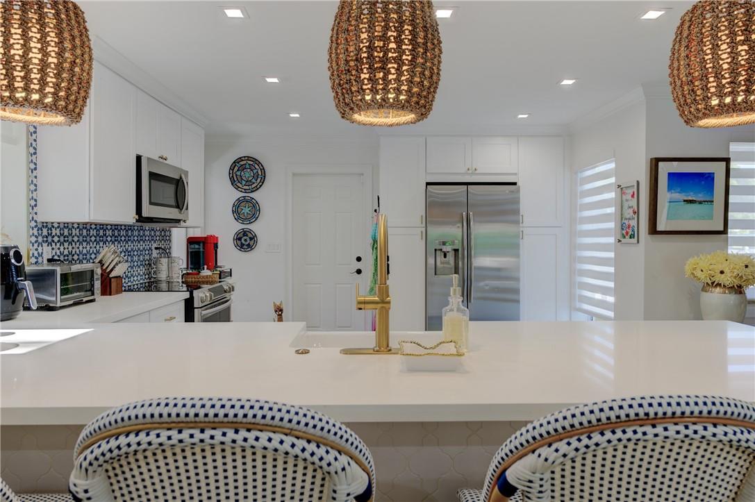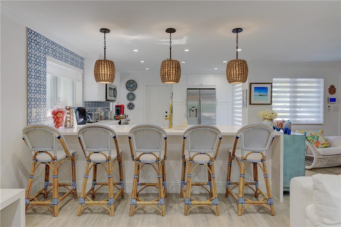 PRICE REDUCED!!!Beautifully renovated Home, this stunning single-family home boasts a bohemian modern style with porcelain tile throughout. Featuring 3 bedrooms, 2 baths, and a versatile DEN, the open kitchen is perfect for entertaining. Hurricane-proof doors and windows, Brand New A/C in 2024, plus a whole-house water filtration system, add peace of mind. Step outside to a private backyard oasis with a heated saltwater pool (new pump 2024), a serene fountain, and a spacious BBQ area. The one-car garage and expansive driveway provide ample parking. Nestled in a charming neighborhood with an excellent elementary school, this home offers the perfect blend of style, comfort, and convenience.