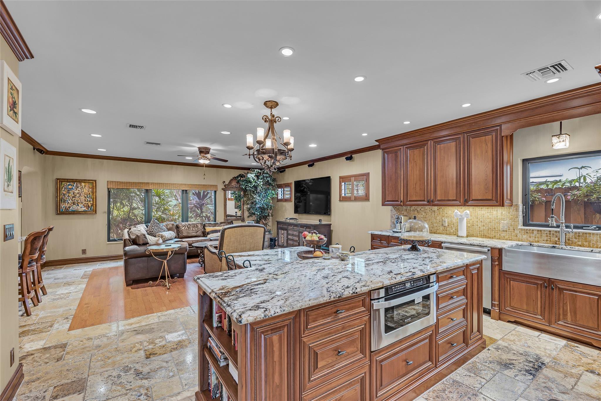 Your charming new home awaits. A rarely available Lauderdale Harbors home, directly facing Cliff Lake, gives you the opportunity to live 5 minutes from downtown and the beach, but also in an exclusive and hidden neighborhood surrounded by green lush! This upscale home features an expansive kitchen with Miele, SubZero, and Viking appliances, an open and airy office with plenty of natural light, a custom and all-inclusive wet bar perfect for entertaining, and an oversized formal dining room. Additional hallmarks include a whole home generator, a bonus room which could be used as a children’s play space or extra storage, two-car garage, gas stove, and an incredibly spacious primary suite with views inspiring tranquility.