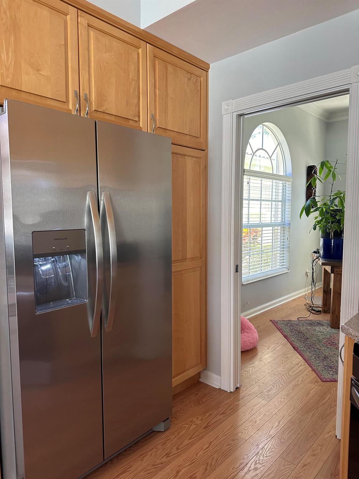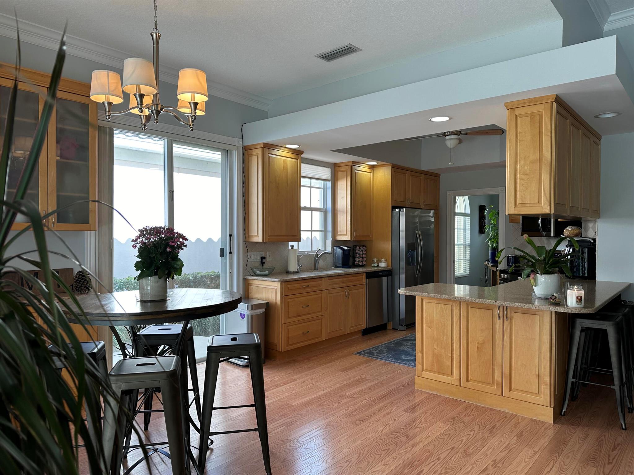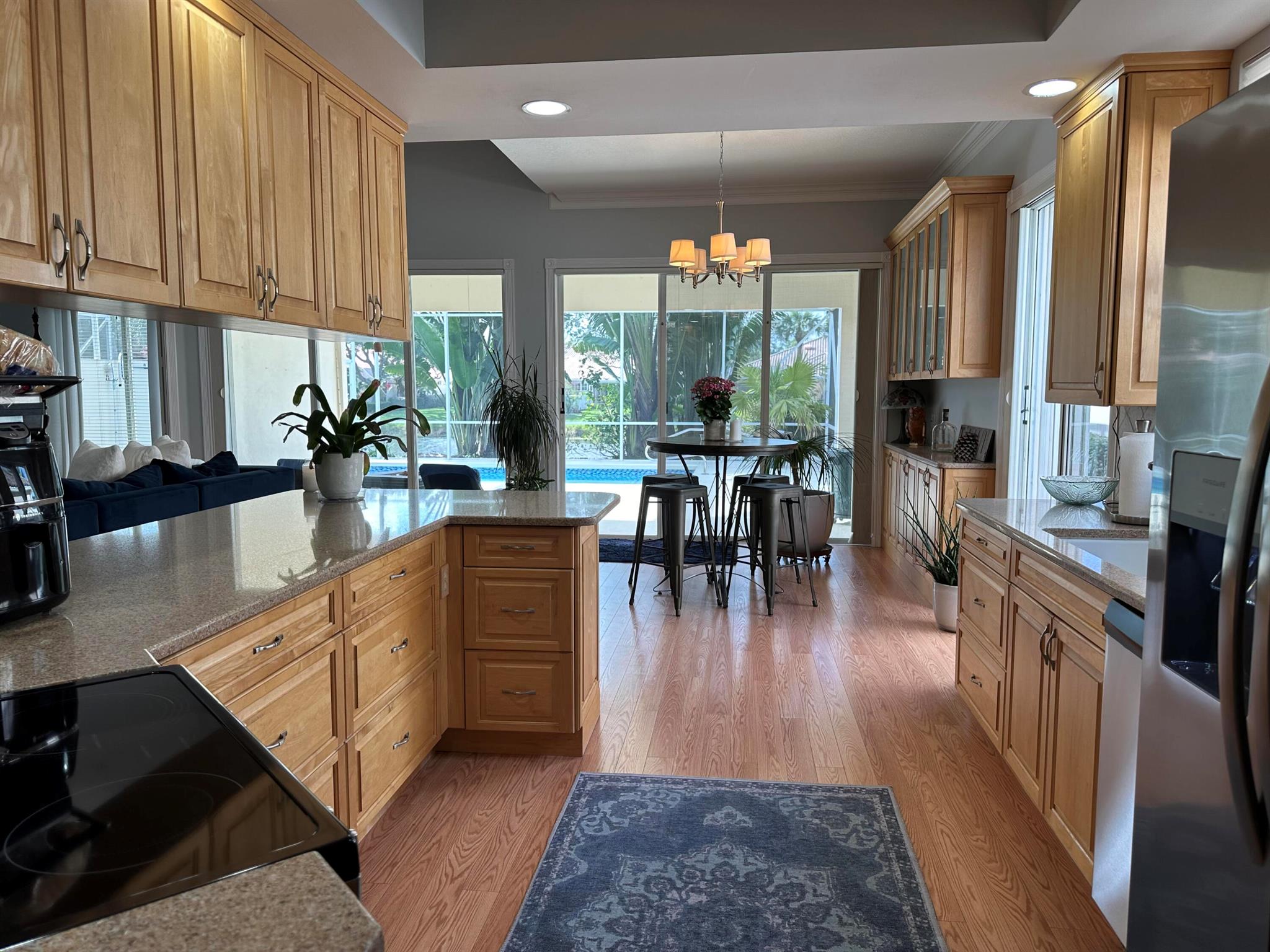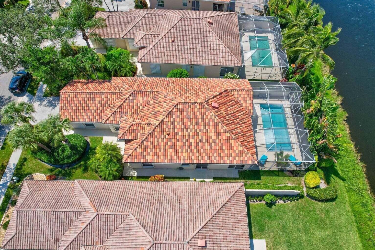 Spacious lakefront screened pool home on the quiet side of Riverwalk – no traffic noise. Home has 3 bedrooms, 2.5 baths, a bonus room that can be used as a 4th bedroom, a den, or an office. Brand new appliances, pool resurfaced & retiled in 2023, A/C & hot water heater replaced in 2021, hurricane shutters added in 2020, walkway and pool deck repainted in 2024, kitchen cabinets are solid wood, and crown molding throughout. Master bath has 2 bathrooms. Numerous community amenities that includes cable.
