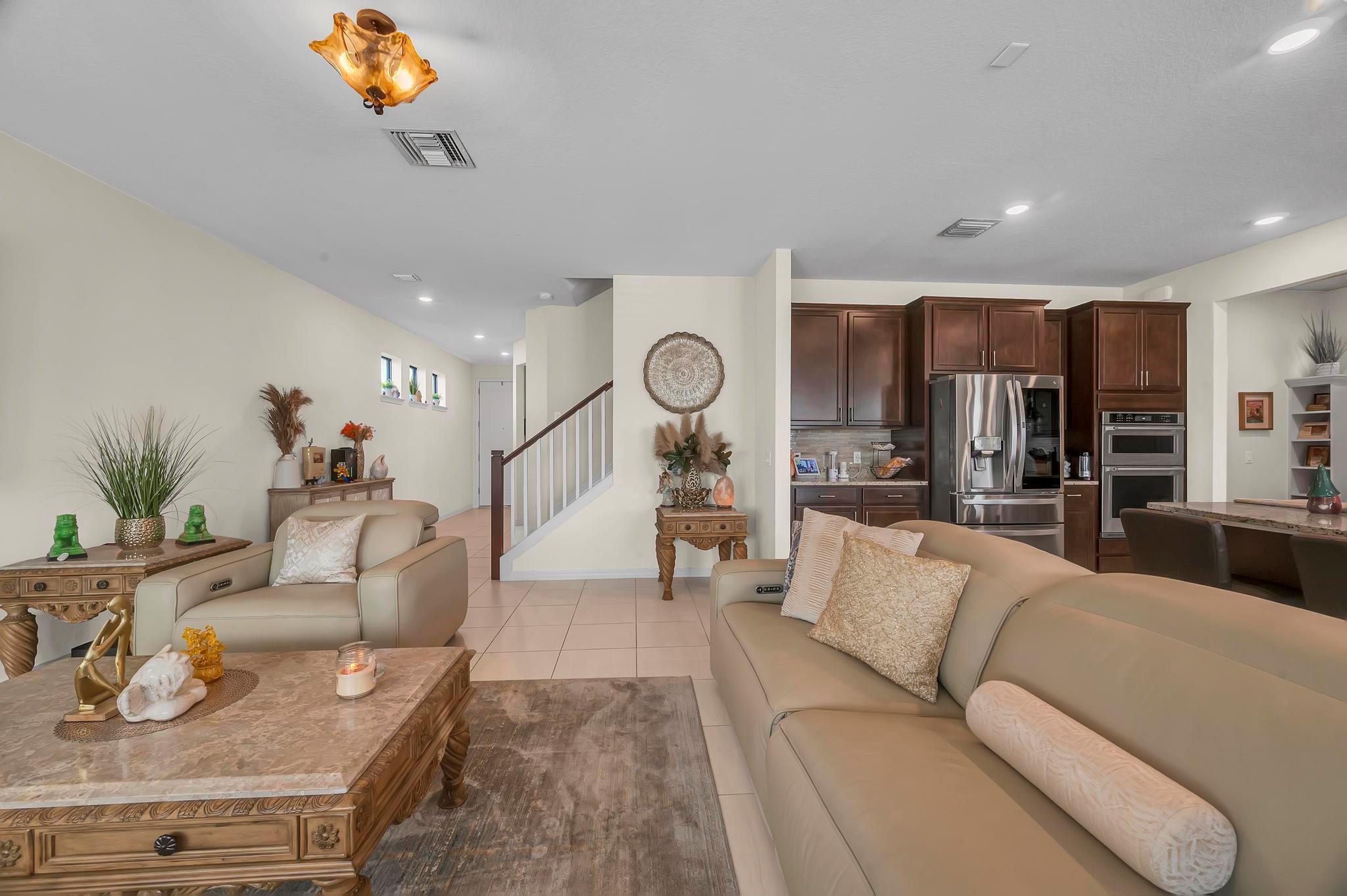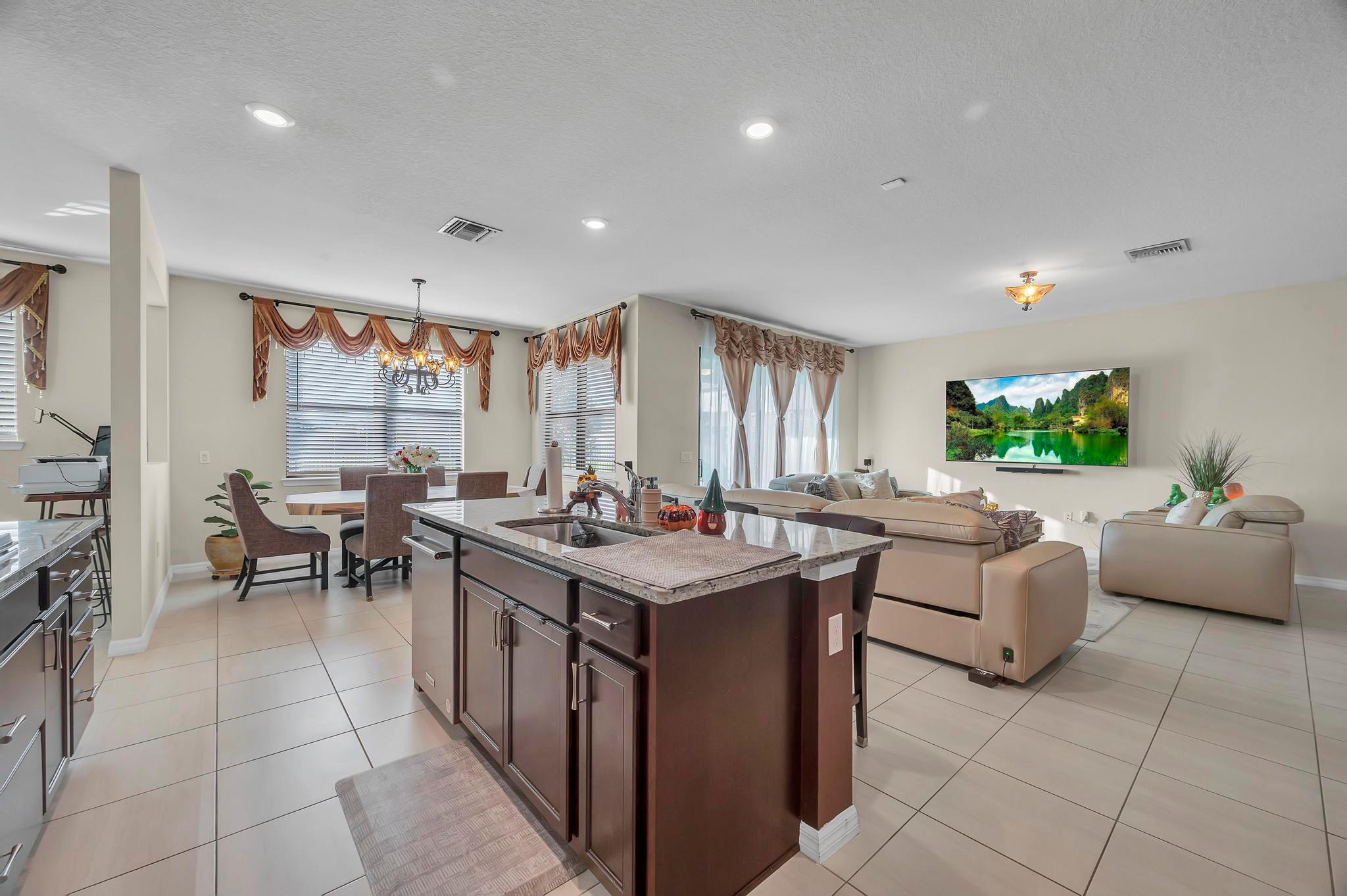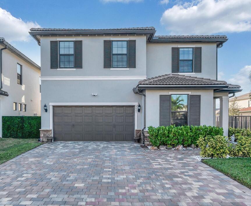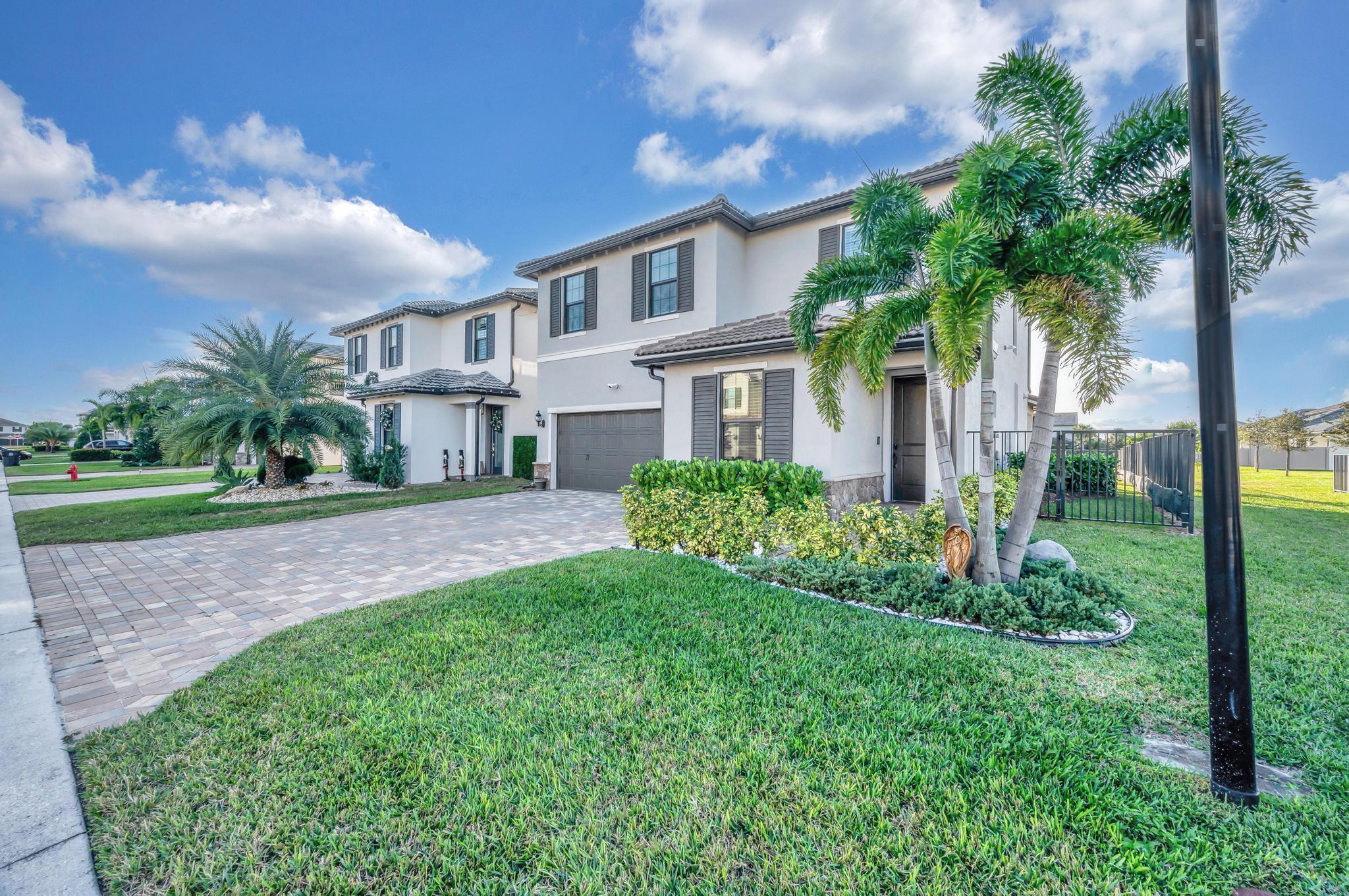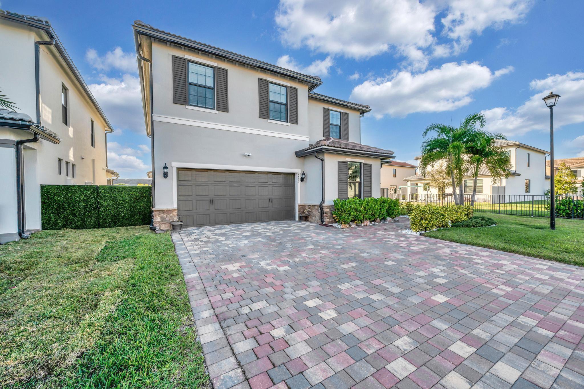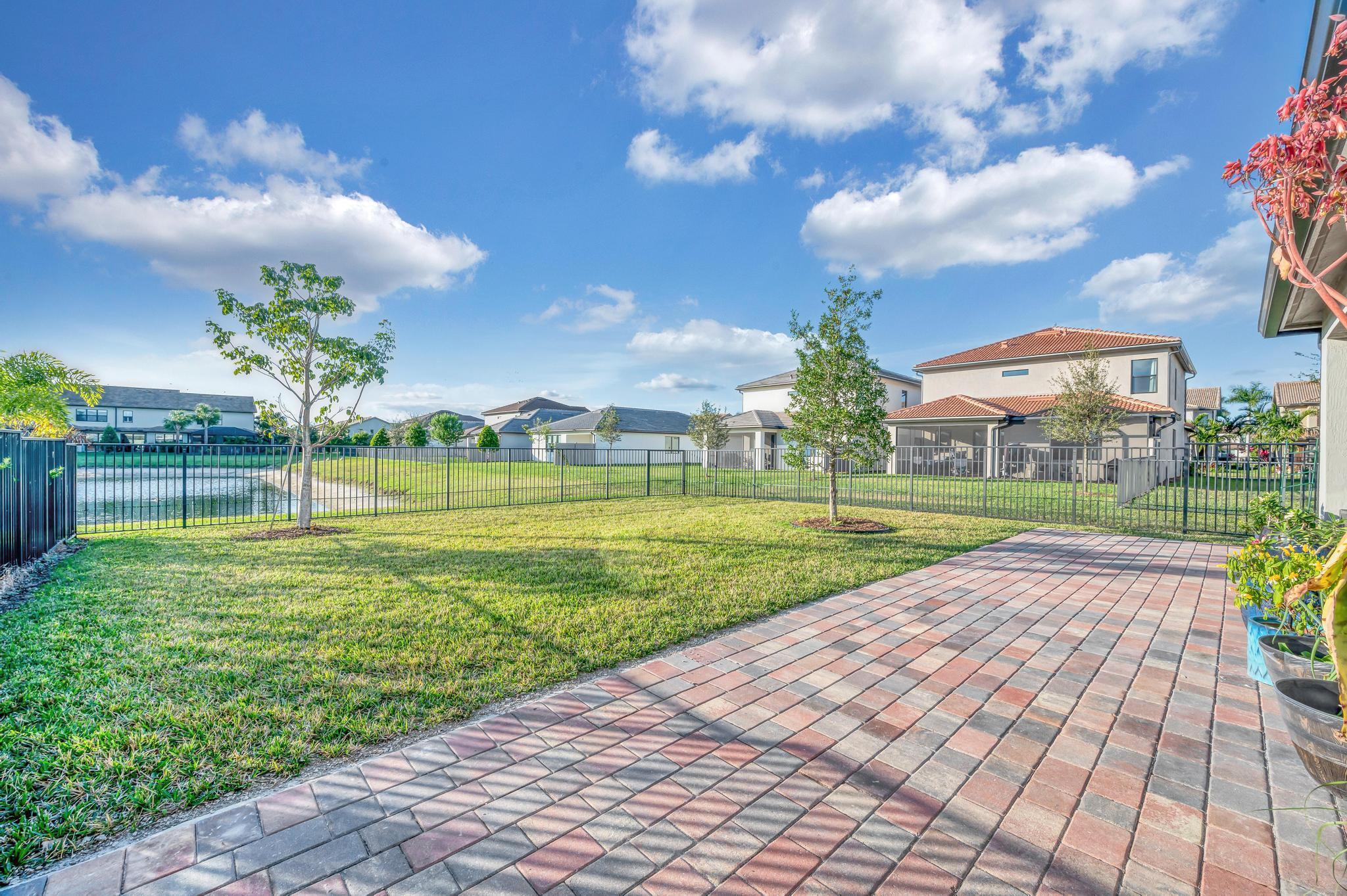 Welcome to The Fields! Perfectly located off the turnpike and Lake Worth Road, this Divosta-built ”Riverwalk” home consists of 5 bedrooms and 3 full bathrooms with a waterview of one of the many ponds throughout the gated community. Built in 2022, this home has a lot of upgraded features and options including one bedroom and one full bathroom on the main level, tile and hardwood floors throughout, and gas appliances. The large open floor plan allows for multiple rooms to function in a single living space. With ample granite countertop and cabinets, the kitchen also provides an island for casual seating while the dining area has room for a large table and a more formal arrangement.