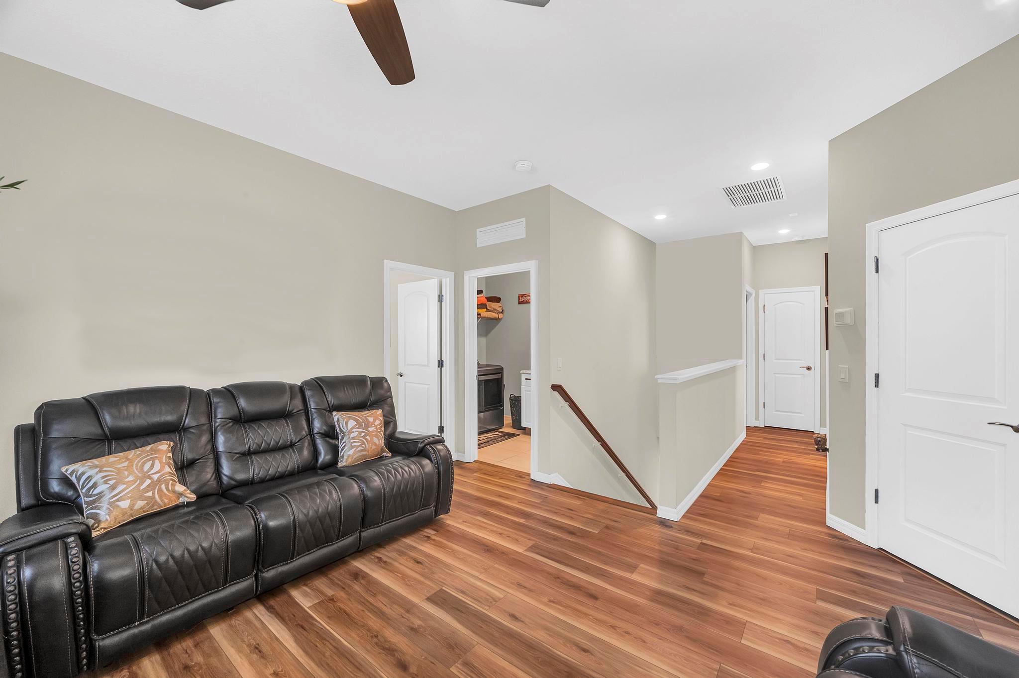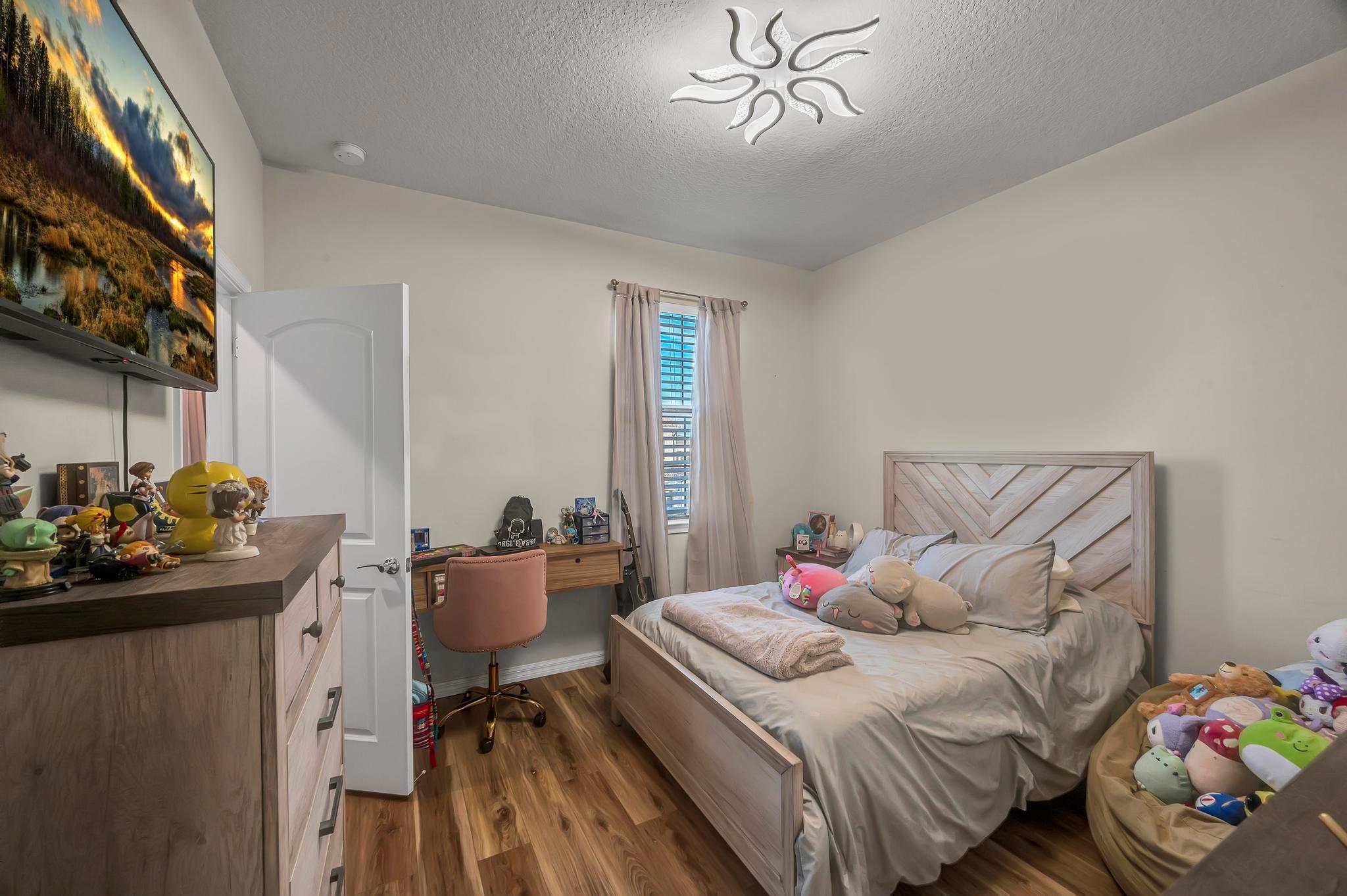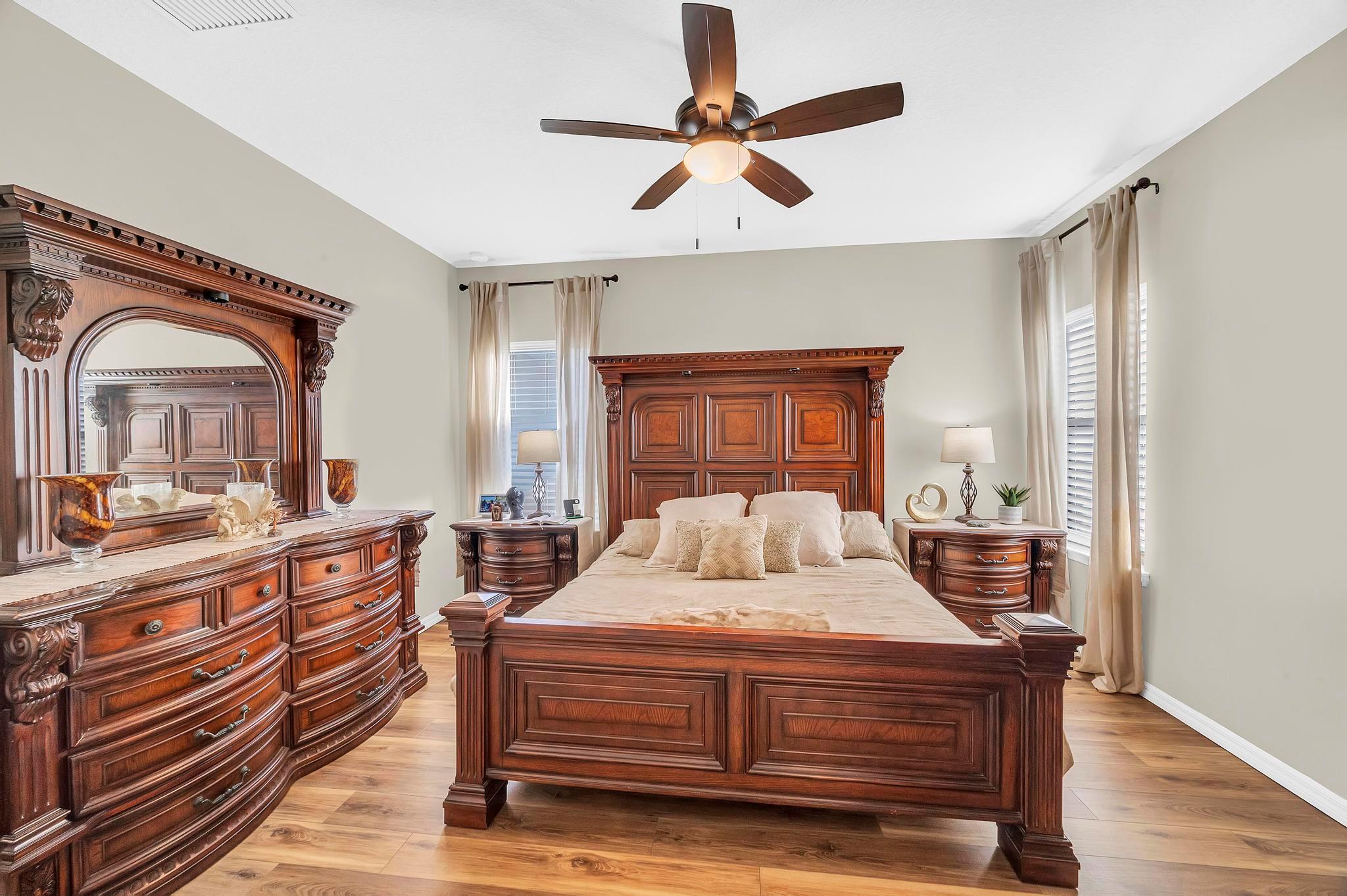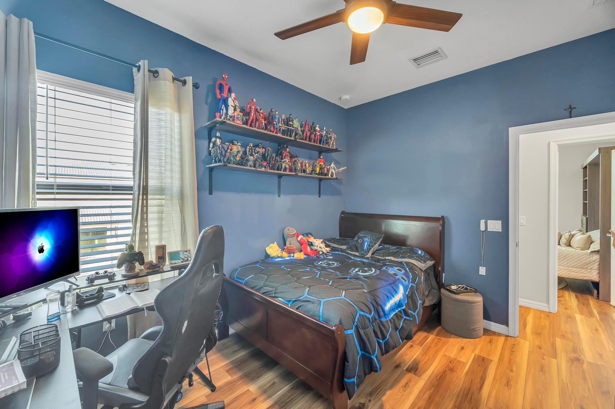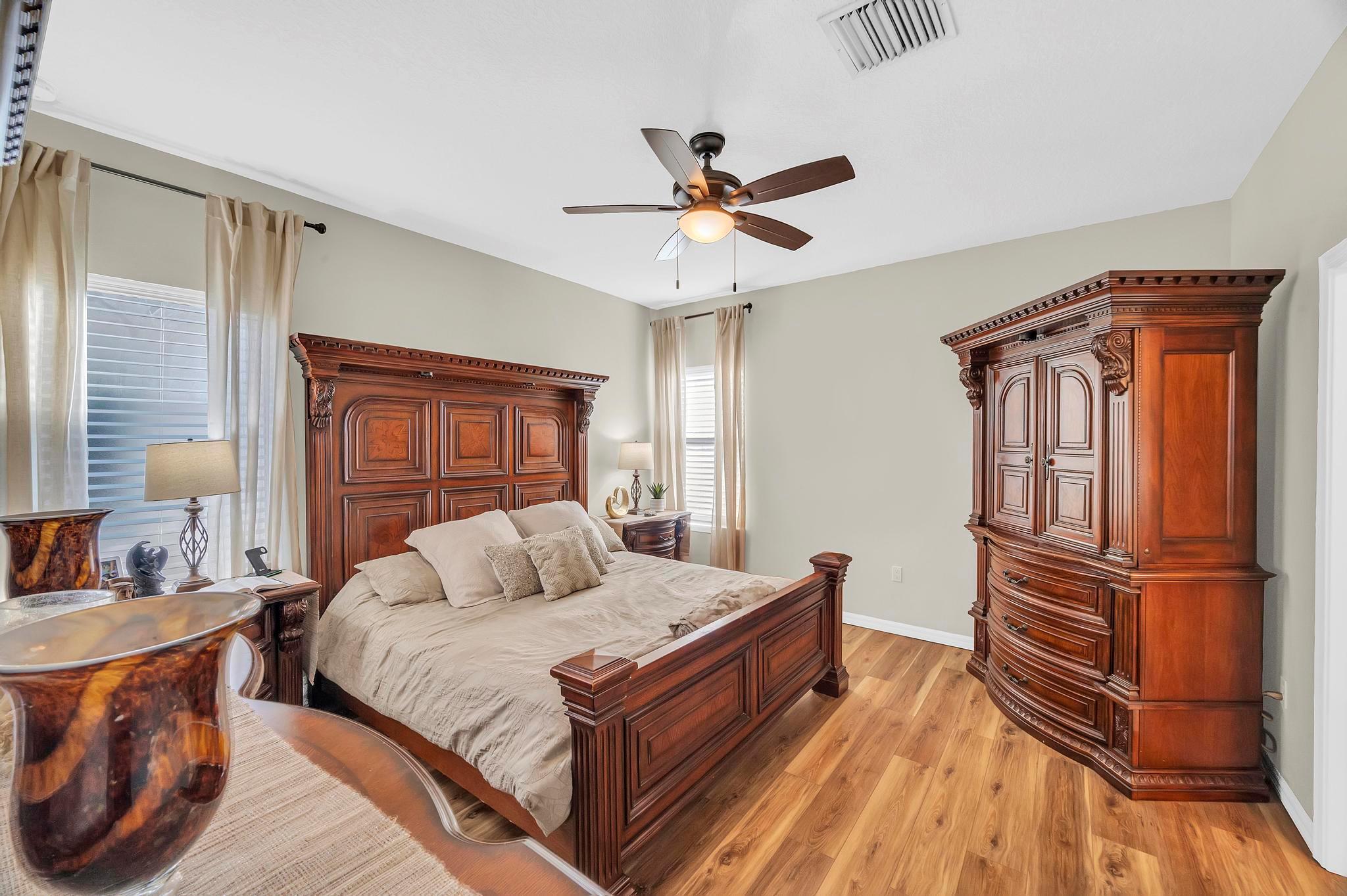 Welcome to The Fields! Perfectly located off the turnpike and Lake Worth Road, this Divosta-built ”Riverwalk” home consists of 5 bedrooms and 3 full bathrooms with a waterview of one of the many ponds throughout the gated community. Built in 2022, this home has a lot of upgraded features and options including one bedroom and one full bathroom on the main level, tile and hardwood floors throughout, and gas appliances. The large open floor plan allows for multiple rooms to function in a single living space. With ample granite countertop and cabinets, the kitchen also provides an island for casual seating while the dining area has room for a large table and a more formal arrangement.