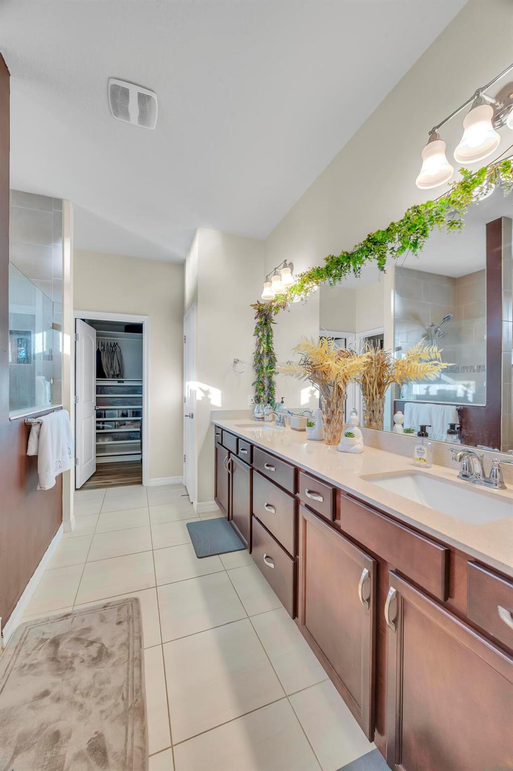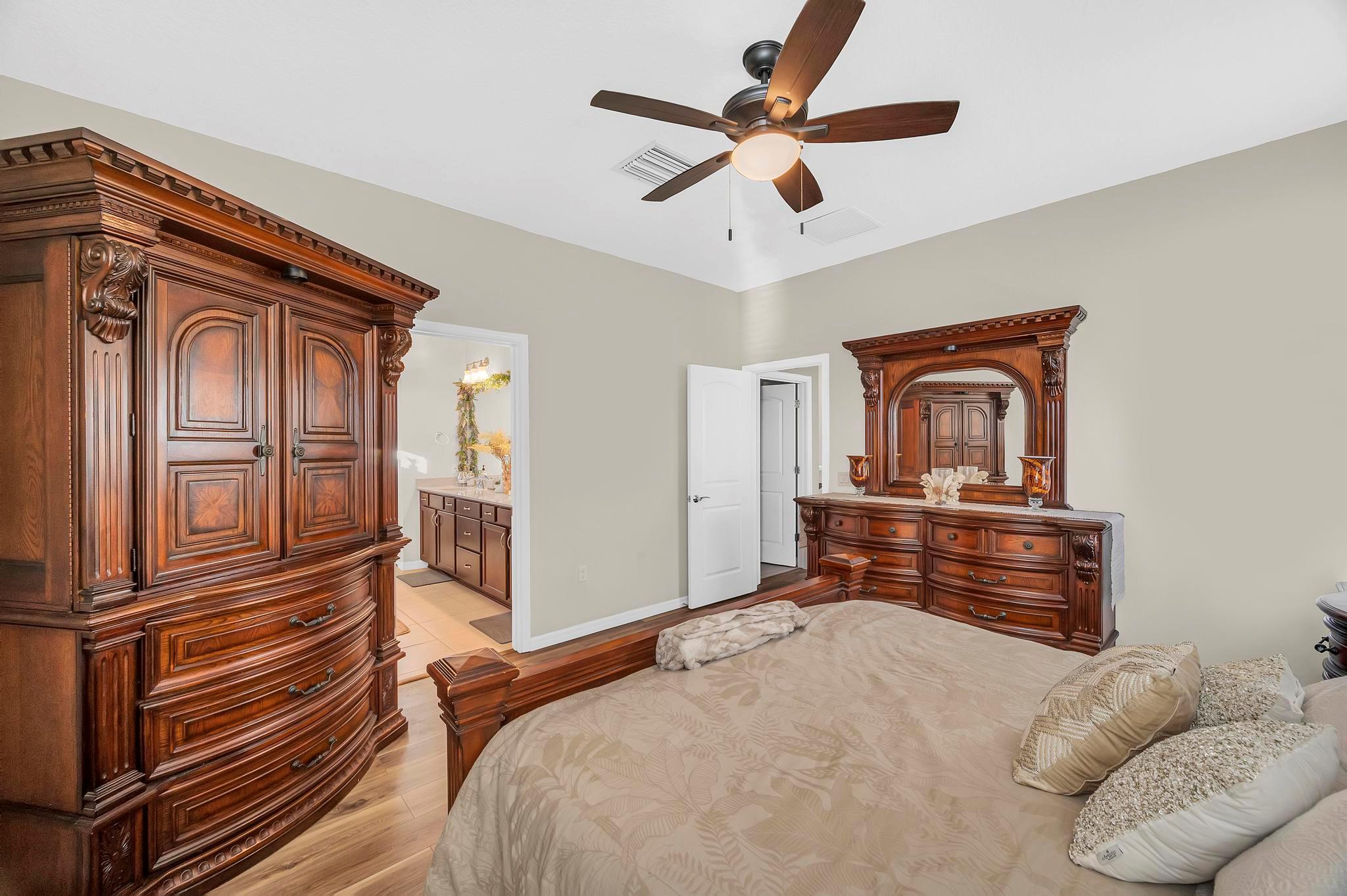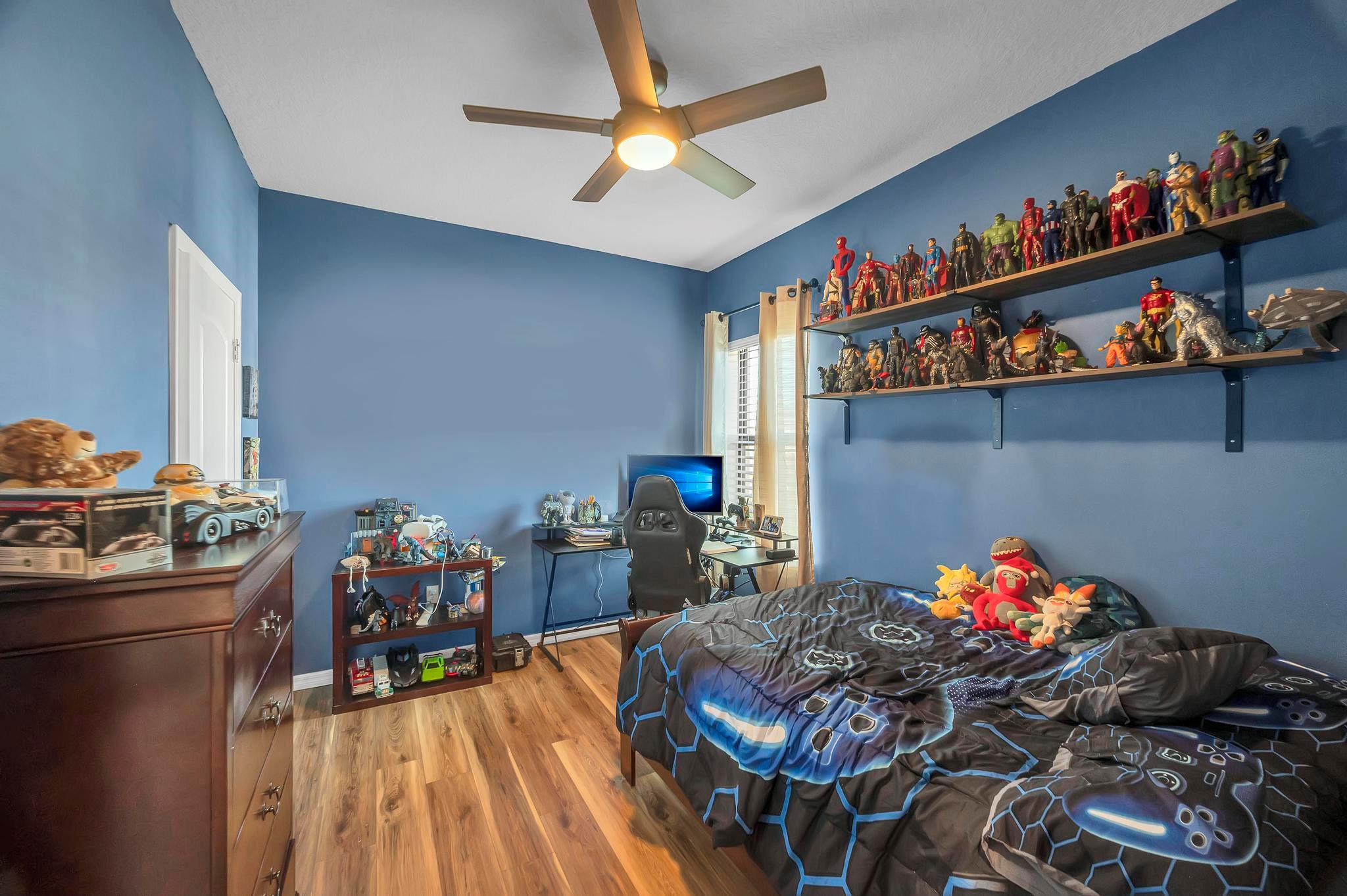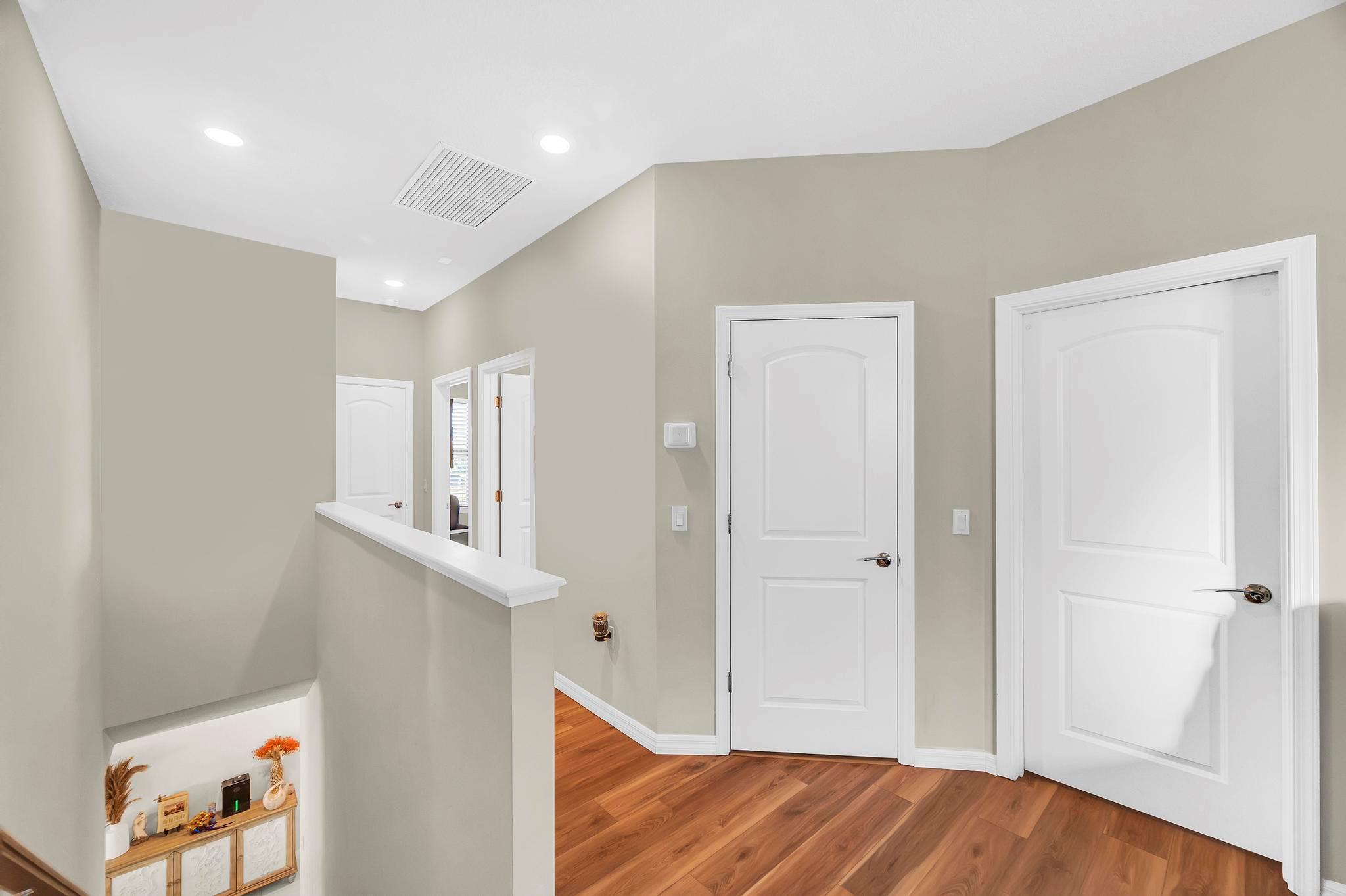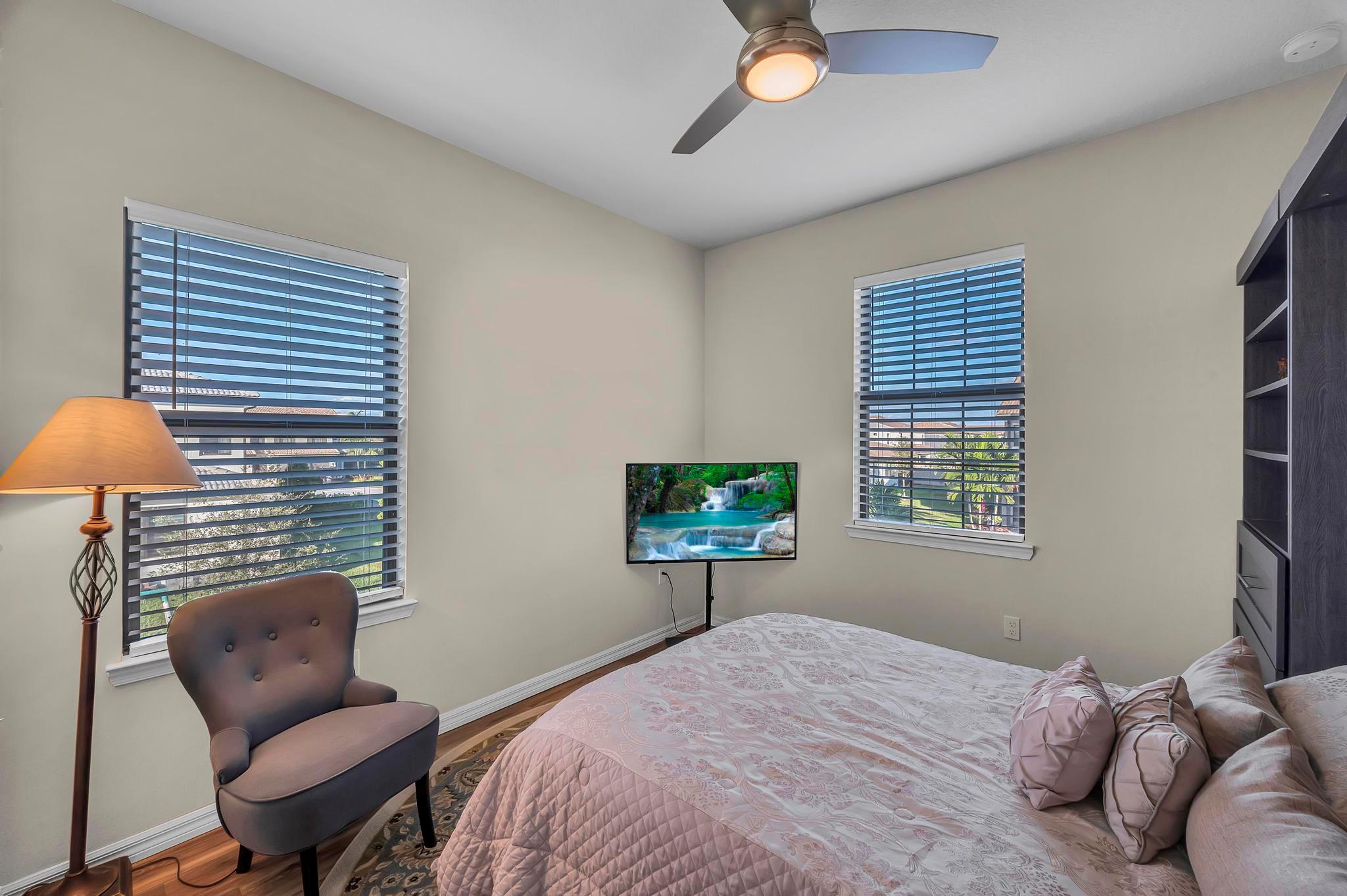 Welcome to The Fields! Perfectly located off the turnpike and Lake Worth Road, this Divosta-built ”Riverwalk” home consists of 5 bedrooms and 3 full bathrooms with a waterview of one of the many ponds throughout the gated community. Built in 2022, this home has a lot of upgraded features and options including one bedroom and one full bathroom on the main level, tile and hardwood floors throughout, and gas appliances. The large open floor plan allows for multiple rooms to function in a single living space. With ample granite countertop and cabinets, the kitchen also provides an island for casual seating while the dining area has room for a large table and a more formal arrangement.