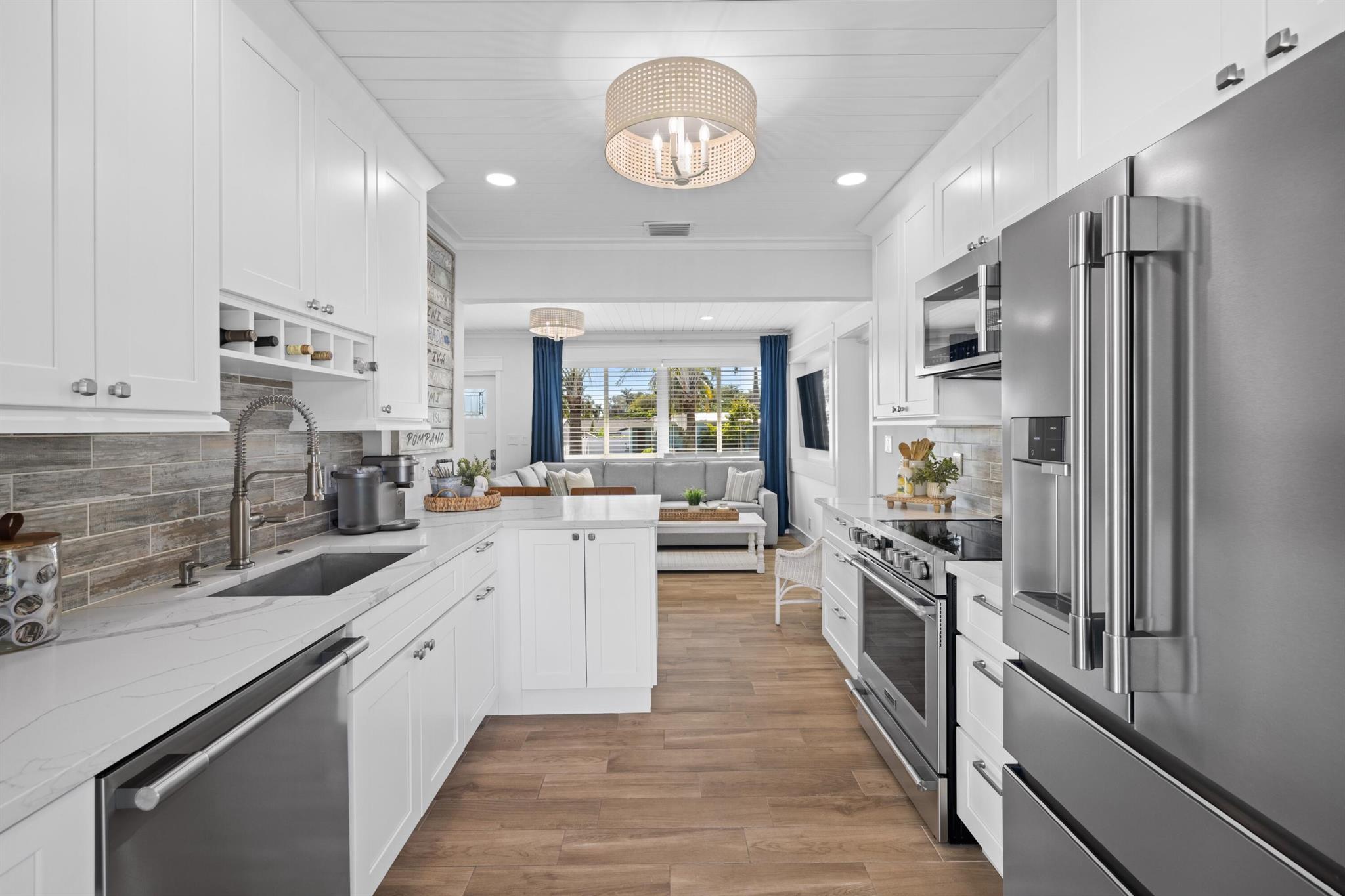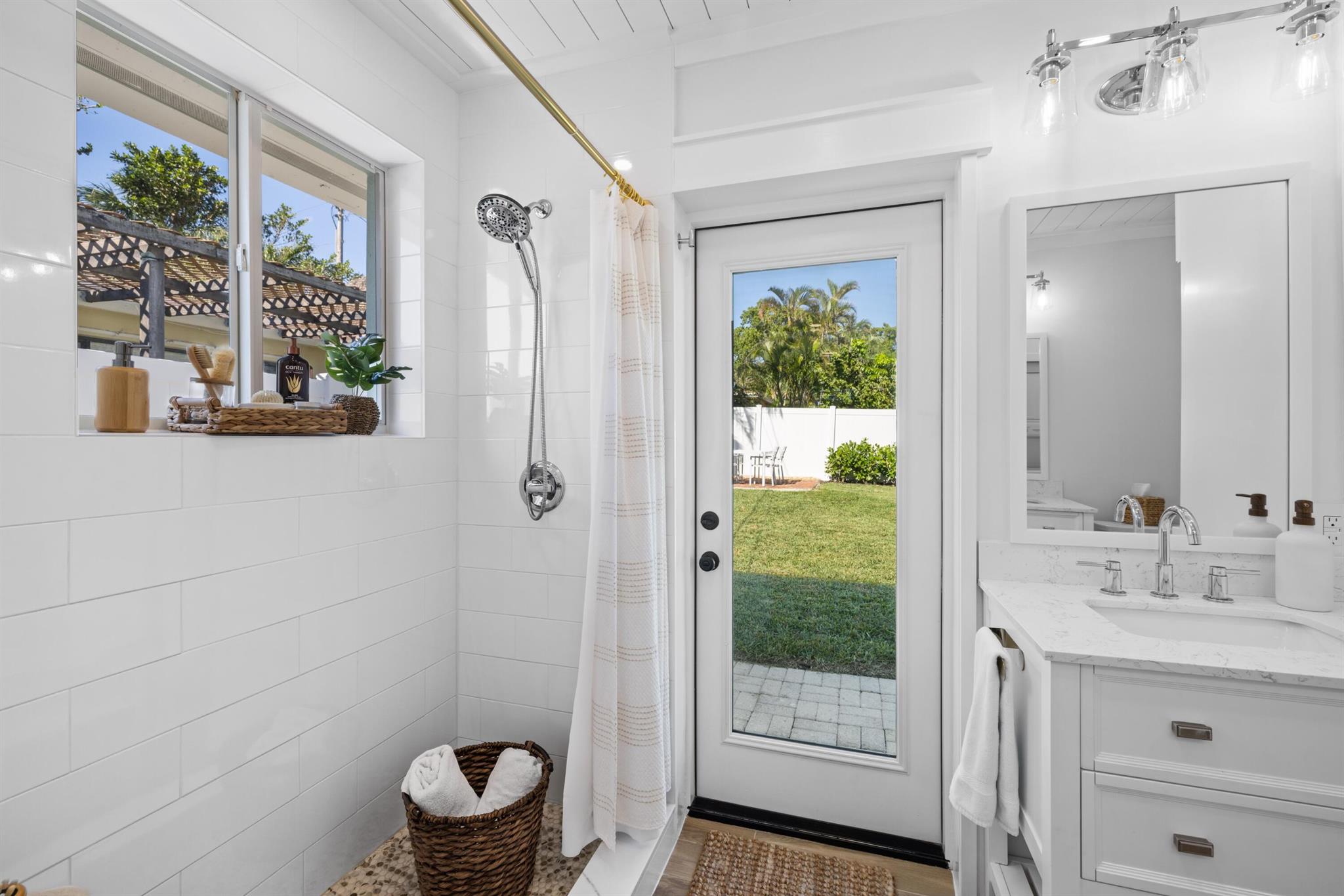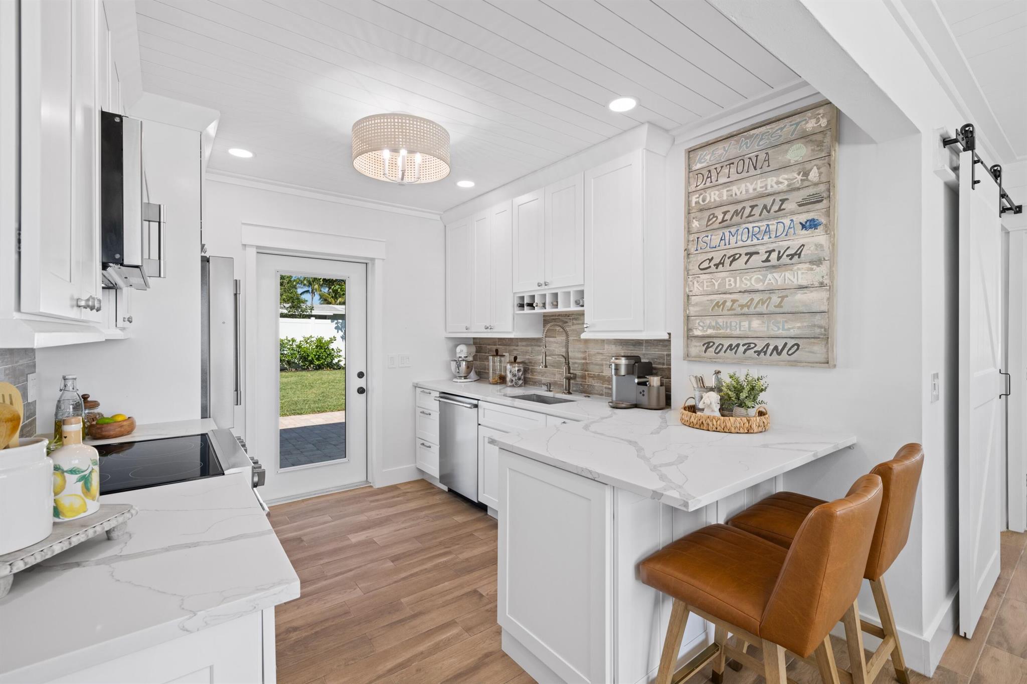 Discover the perfect blend of luxury and coastal living in this exquisite 3-bedroom, 2-bathroom oasis in sought-after Pompano Beach. The bright, open floor plan welcomes you with a modern kitchen, complete with stainless steel appliances, quartz countertops, and elegant white cabinetry. The primary bedroom features an ensuite bath with double vanities and a custom mosaic-tiled shower. Every inch of this home has been beautifully renovated. Outside, the tranquil outdoor space, enclosed by privacy fencing, offers relaxation and potential for a pool. With no HOA restrictions, this property is ideal for investors, winter retreat seekers, or those looking for their forever home. Nestled near waterfront dining and pristine beaches, this residence epitomizes the perfect coastal lifestyle.
