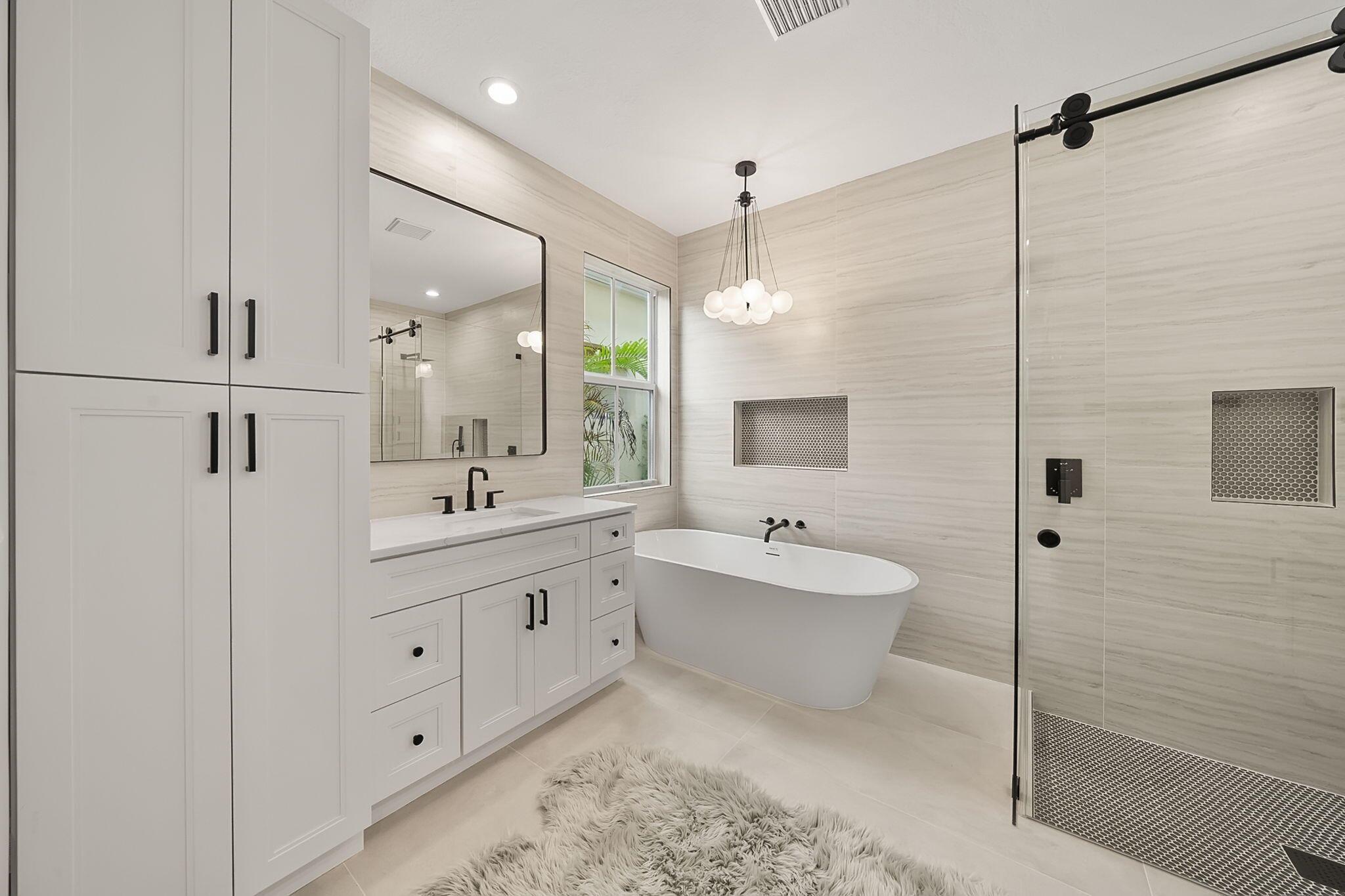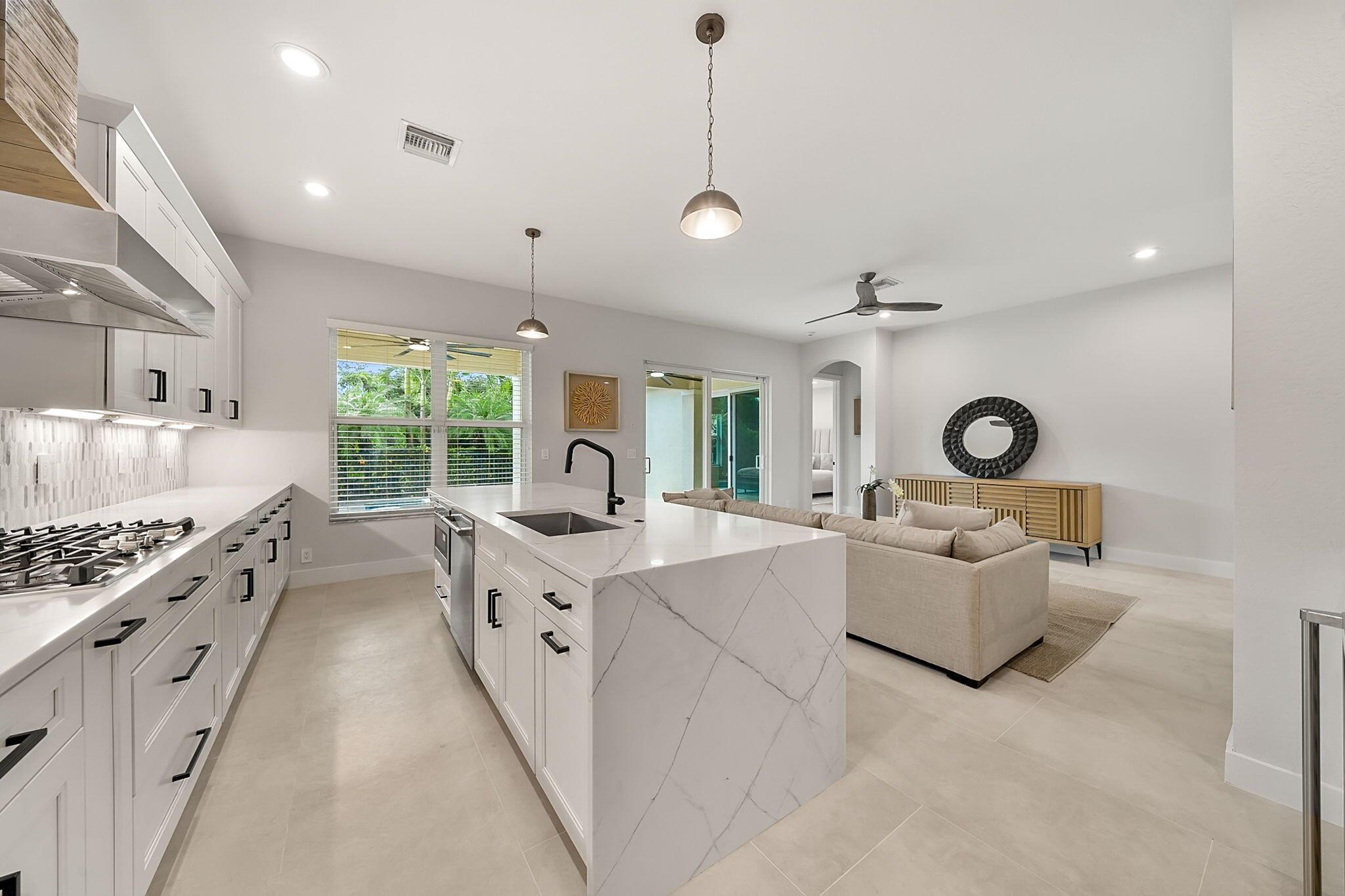 This stunning home will leave you speechless. Boasting 4 bedrooms, 3.5 bathrooms, 2 lofts, mudroom, pool and 3 car garage. This renovated lake view gem features an array of upgrades; pristine new kitchen with large quartz waterfall island, fresh spa-like bathrooms, decorative tile accent walls, 24×48 porcelain tile floors, modern interior doors, new light fixtures, plumbing fixtures, and chic stair railings. The 2 lofts offer versatile living spaces/potential 5th bed. The large covered patio overlooks a lake, perfect for enjoying serene evenings. With a new marble pool deck, pet friendly turf and impact windows and 2 brand new ACs, this oasis is truly one of a kind. Situated in the coveted neighborhood of Mirabella, you’re just moments away from top-rated schools, parks, and restaurants.