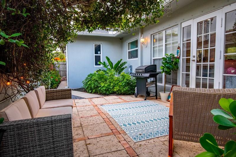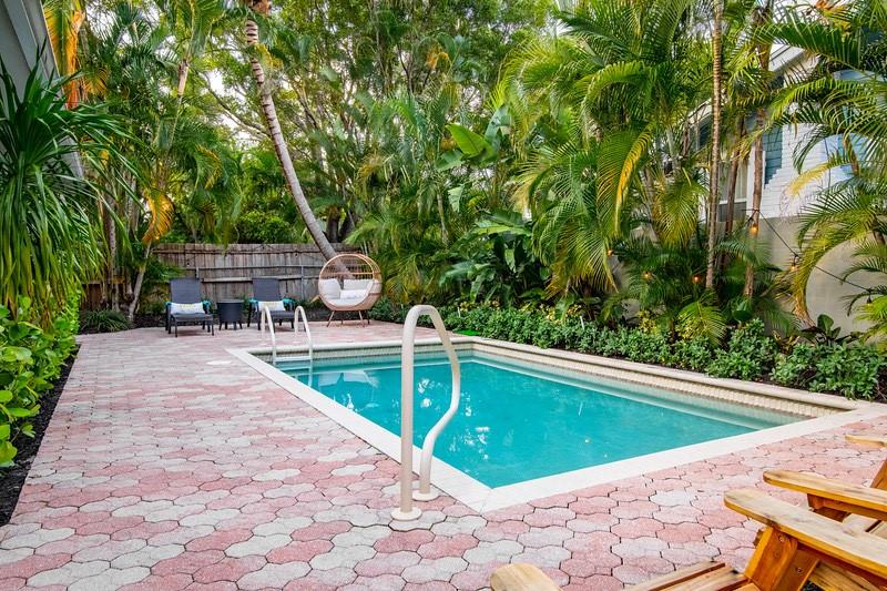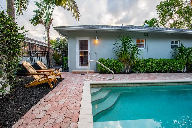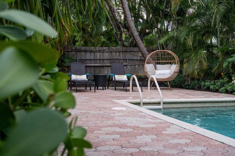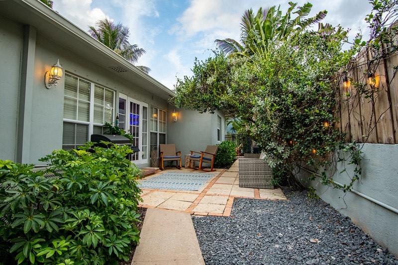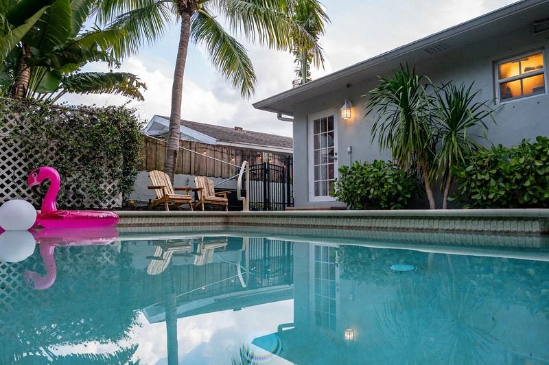 Quiet Grandview Beachy Bungalow with a Private Pool setting, Lush landscape- 2 Bedroom 2 Bath open floor plan with 2 seperate patio areas for entertaining-Highly desirable/Walking distance WEST-Armory Art Center,Grandview Public, Howard Park, NORTH-The Square(city place),Kravis Center, Conference Center and the new up and coming EAST SIDE- Dining at Konro, The Hive, Table 26, Gratos, Norton Art Museum, Bedner’s fresh local market, Pink Steak, Josephs Market& Starbucks. 1 Mile to Brightline for an Orlando to Miami Experience, West Palm Residence can ride free on the Circuit – 2 Miles to Palm Beach Worth Ave, fine dining and beach experience Pool is 15 x 20