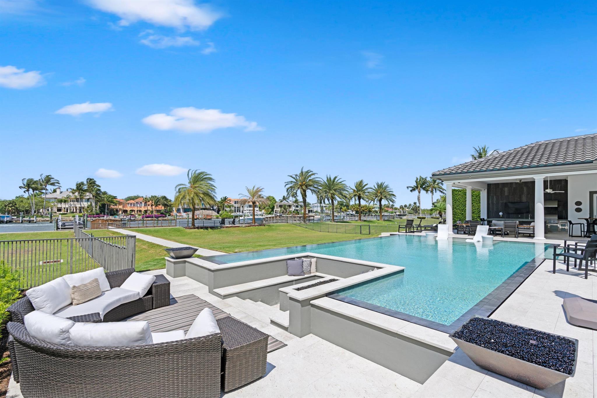 A Boater’s Paradise! Fantastic custom-built luxury home in exclusive community of Frenchman’s Harbor. With over 100′ of direct intracoastal water frontage, this home has a dock that can accommodate up to a 70′ boat and a new 4 jet ski lift and platform. The backyard was completely renovated in Nov 2023 with a brand-new pool, Jacuzzi, and fire pit. New outdoor deck and lush landscaping, this backyard is perfect for entertaining. No detail was overlooked in this modern, luxury home. 7 full bedrooms, 7 full bathrooms, 2-1/2 baths, a private elevator, heated lanai, outdoor kitchen, and 3-car air-conditioned garage. Accepting Backup offers.