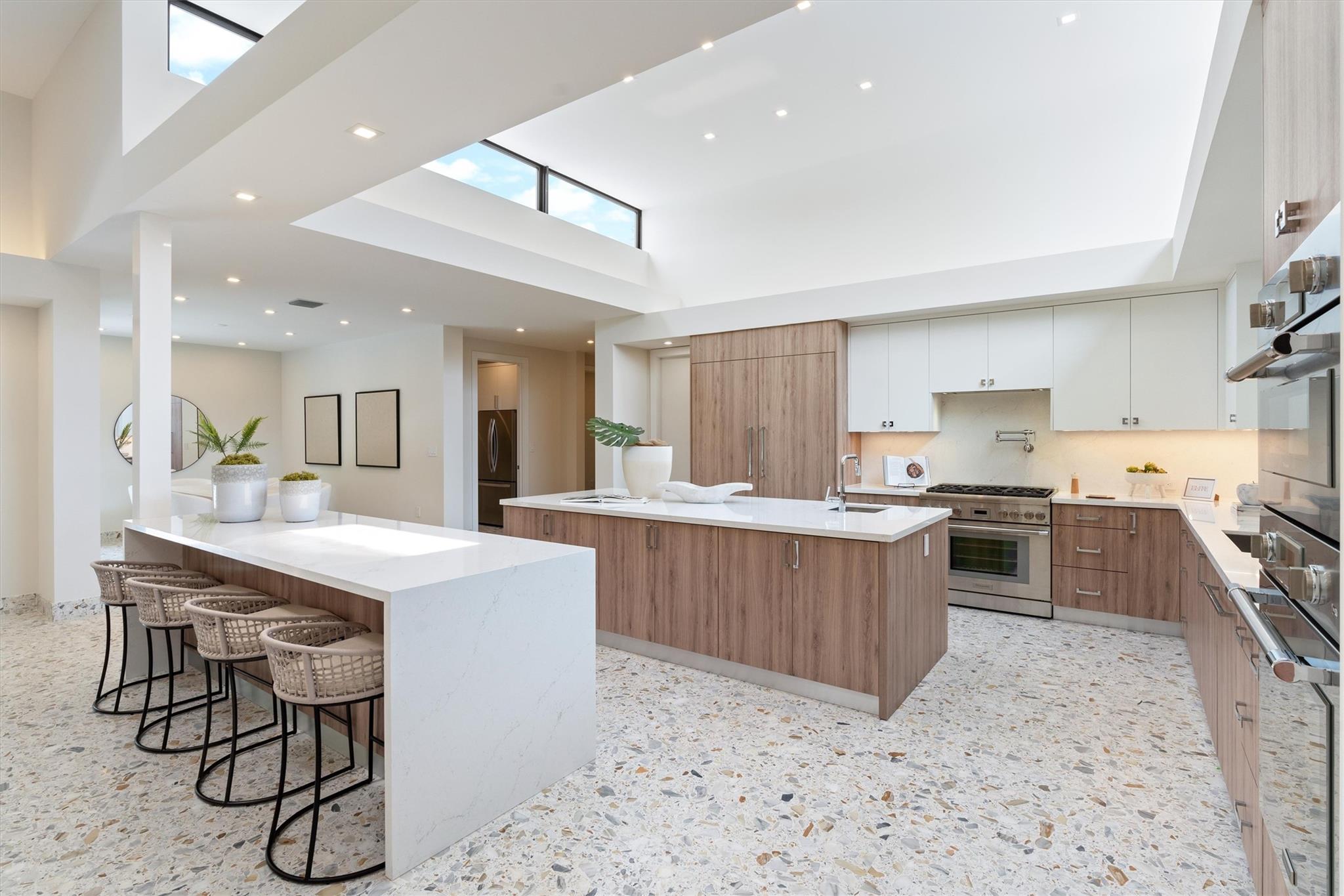 Sophisticated modern retreat 4 bedroom, 4 bath single family home located in desirable Sea Ranch Lakes gated community with access to private beach club, swimming pool, playground and 24hr security. Complete remodel, Florida entertaining at its best with spacious indoor, outdoor living areas. Bright, airy large gourmet kitchen with volume ceilings, lots of windows, skylights provide lots of natural light views of new custom pool, tropical backyard and outdoor kitchen Vaulted family room with custom fireplace and built in bar flows naturally to large outdoor lush courtyard perfect for entertaining. Large walk in pantry and laundry room Luxury master suite and closet. Split bedroom floor plan with 2nd master High Impact windows and doors. New metal roof.