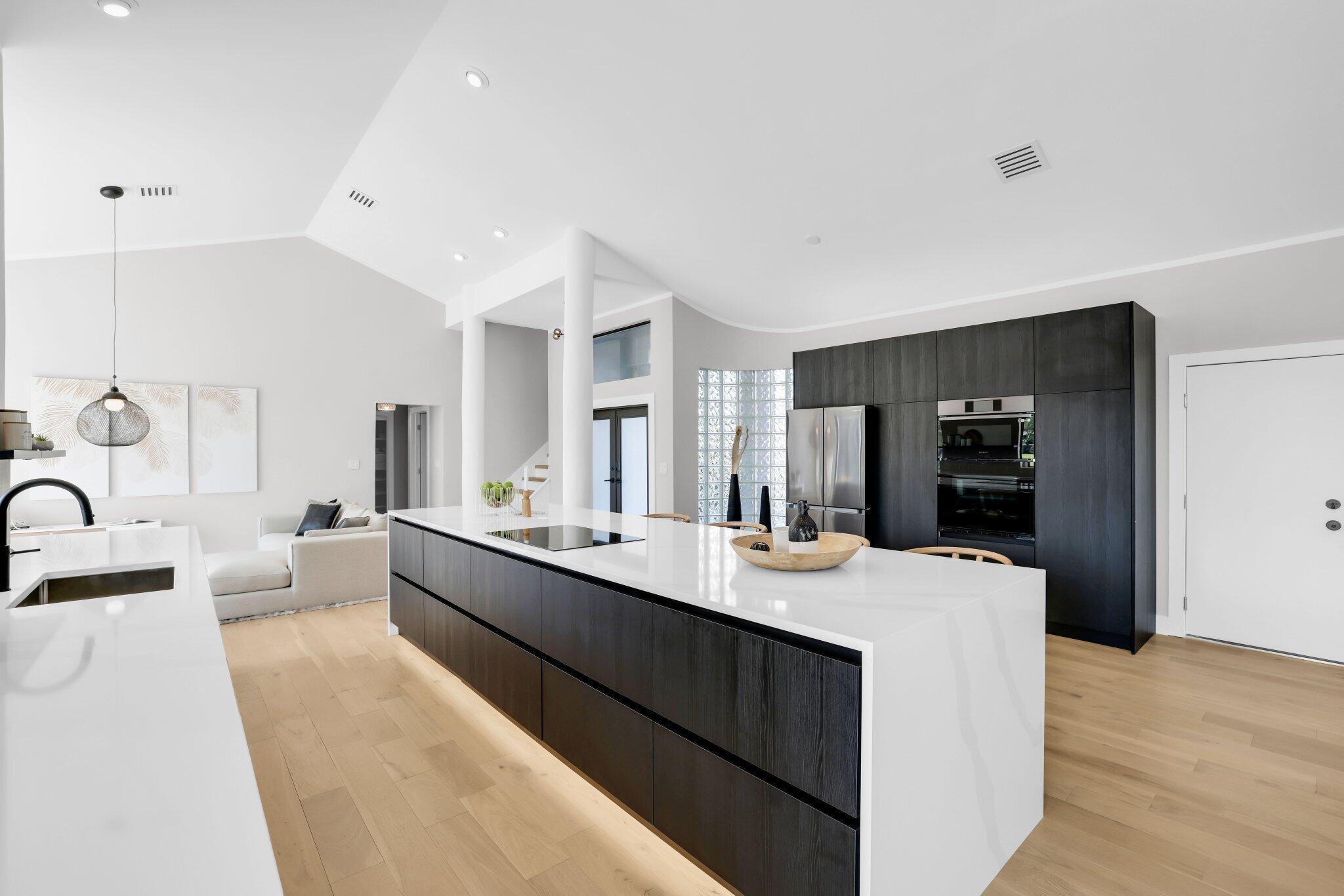 YOUR MODERN DREAM HOME METICULOUSLY RENOVATED TO PERFECTION in the highly sought after Sonata of Mission Bay community!Are you looking for a house that is second to none? This stunning luxurious residence not only boasts an extraordinary design but also features high-quality materials that run throughout the entire house with high end finishes. Built in 1989 and fully renovated in 2023/2024, this home showcases a contemporary style that not only is modern but also exudes warmth and comfort.The centerpiece of the house is the state-of-the-art kitchen with a 13-foot island adorned with a genuine quartz waterfall countertop, offering seating for 4. The kitchen is equipped with an oven, microwave, induction cooktop, large refrigerator, and a