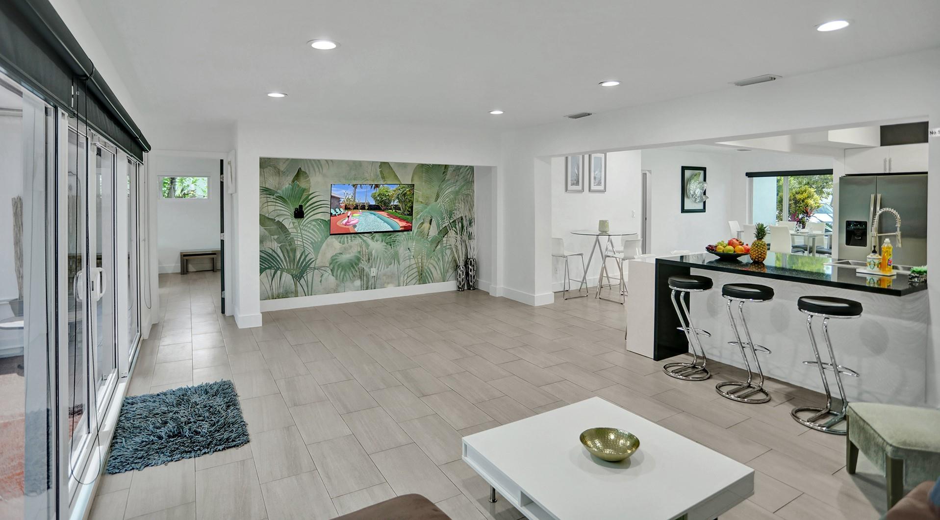 Located in one of the most prestigious neighborhoods in Broward County – the East Hollywood Lakes area – this bright and open-concept house has been completely renovated. It offer 3 bedrooms and 2 bathrooms, along with a generously sized den that can function as a 4th bedroom. Hurricane-proofed impact windows and doors, including a large glass patio door with lots of natural light. The saltwater pool has been resurfaced with diamond bright 3 years ago. The roof is 7 years old. All furniture is included. The front driveway fits up to 6-7 cars.