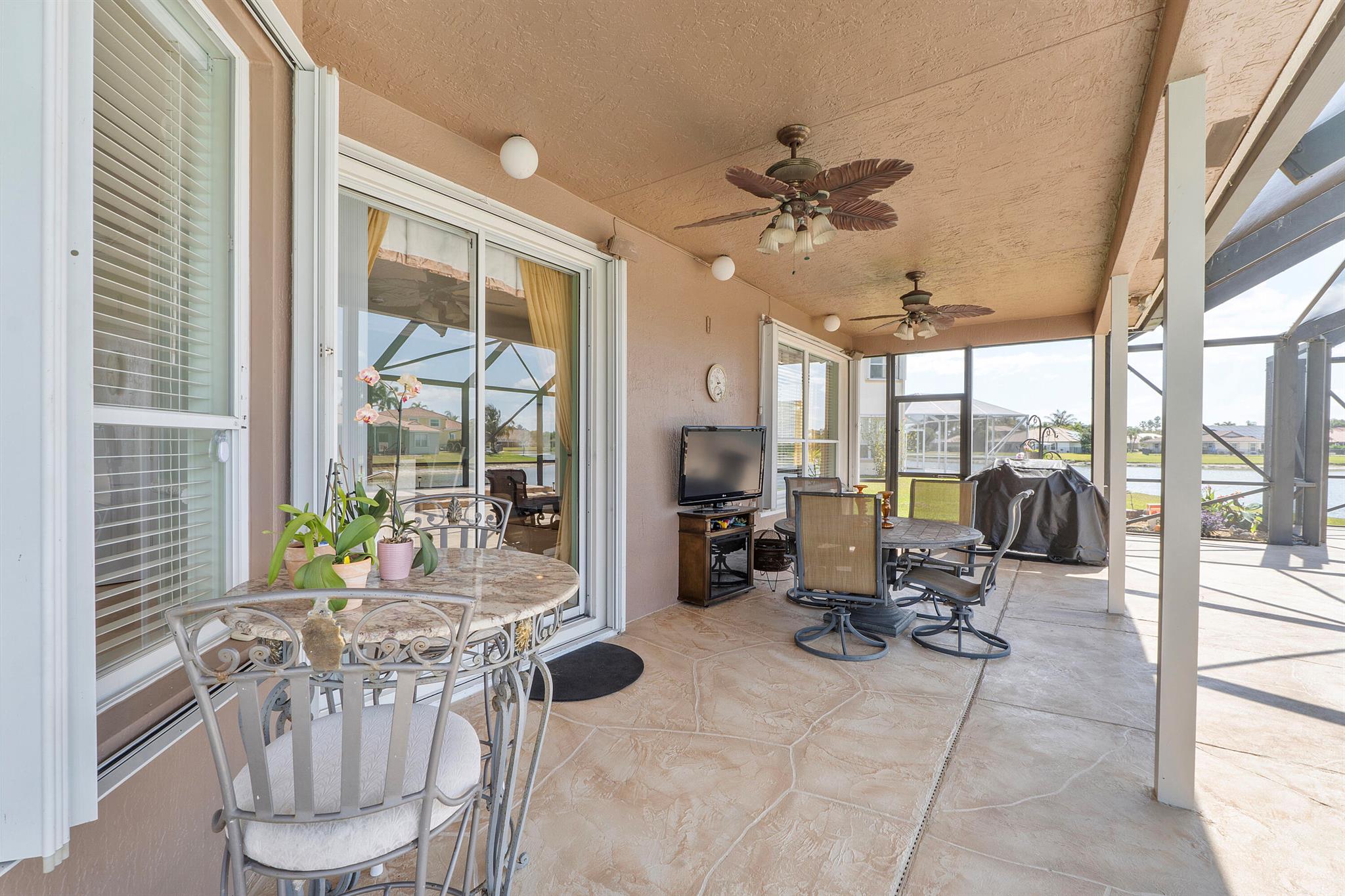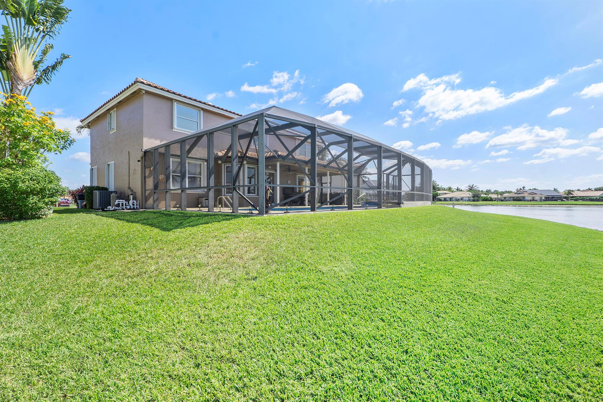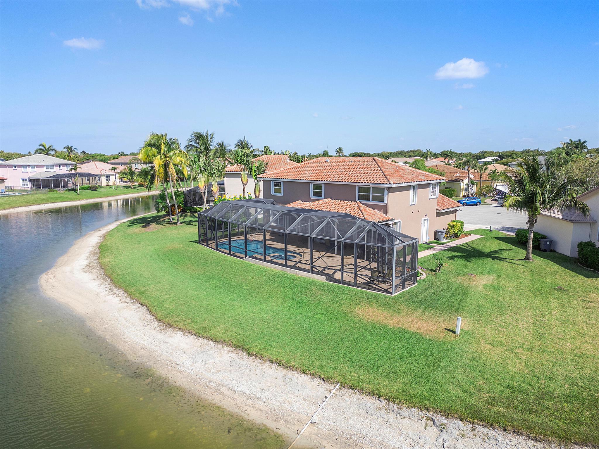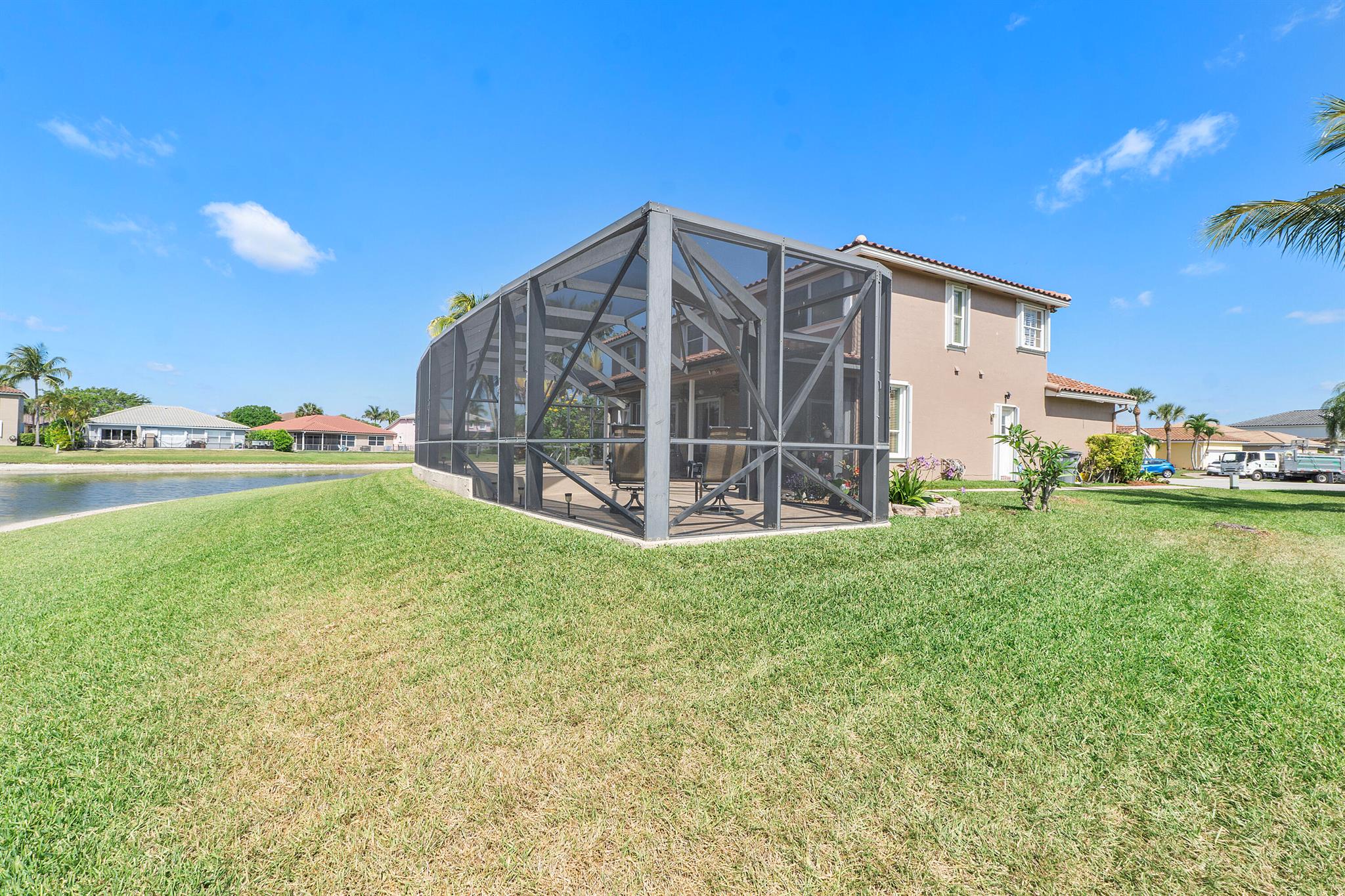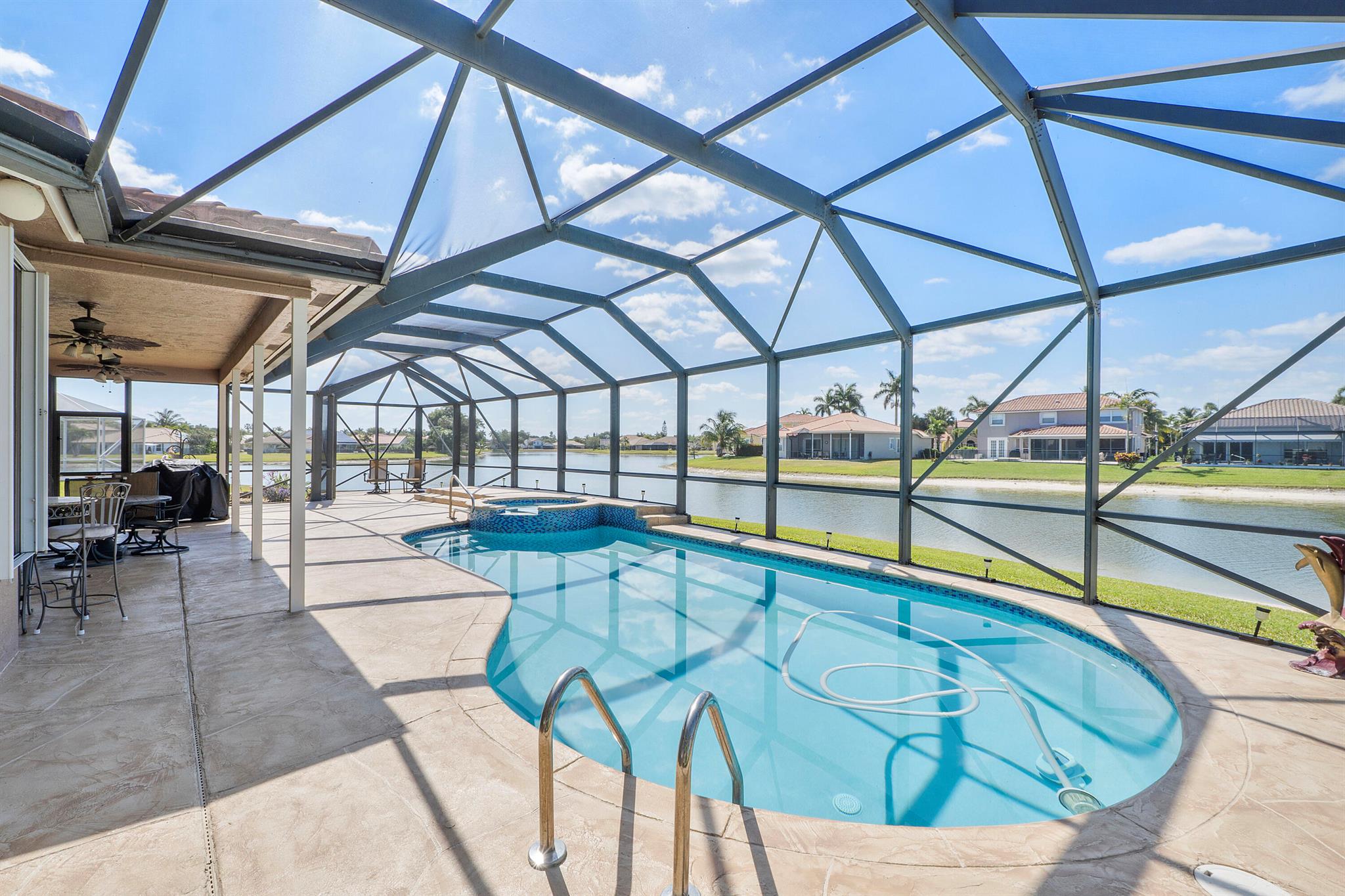 Looking for a beautiful 4 Bed 3 Bath single family home in a pet-friendly community? Check out Boca Winds -Waterway! the home features granite countertops, SS appliances, accordion shutters, roof (2022) water heater (2020), two AC units (2022), an enclosed sparkling swimming pool/spa, and an additional enclosed extended backyard to sunbathe on your lounge chairs, pool pump (2020), irrigation timer ((2022), pool filter motor (2021), exterior water piping (2021). While enjoying the panoramic lake views and the lovely sparkling swimming pool. Unique selling points include sunrise/sunsets from your backyard, lake views, enclosed pool/spa, Cul de sac, 3 car garage, Central Vacuum and it has 13 removable screens which are easy to take out. Screen house beams are sturdy and larger than normal.
