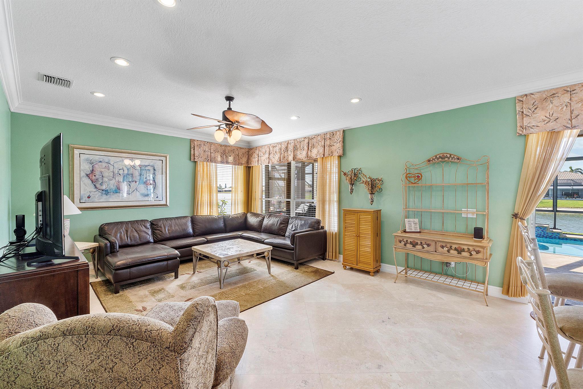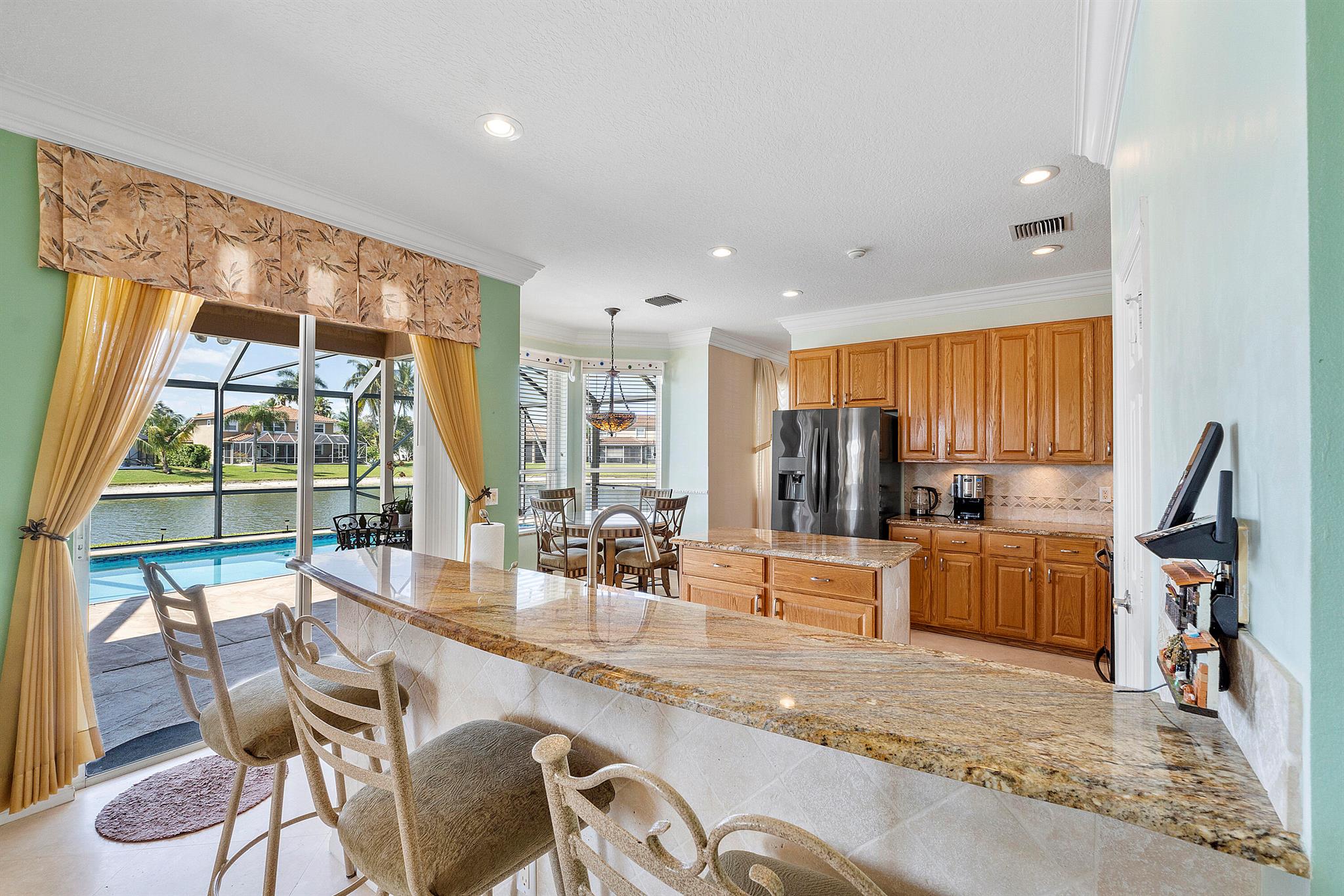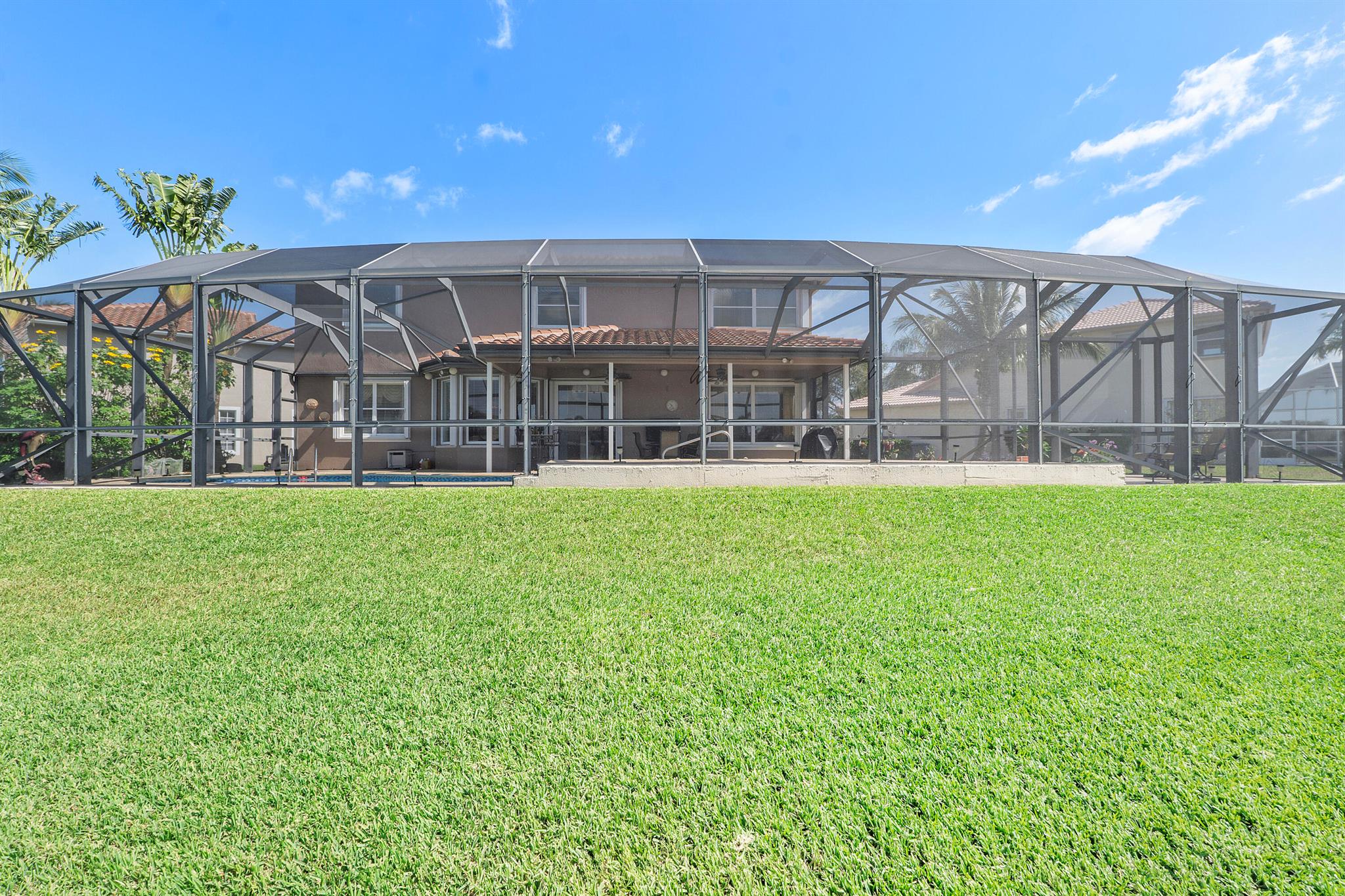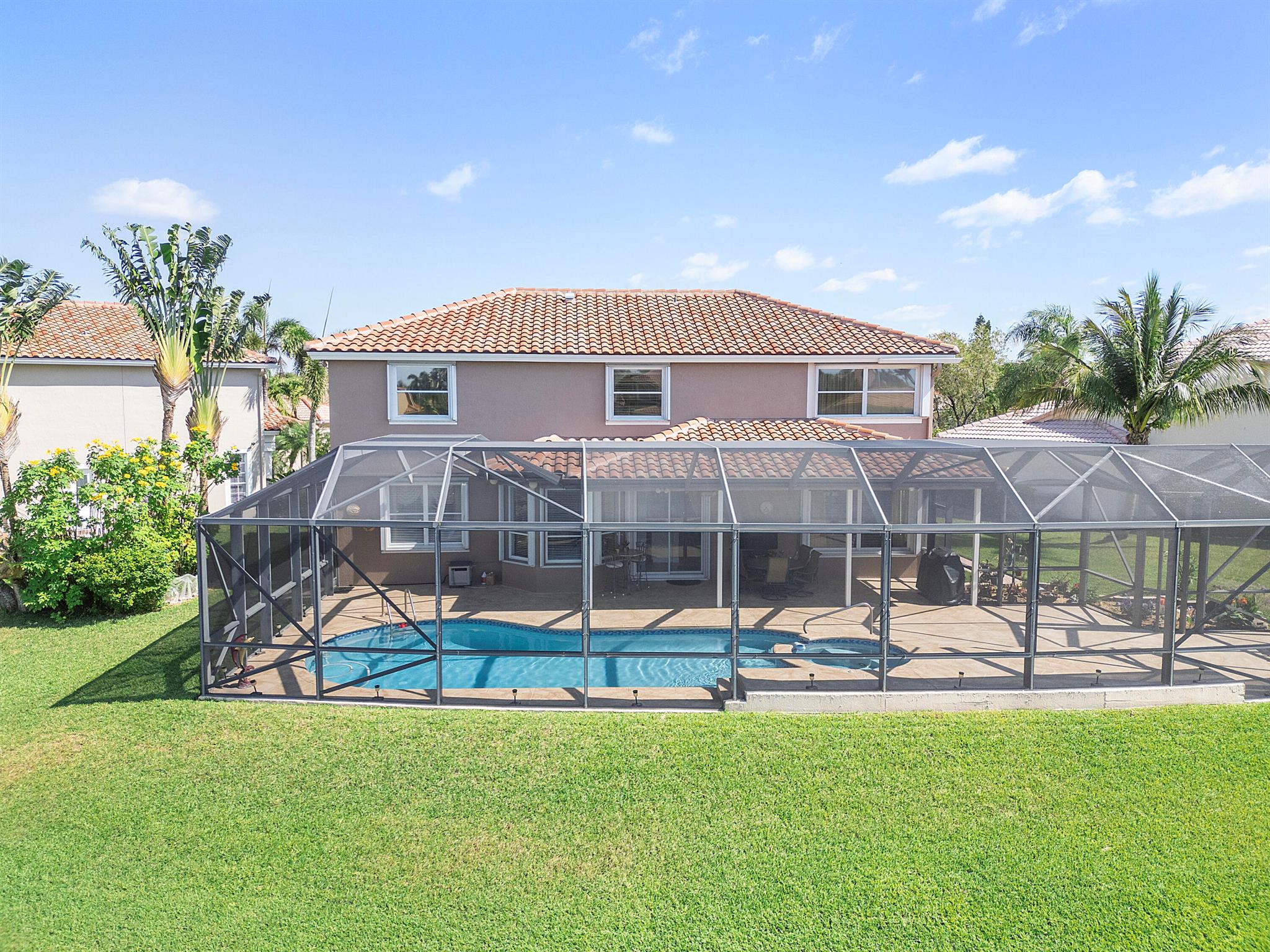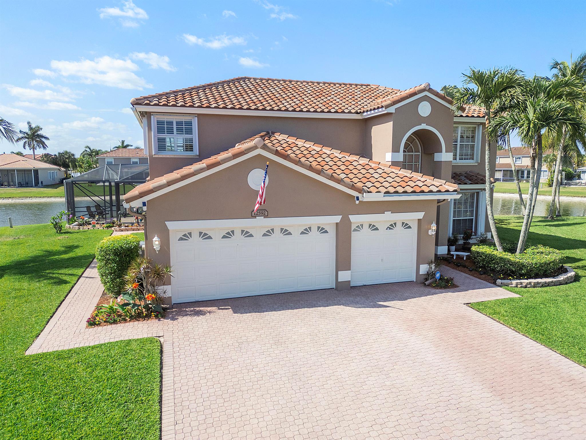 Looking for a beautiful 4 Bed 3 Bath single family home in a pet-friendly community? Check out Boca Winds -Waterway! the home features granite countertops, SS appliances, accordion shutters, roof (2022) water heater (2020), two AC units (2022), an enclosed sparkling swimming pool/spa, and an additional enclosed extended backyard to sunbathe on your lounge chairs, pool pump (2020), irrigation timer ((2022), pool filter motor (2021), exterior water piping (2021). While enjoying the panoramic lake views and the lovely sparkling swimming pool. Unique selling points include sunrise/sunsets from your backyard, lake views, enclosed pool/spa, Cul de sac, 3 car garage, Central Vacuum and it has 13 removable screens which are easy to take out. Screen house beams are sturdy and larger than normal.