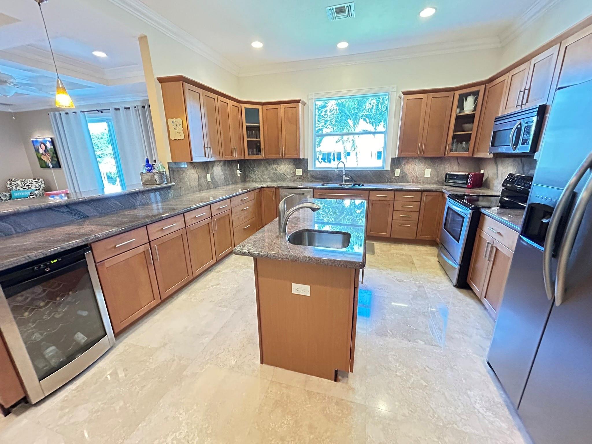 This 2006, 3 bed rm 2.5 Bath home was built with impact glass for windows, and panels to cover the carved teak double front door. The roof is a hip roof checking off another important design feature that lowers insurance rates. There are teak floors in the master bed room and marble flooring in the main living areas of the house. All the doors and trim in the rest of the house are teak giving the house a stand-alone lux feel. There is an island kitchen with wine cooler and other modern appliances. There is an oversized one care garage that provides for a great amount of storage. For the boater there is one year old boat lift that has a 15,000 lb. capacity. The new bridge on SE 5th AV has pretty good clearance at 14 feet allowing for room for your T-top and fishing gear.