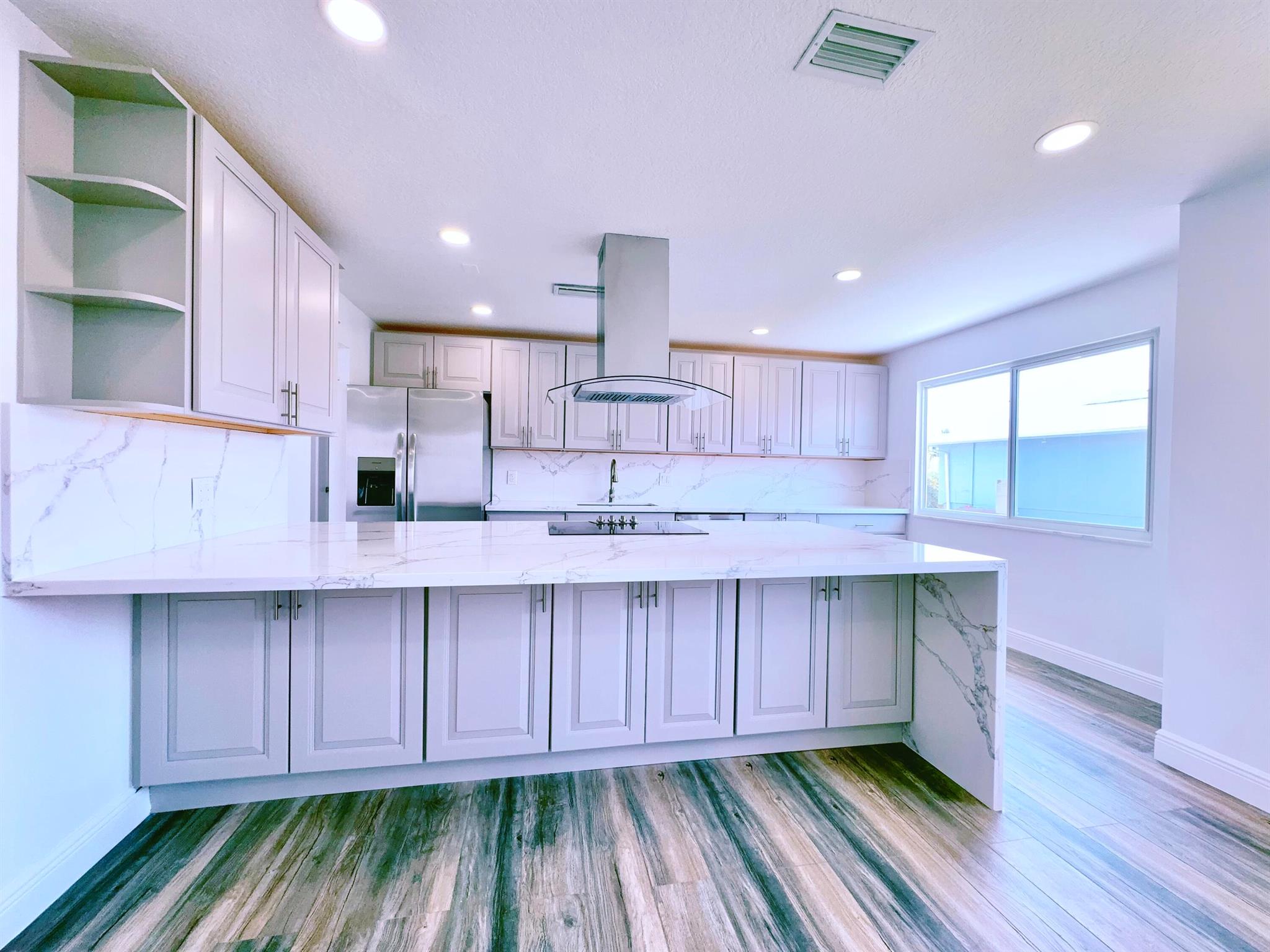 Welcome home to this completely renovated 4/3 home PLUS a DEN/Office. Brand new roof and hurricane impact windows and sliding doors in 2024. One brand new AC unit. Brand new renovation with luxury tile and vinyl flooring throughout. Custom high end cabinets and largest island in the neighborhood makes this a dream house for cooks and entertainment.. Custom vent hood and brand new stainless steel appliances. Three brand new bathrooms with quartz countertops and large frameless rain showers. Brand new paint inside and out. Brand new washer and dryer. Custom LED lighting fixtures throughout. Garage floor re-finished. Large fenced in backyard. The list goes on. This is a must see! Conveniently located in Davie, minutes away from shopping, dining and the Hard Rock Casino.