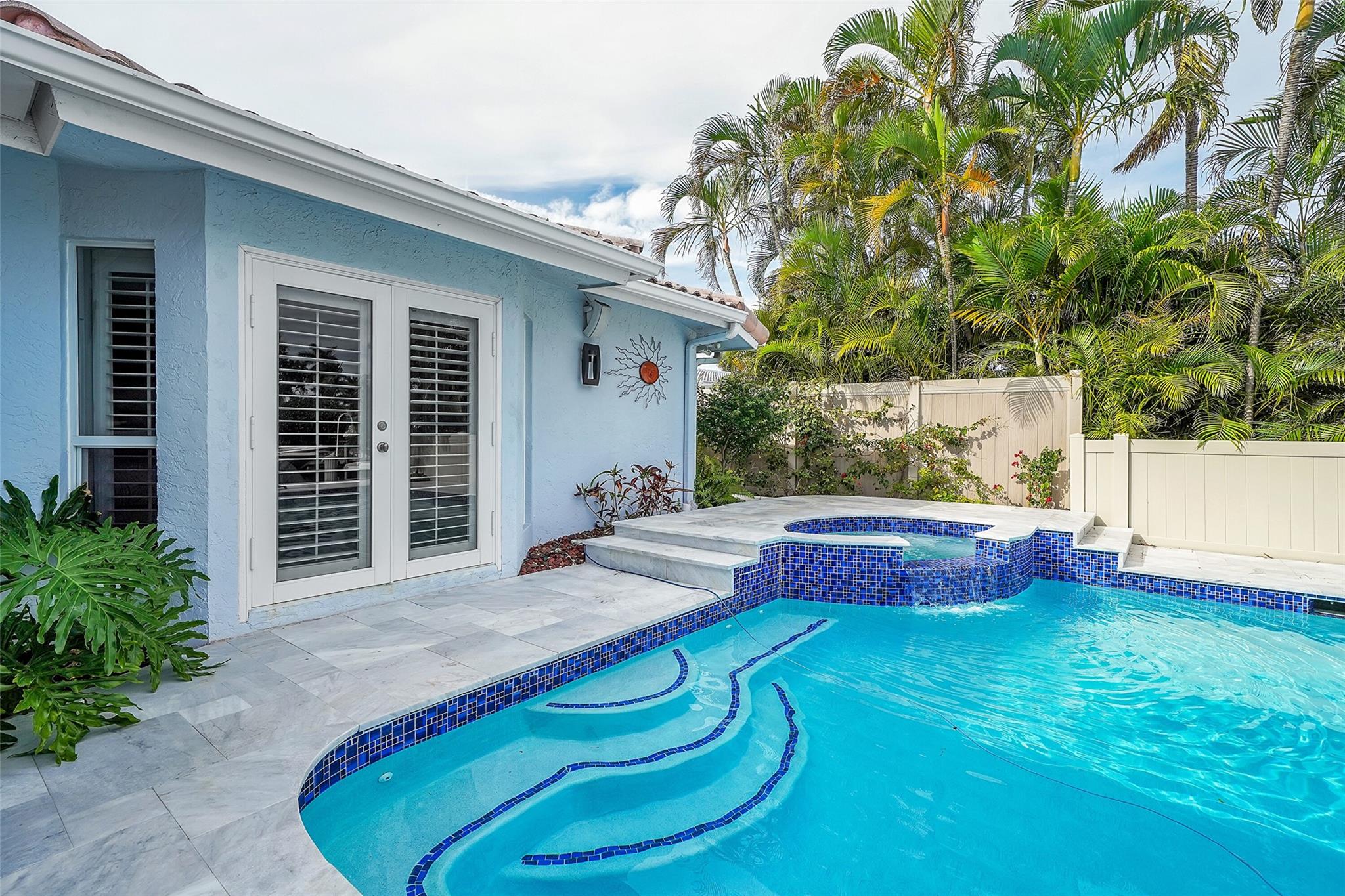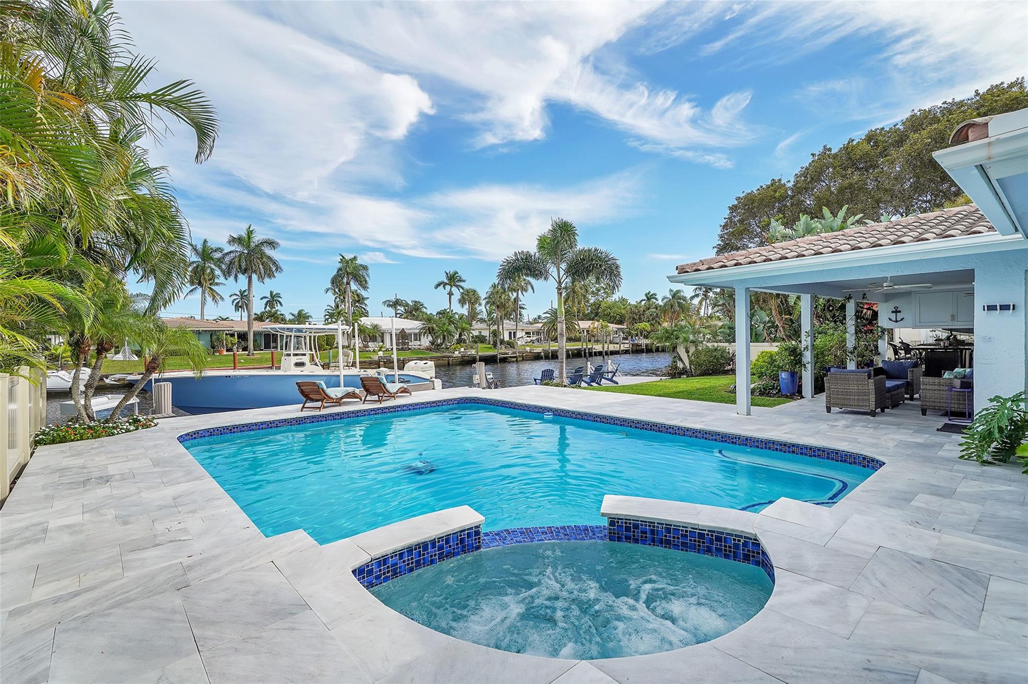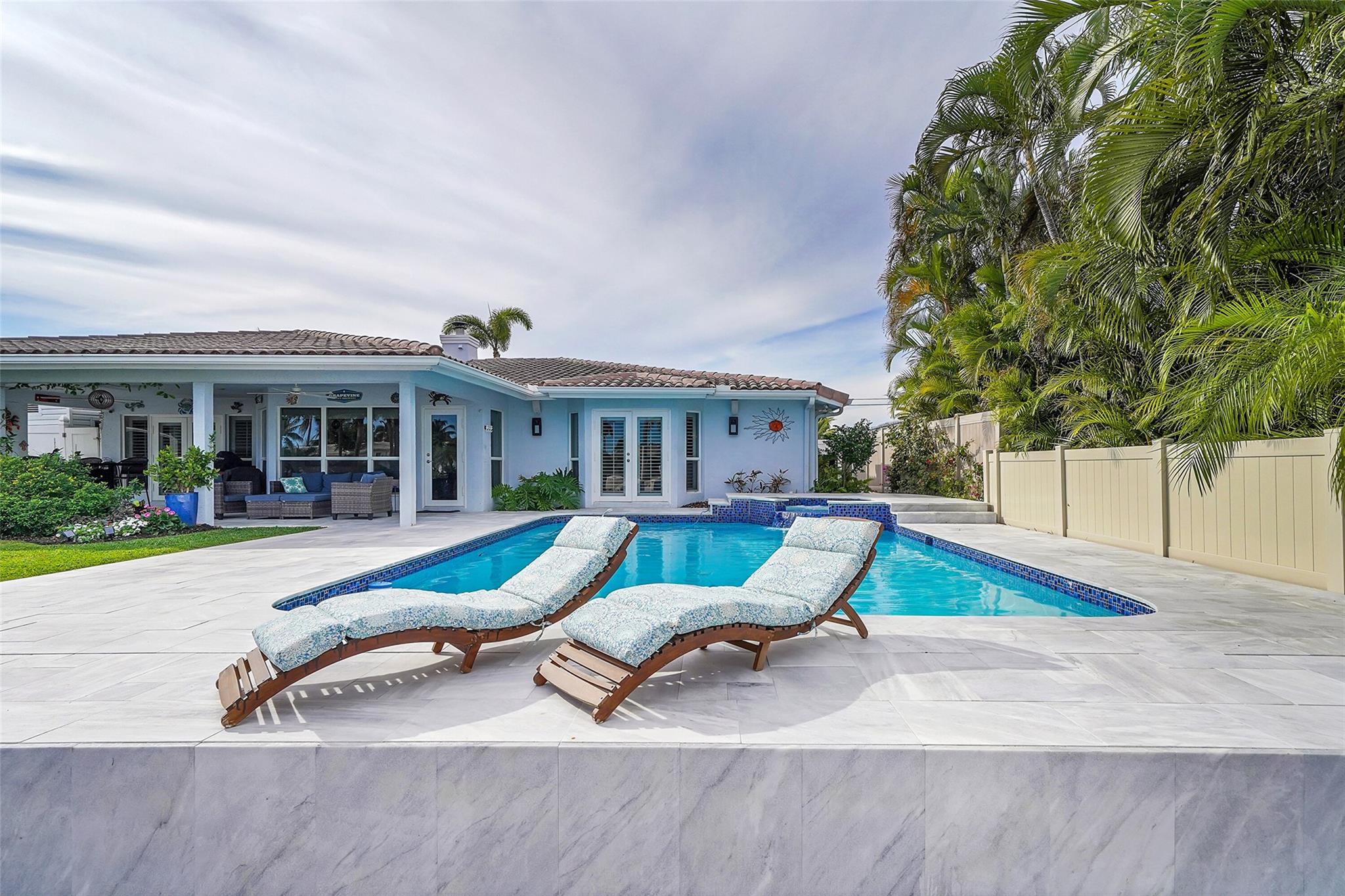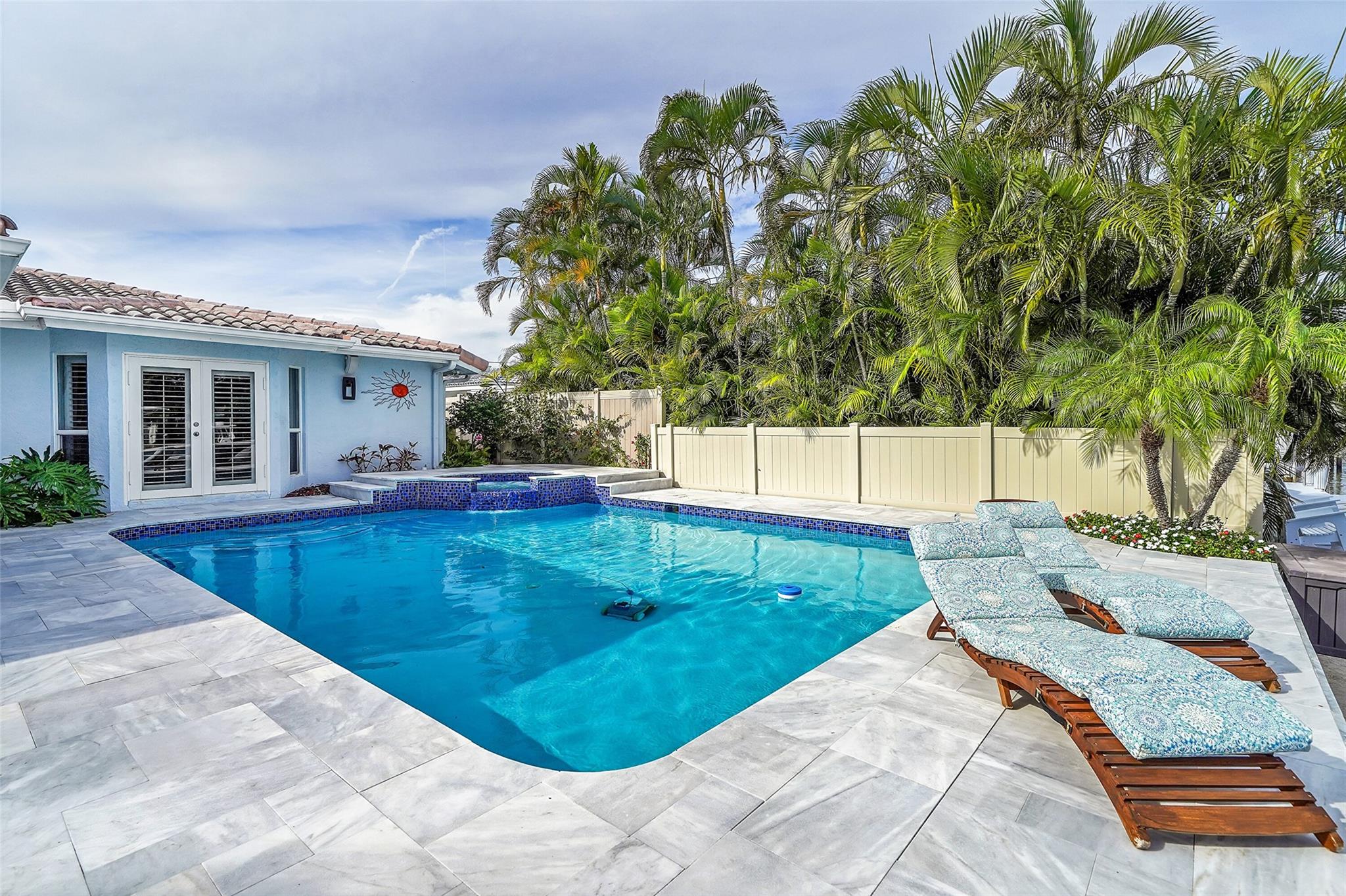 Stunning Waterfront Oasis nestled on a quiet cul-de-sac in the sought-after Garden Isles community, this move-in-ready 3-bed, 2-bath home w/ a 2-car garage is a true gem. Open-concept design with style & functionality in mind. Luxury, comfort & outdoor living. Elegant marble flooring & beautifully crafted marble fireplace. Modern, updated kitchen w/granite countertops, custom cabinetry & wet bar. Plantation shutters in bedrooms & custom blinds throughout the home. Spacious laundry room. Newly updated pool deck, a heated pool, & a spa, set in a large, private backyard perfect for relaxation & entertaining.